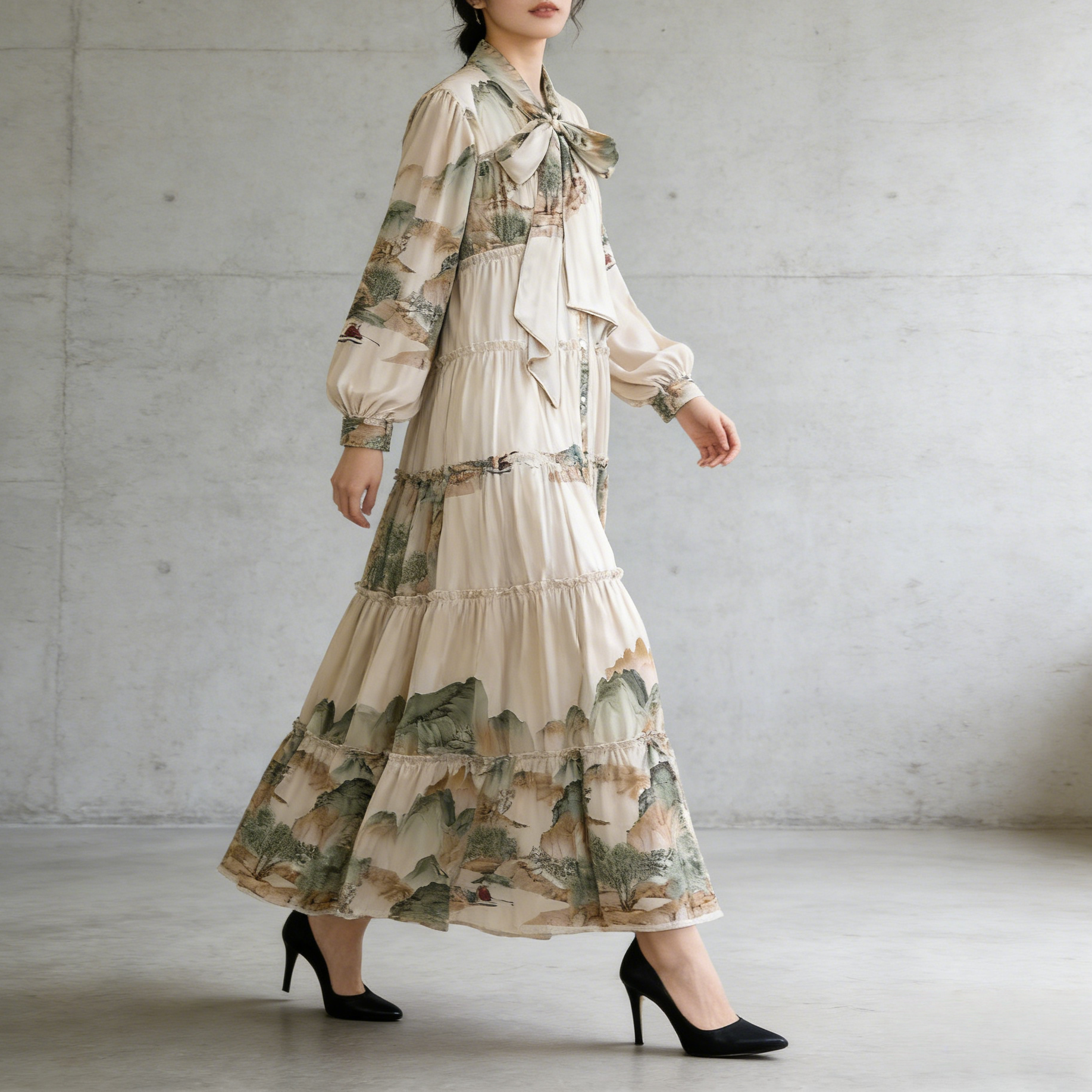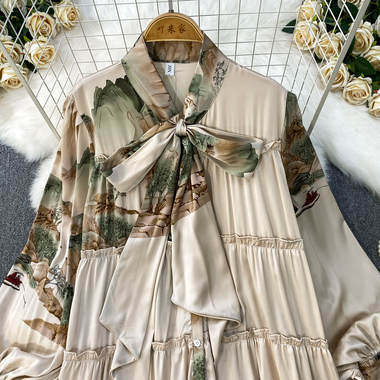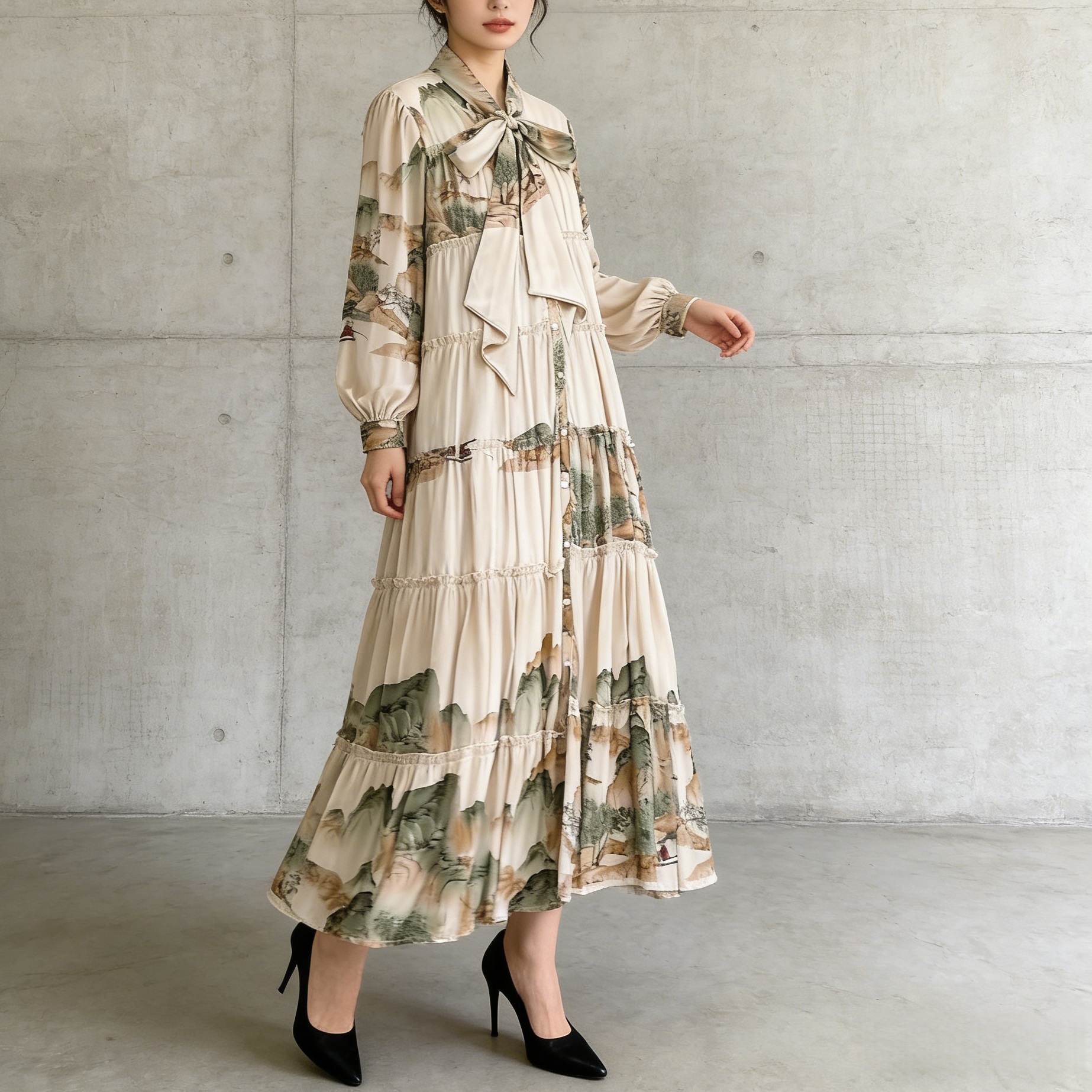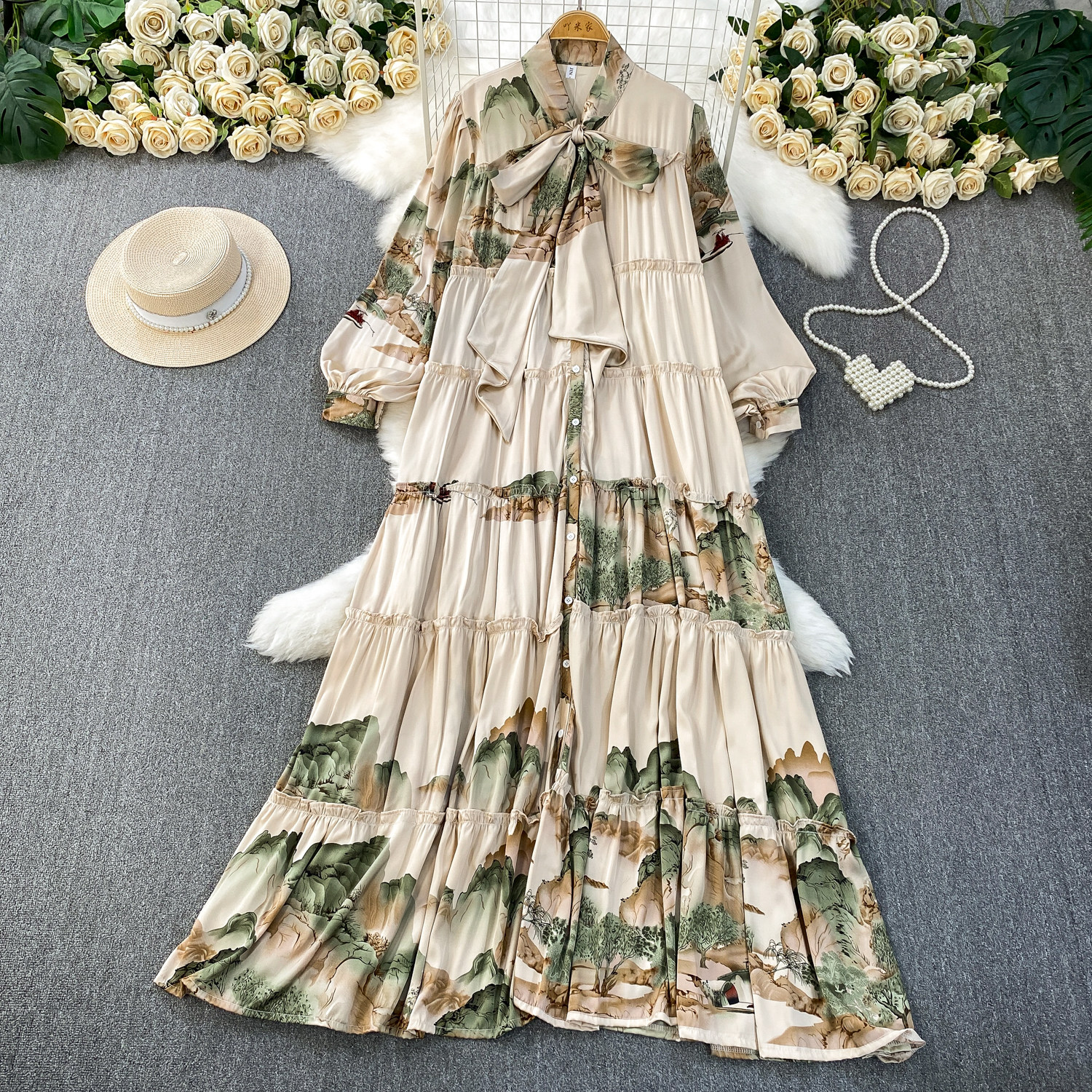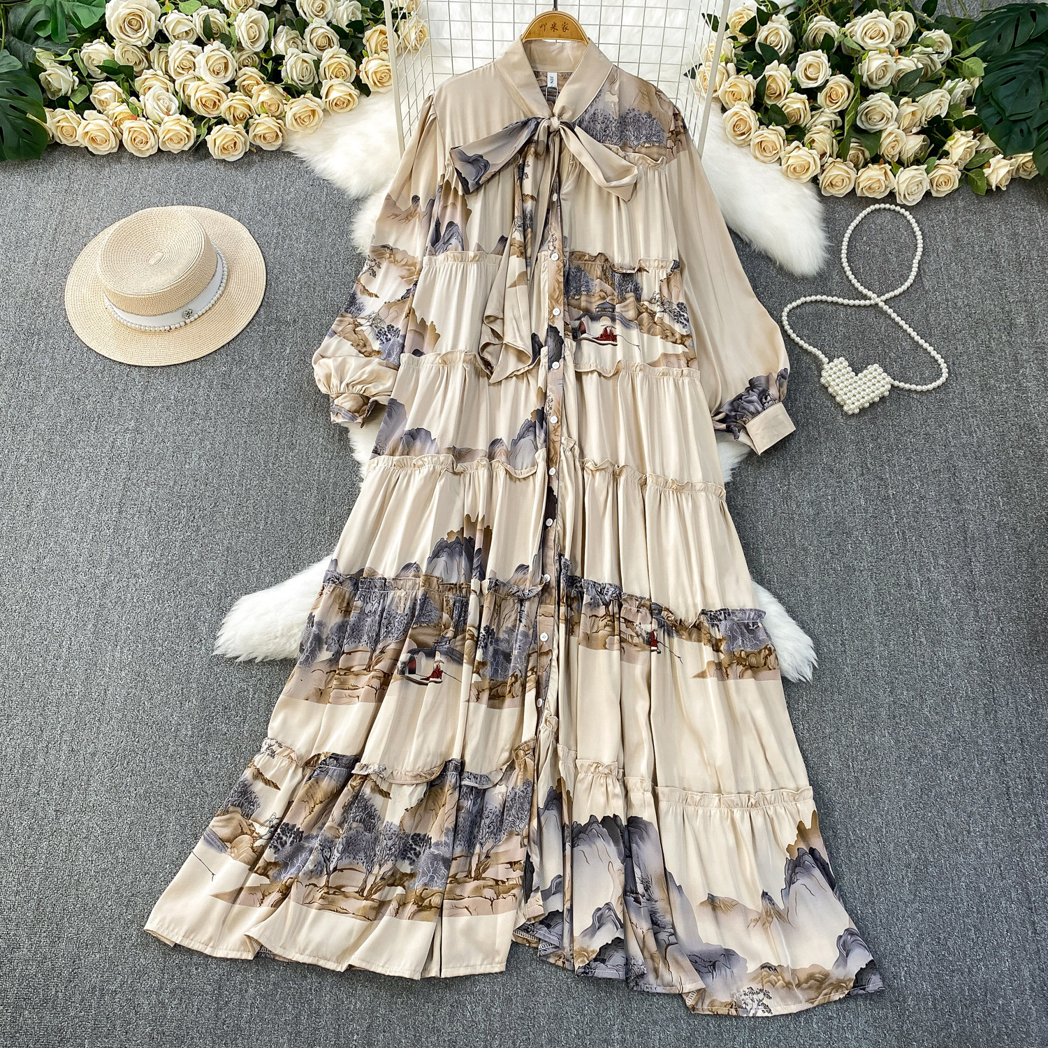 【60%OFF⭐️先行スタート!】【ワンピース】春 秋 冬 大きいサイズ プリント レトロ 長袖 ワンピース【SHシリーズ】