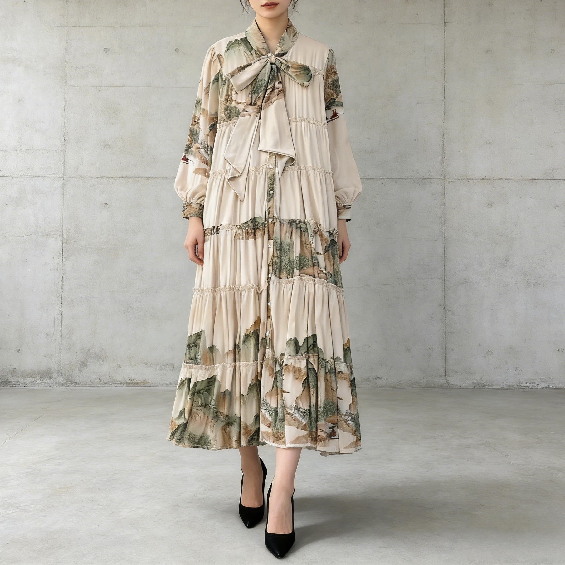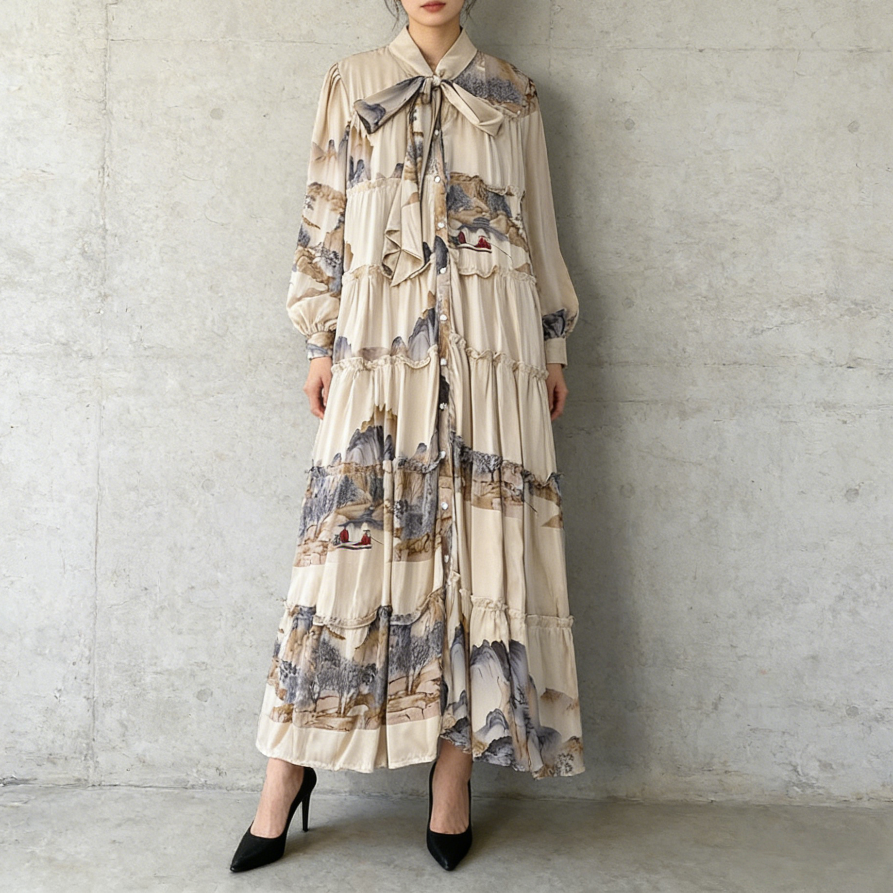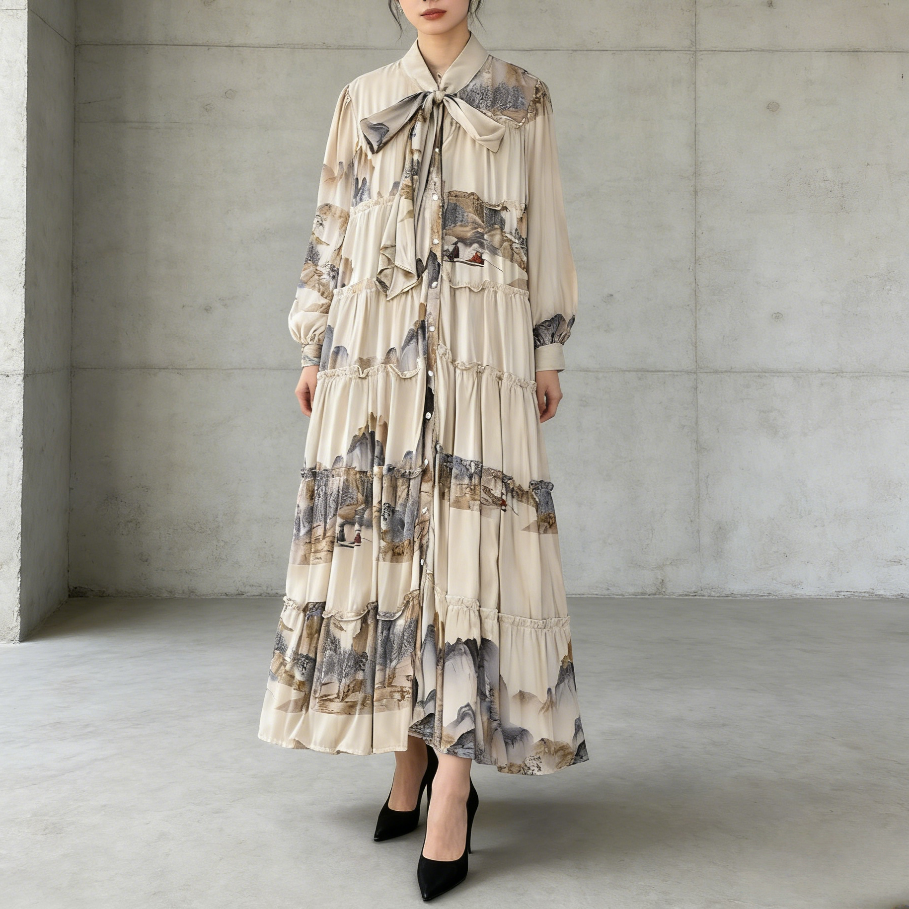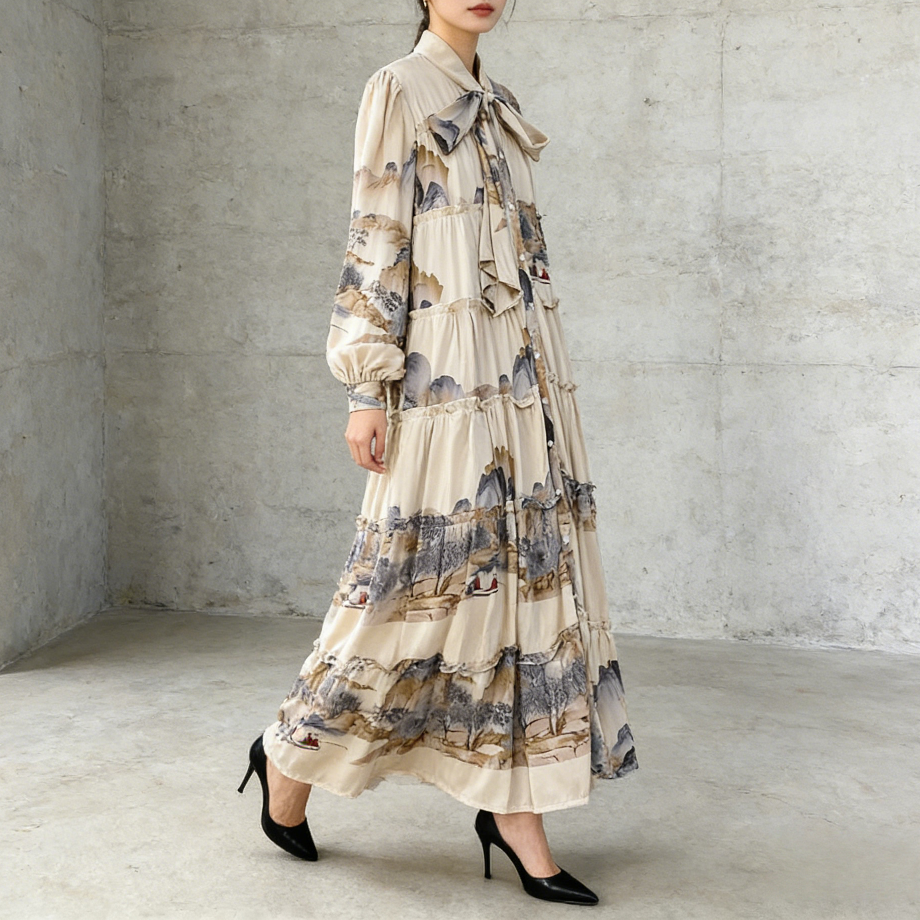 【60%OFF⭐️先行スタート!】【ワンピース】春 秋 冬 大きいサイズ プリント レトロ 長袖 ワンピース【SHシリーズ】