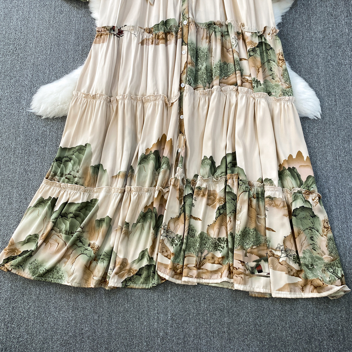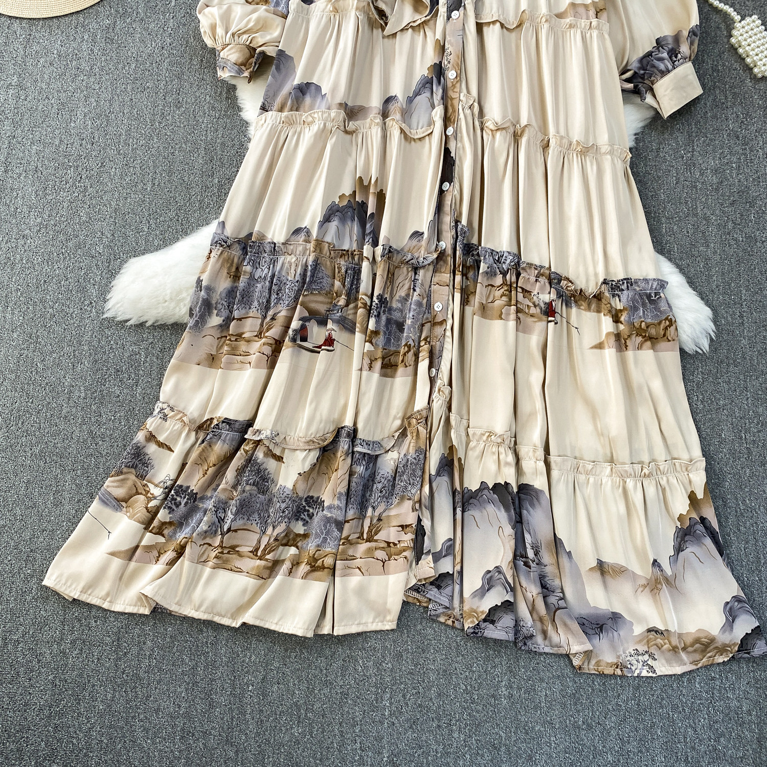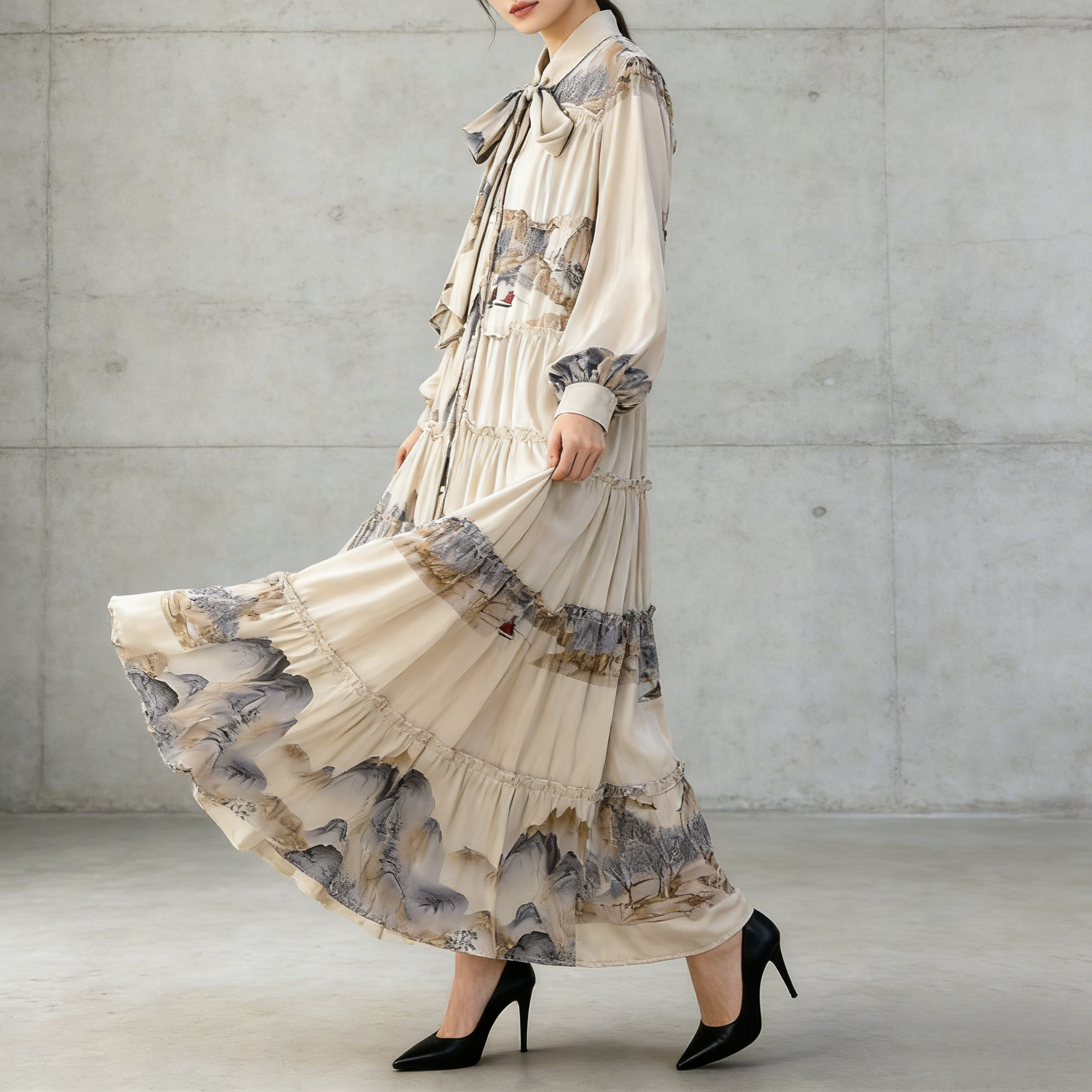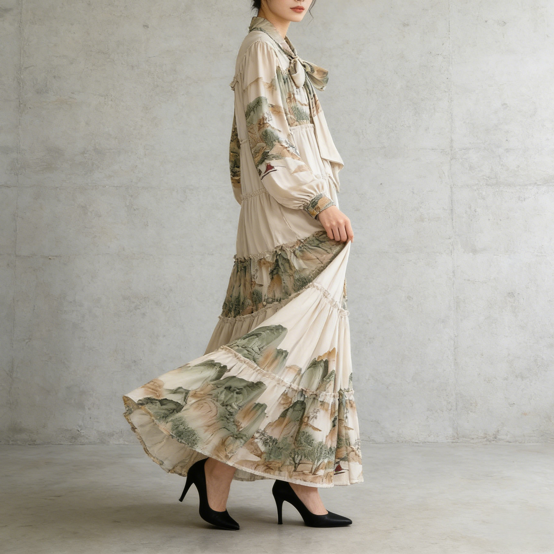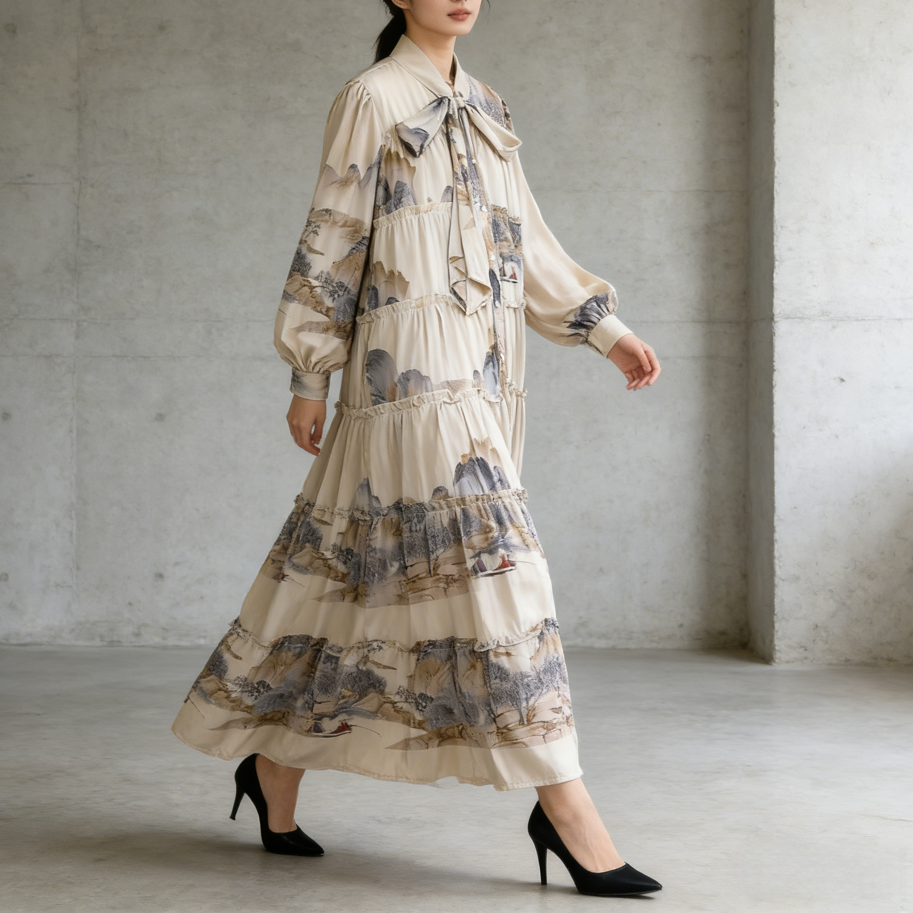 【60%OFF⭐️先行スタート!】【ワンピース】春 秋 冬 大きいサイズ プリント レトロ 長袖 ワンピース【SHシリーズ】