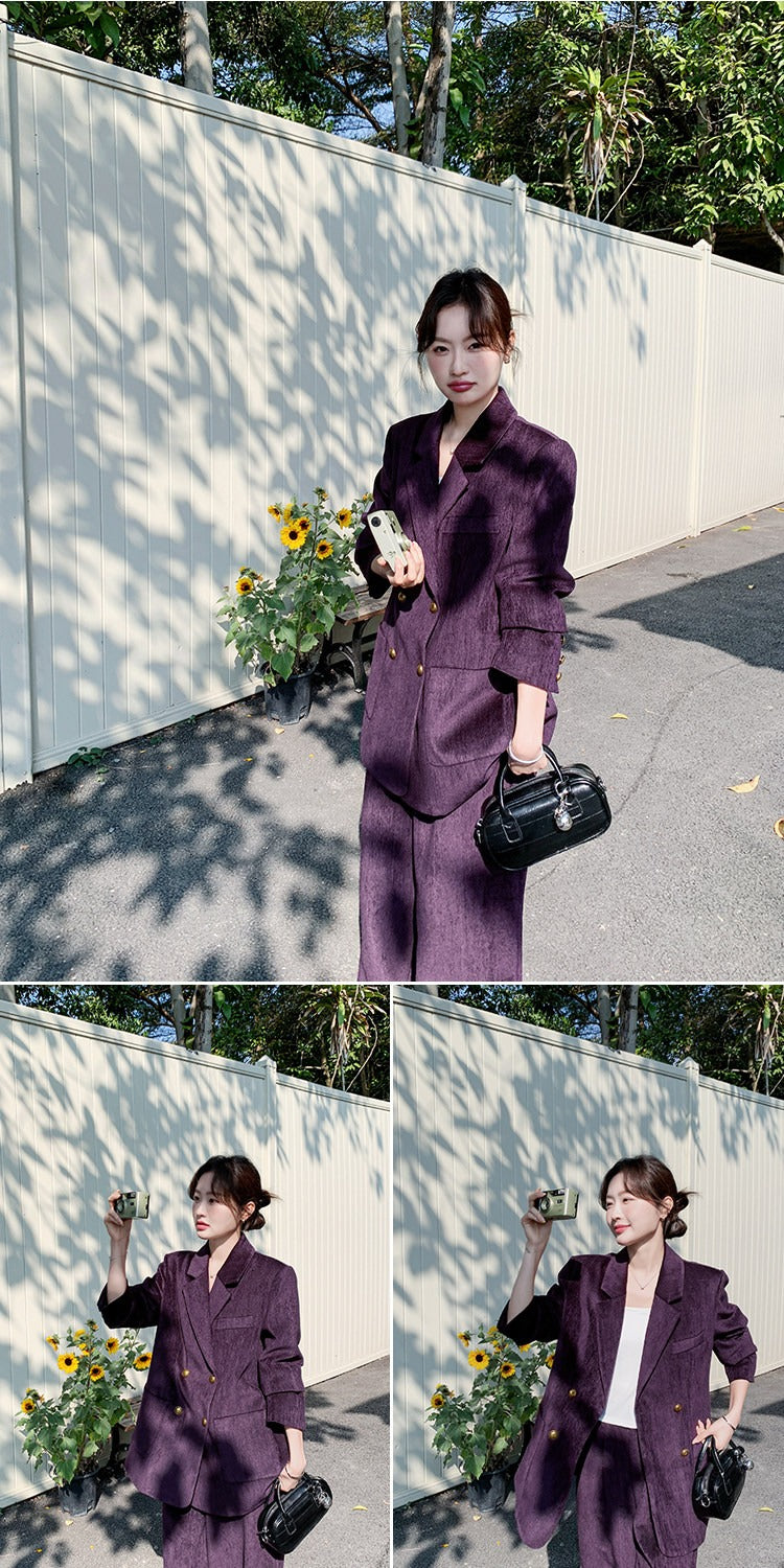 【商品名】2点セット!【セットアップ】ライトラグジュアリー コーデュロイ 上下セット 2026春新作 ダブルブレスト ジャケット&ワイドパンツ レディース【JZシリーズ】