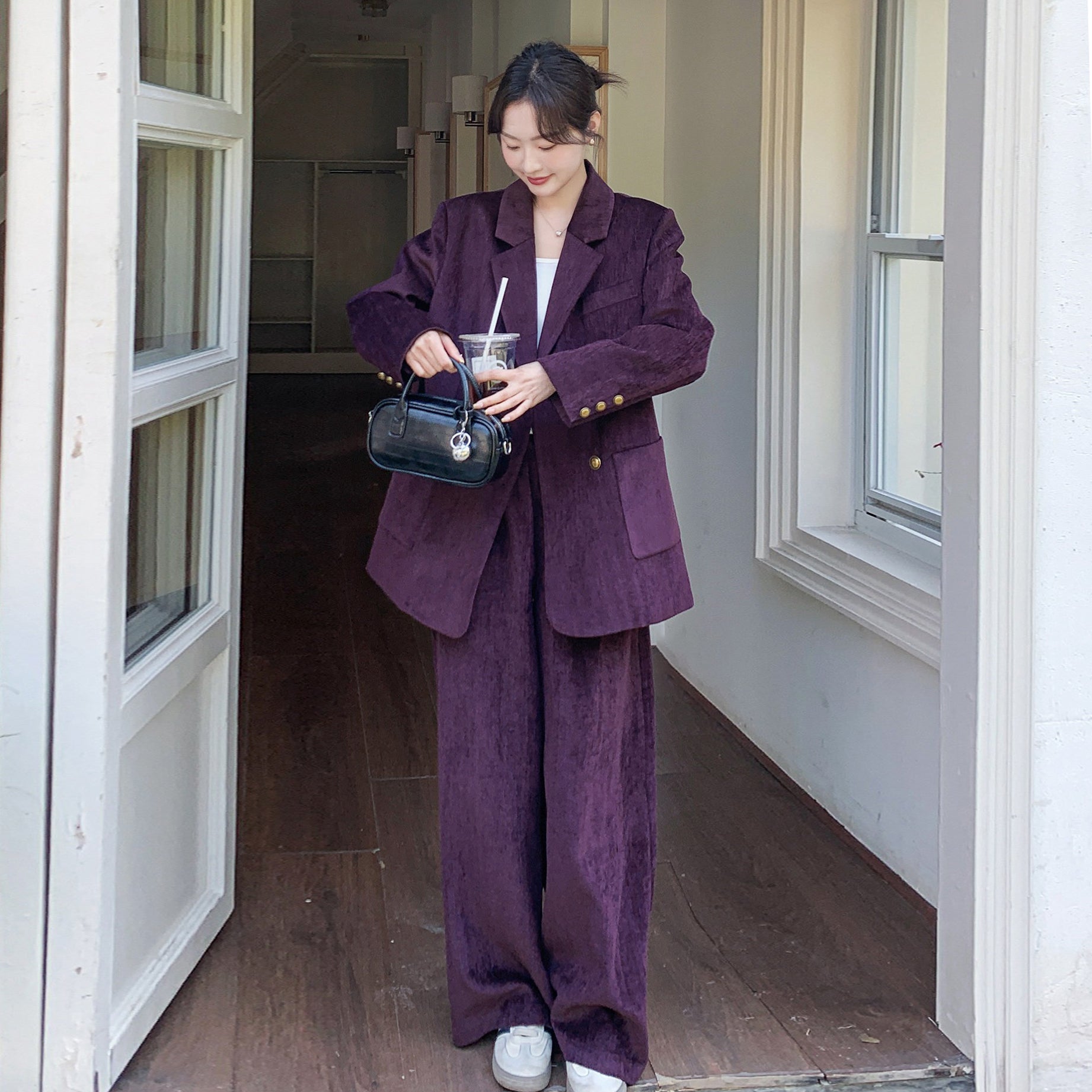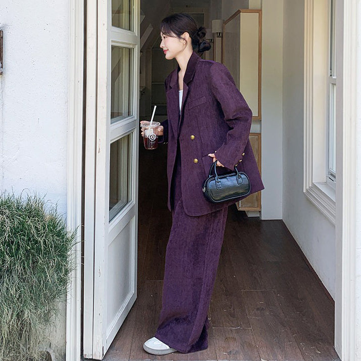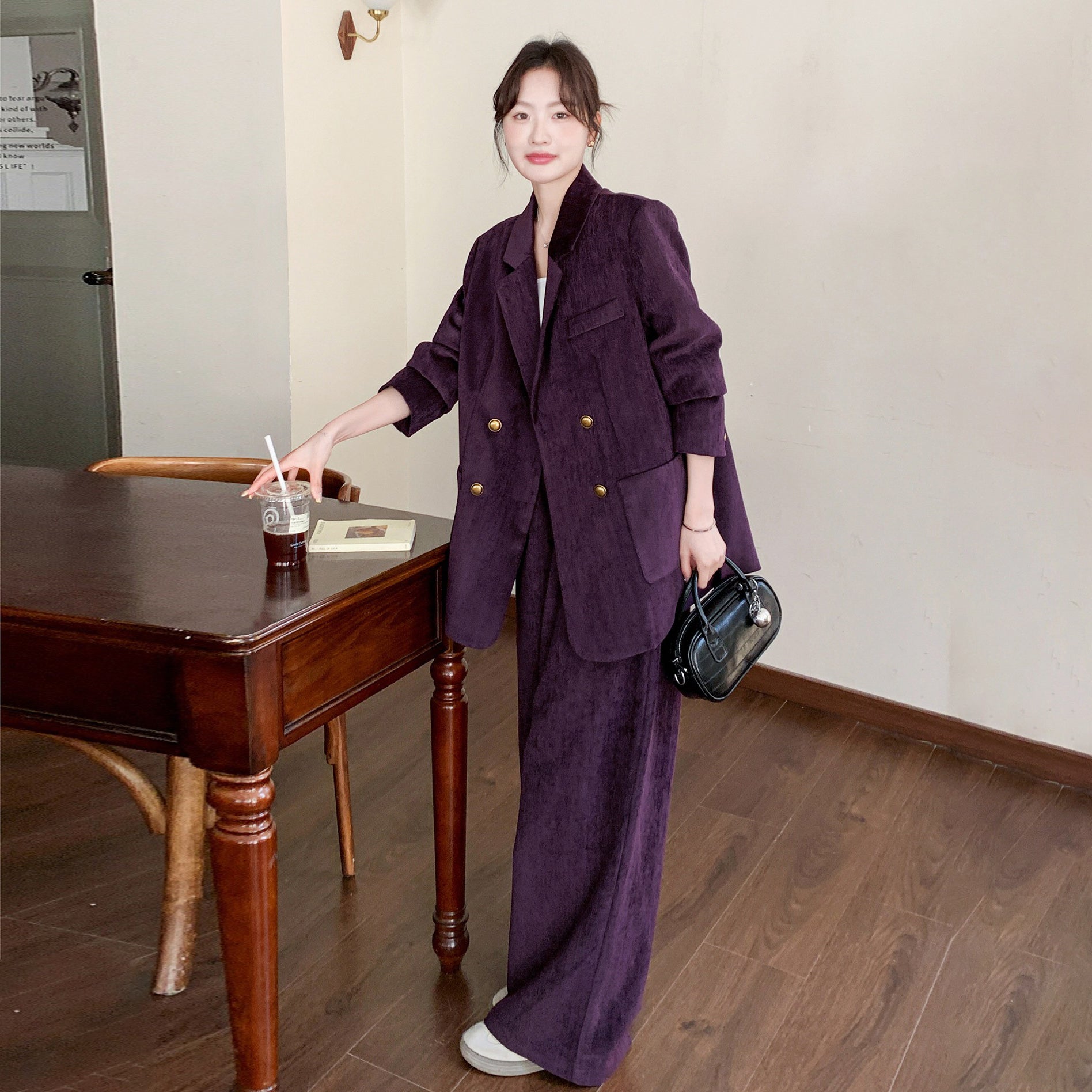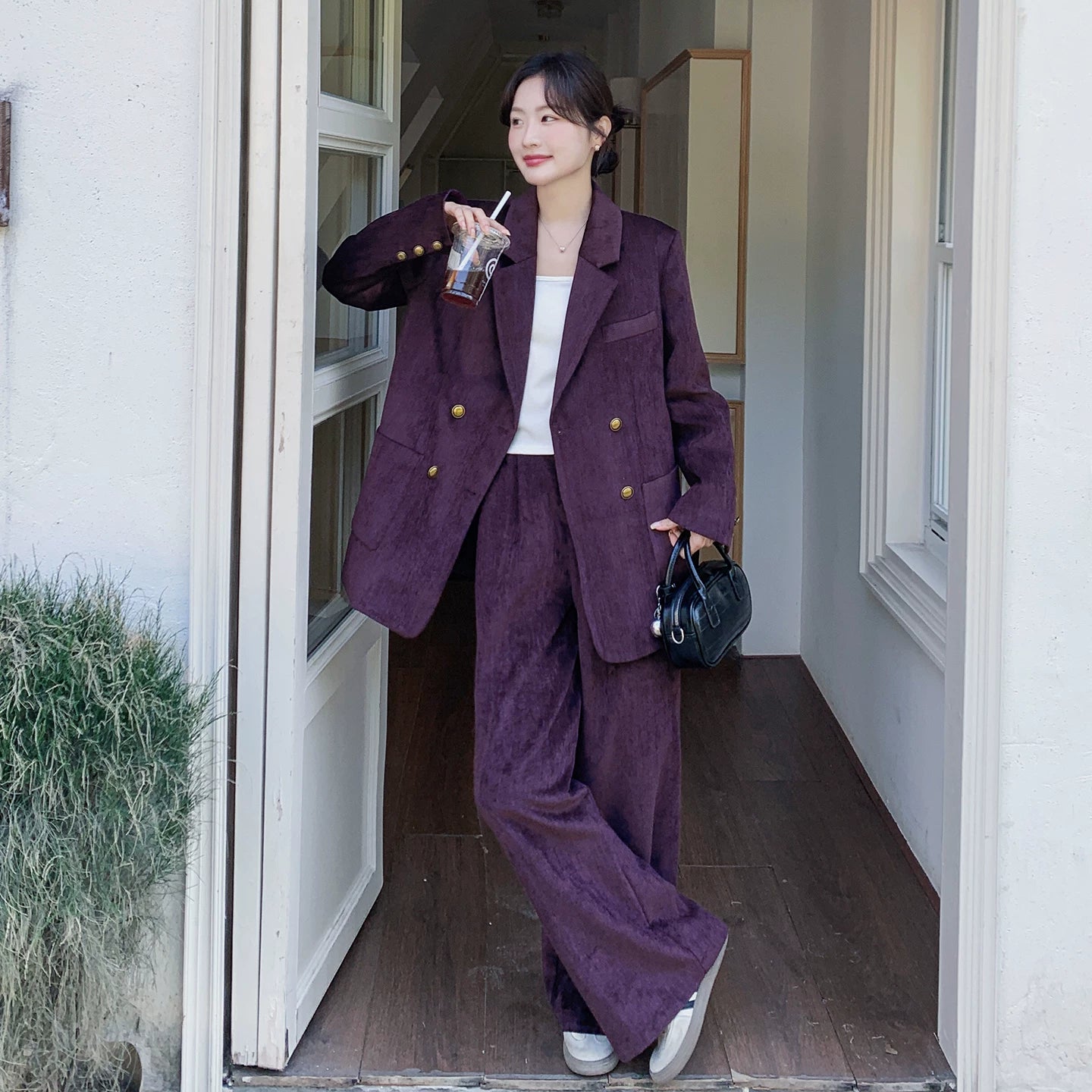 2点セット!【セットアップ】ライトラグジュアリー コーデュロイ 上下セット 2026春新作 ダブルブレスト ジャケット&ワイドパンツ レディース【JZシリーズ】