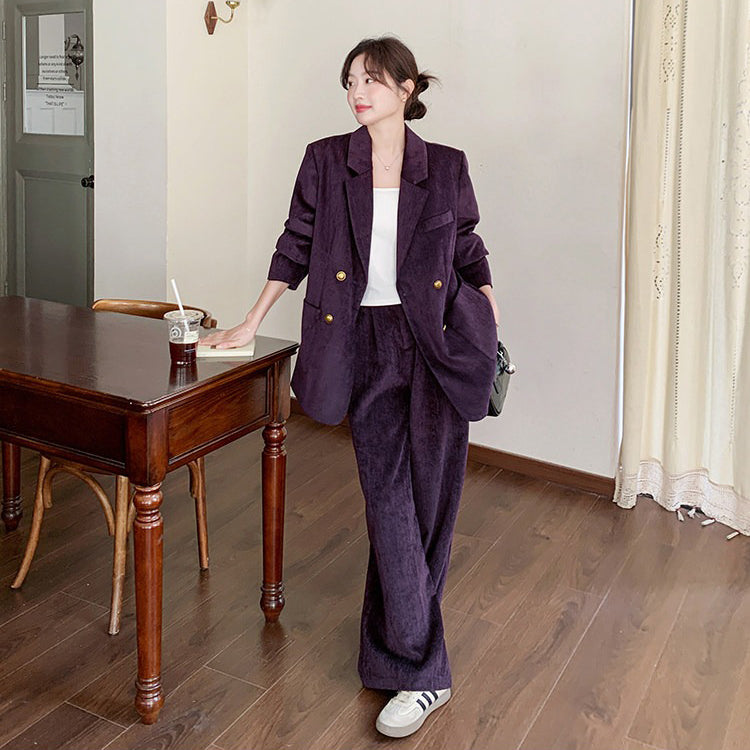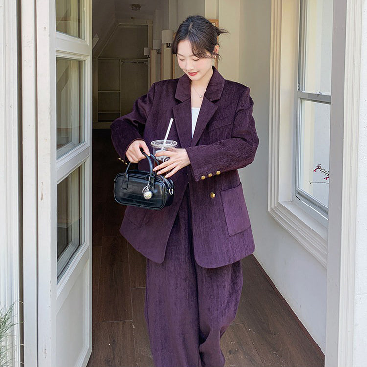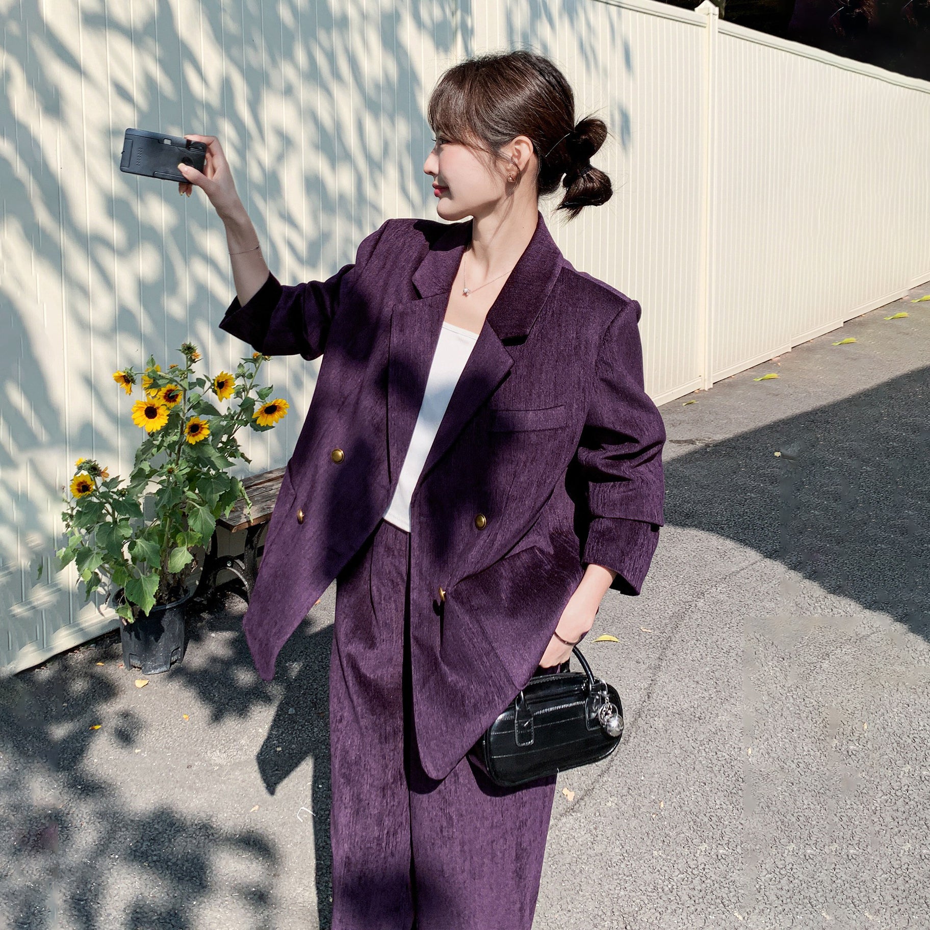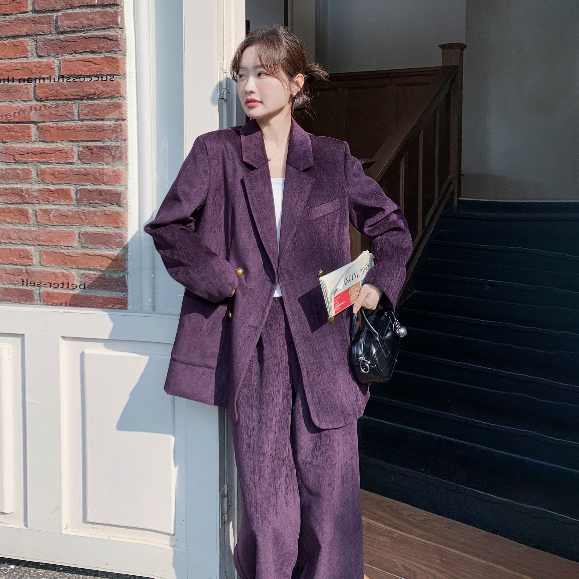 2点セット!【セットアップ】ライトラグジュアリー コーデュロイ 上下セット 2026春新作 ダブルブレスト ジャケット&ワイドパンツ レディース【JZシリーズ】