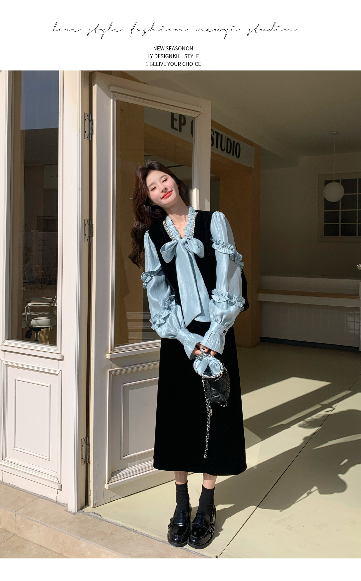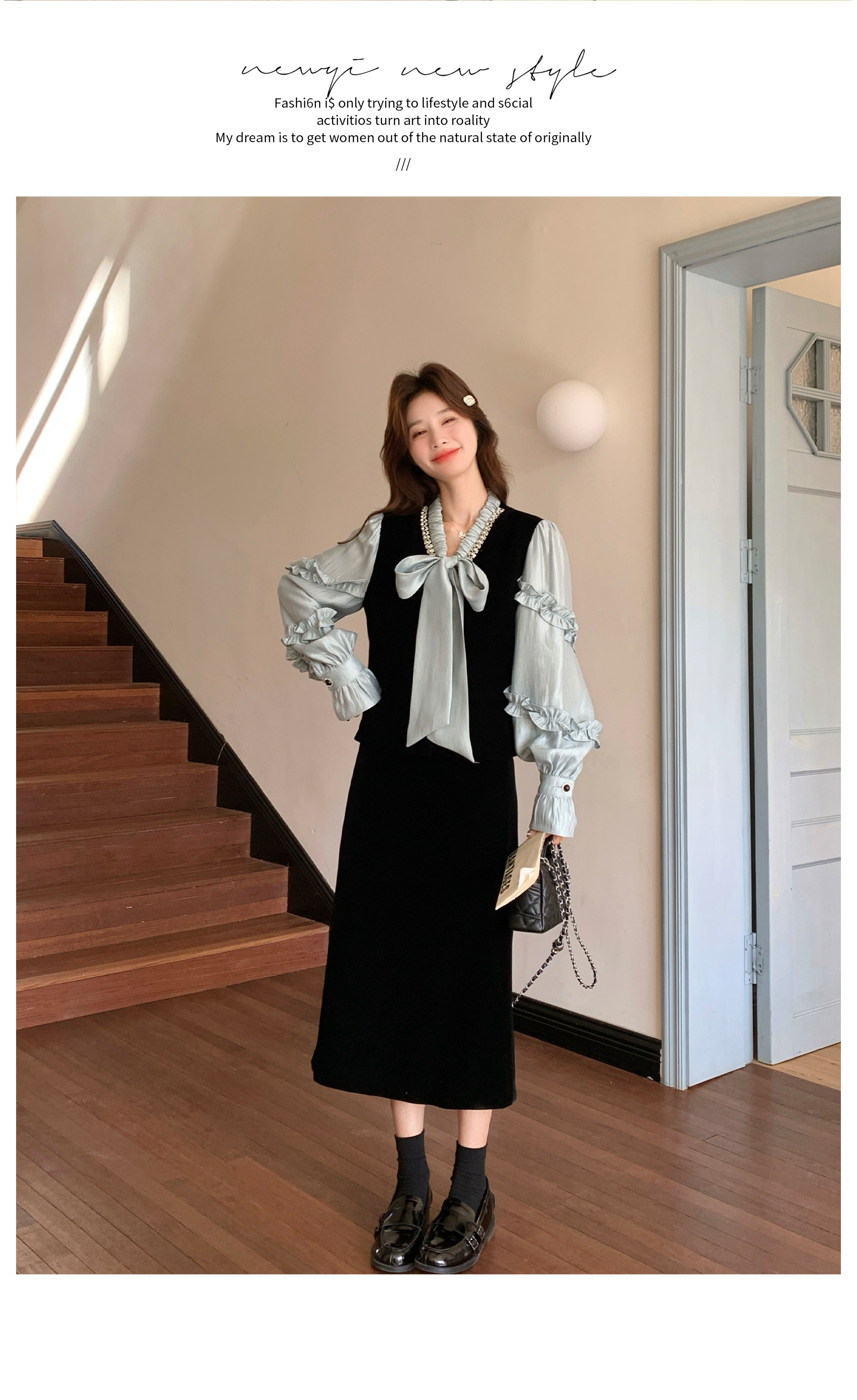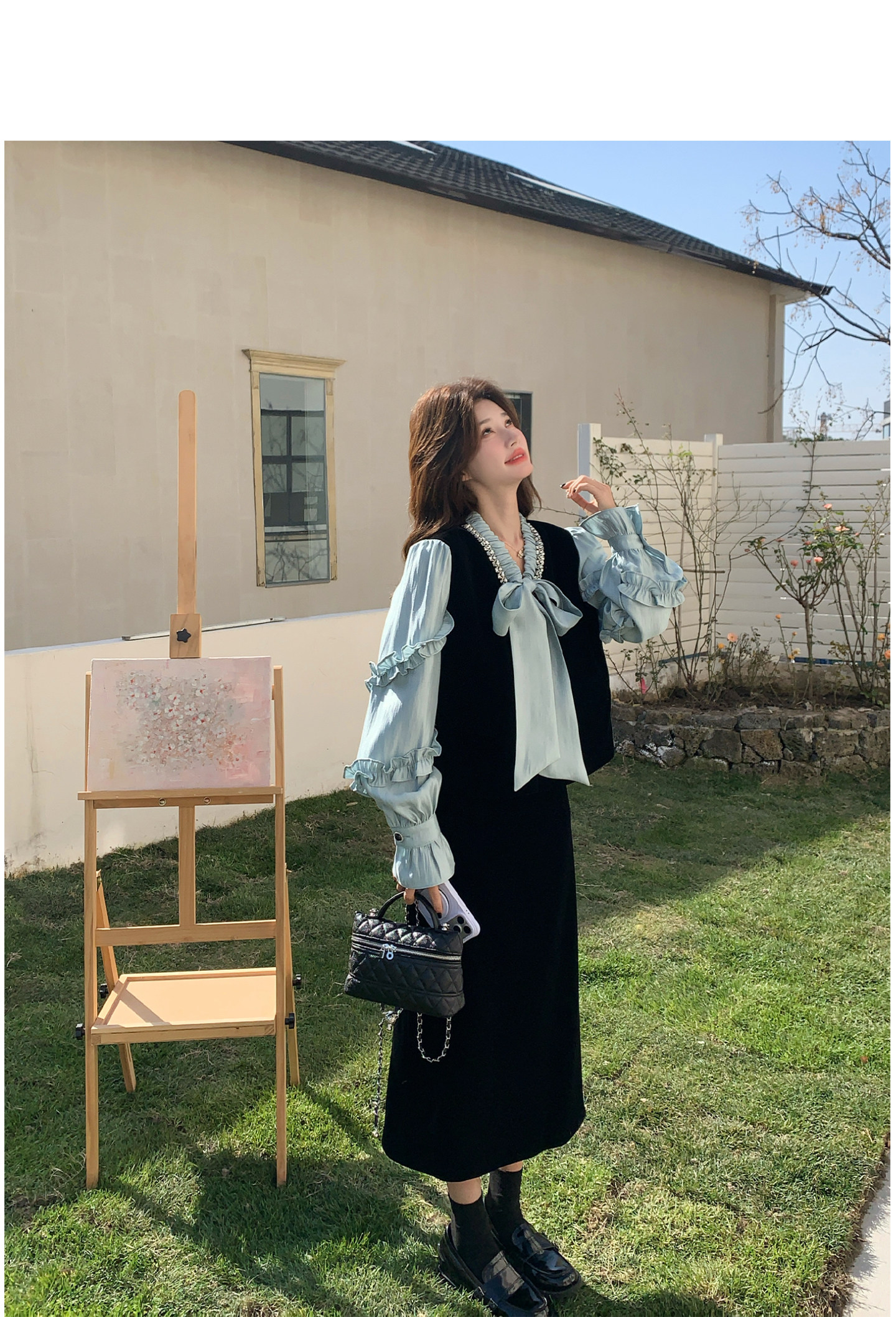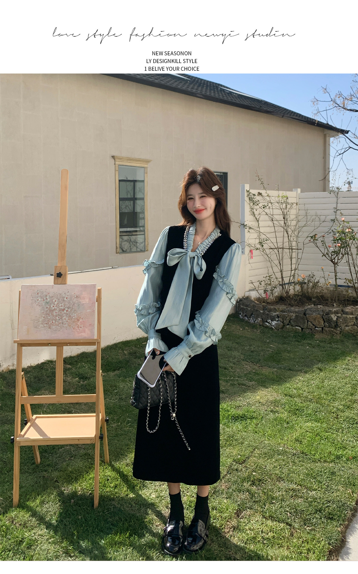 【商品名】【セットアップ】フレンチレトロ リボンブラウス&スカート 上下セット 2026春新作 上品 レディース【JZシリーズ】