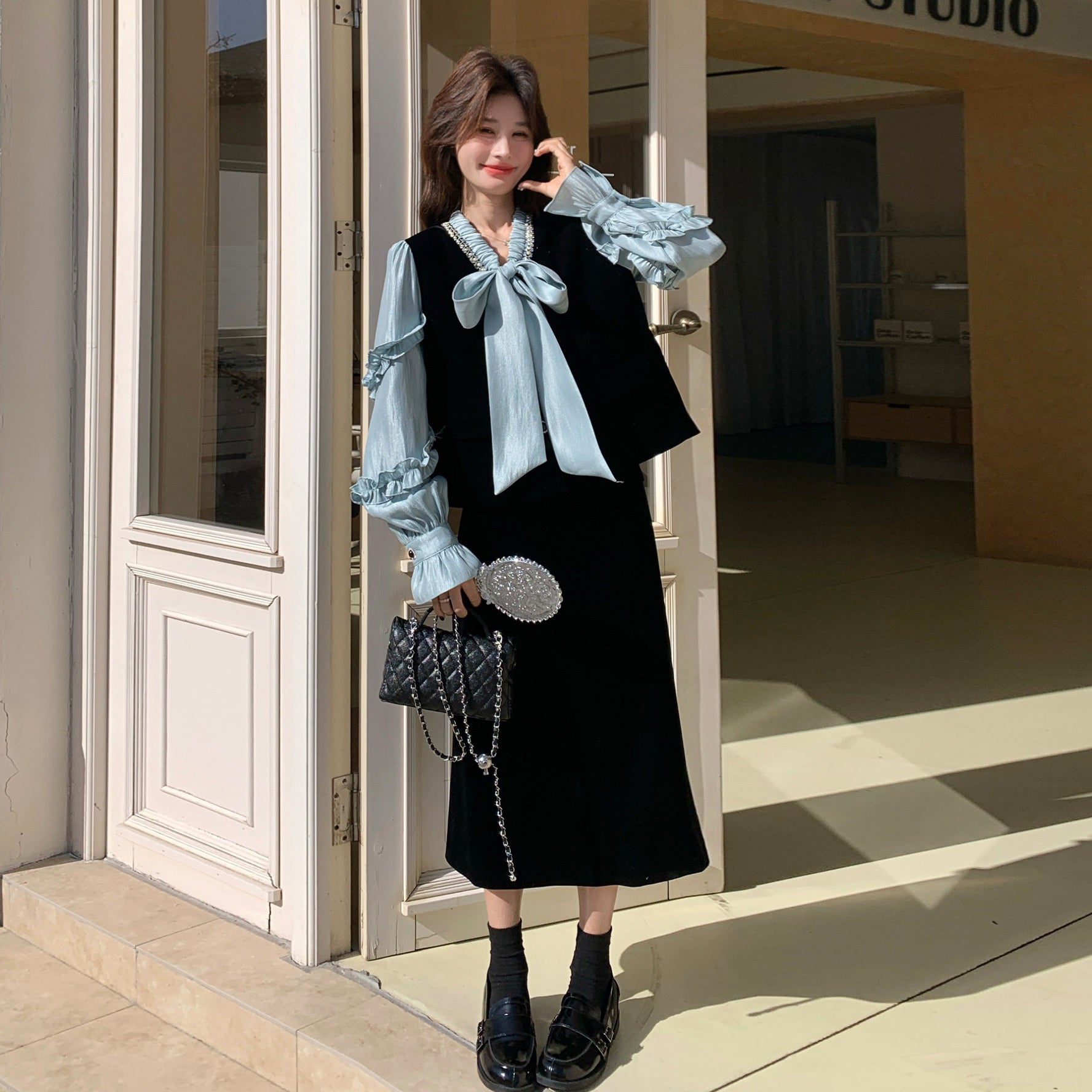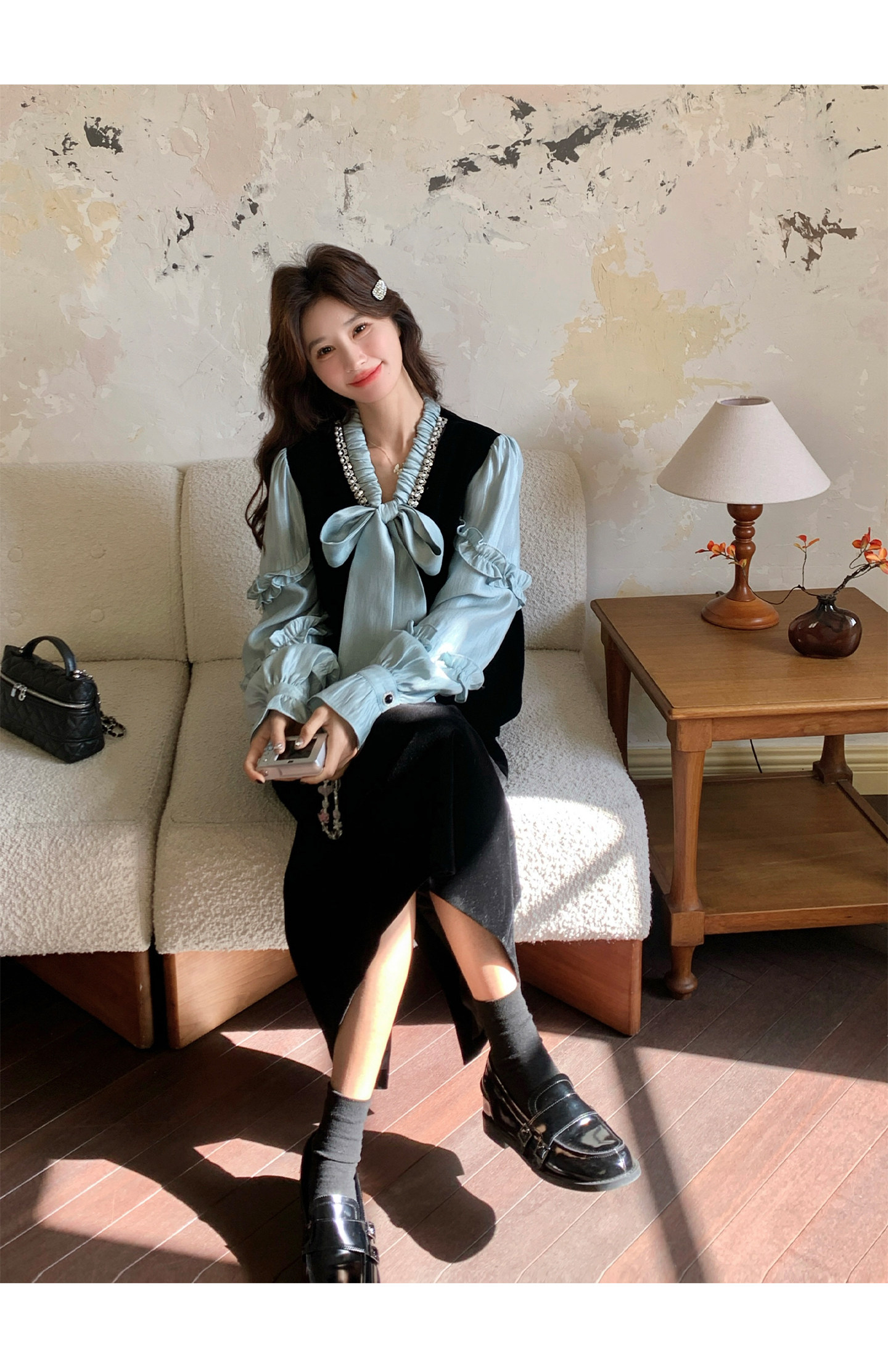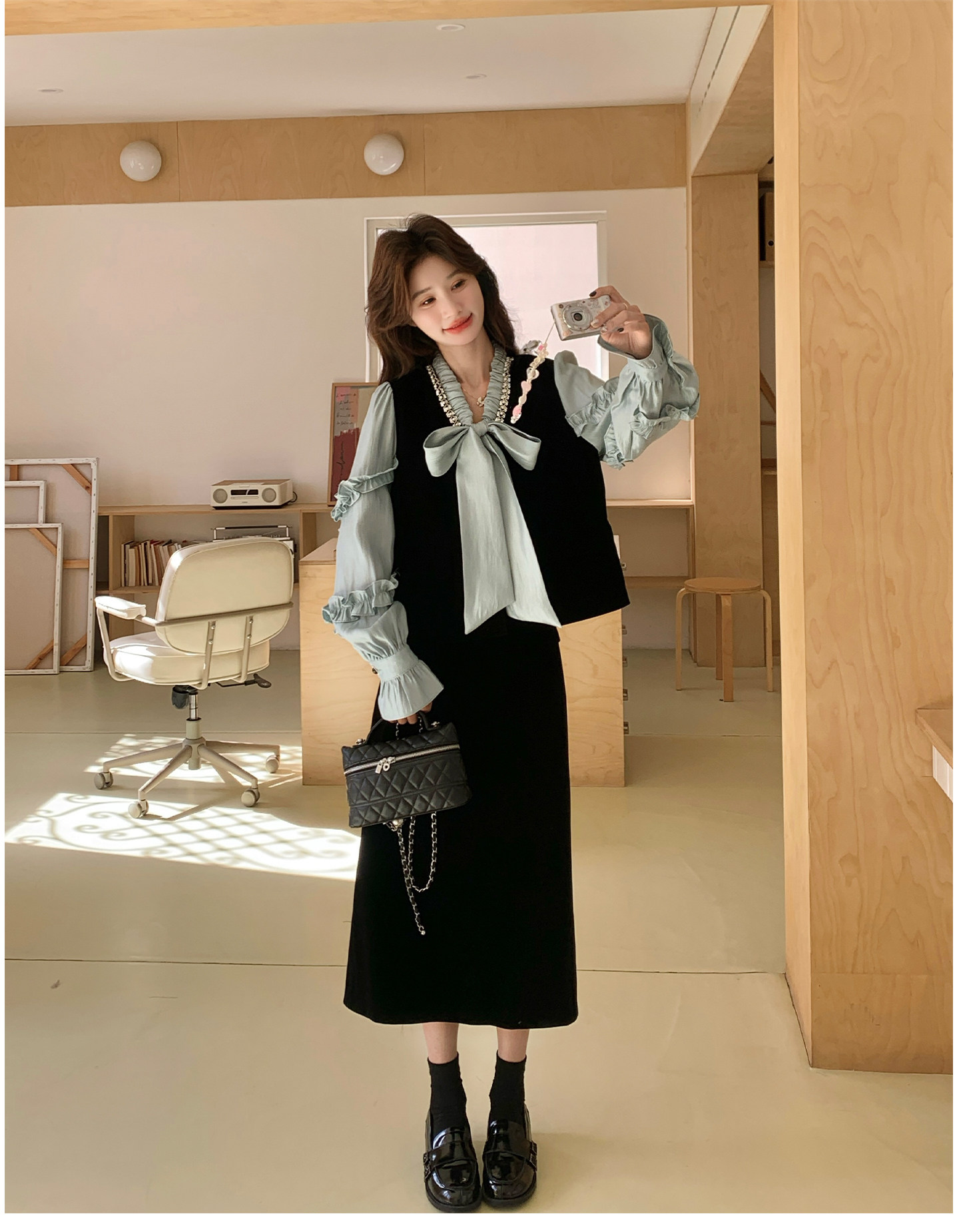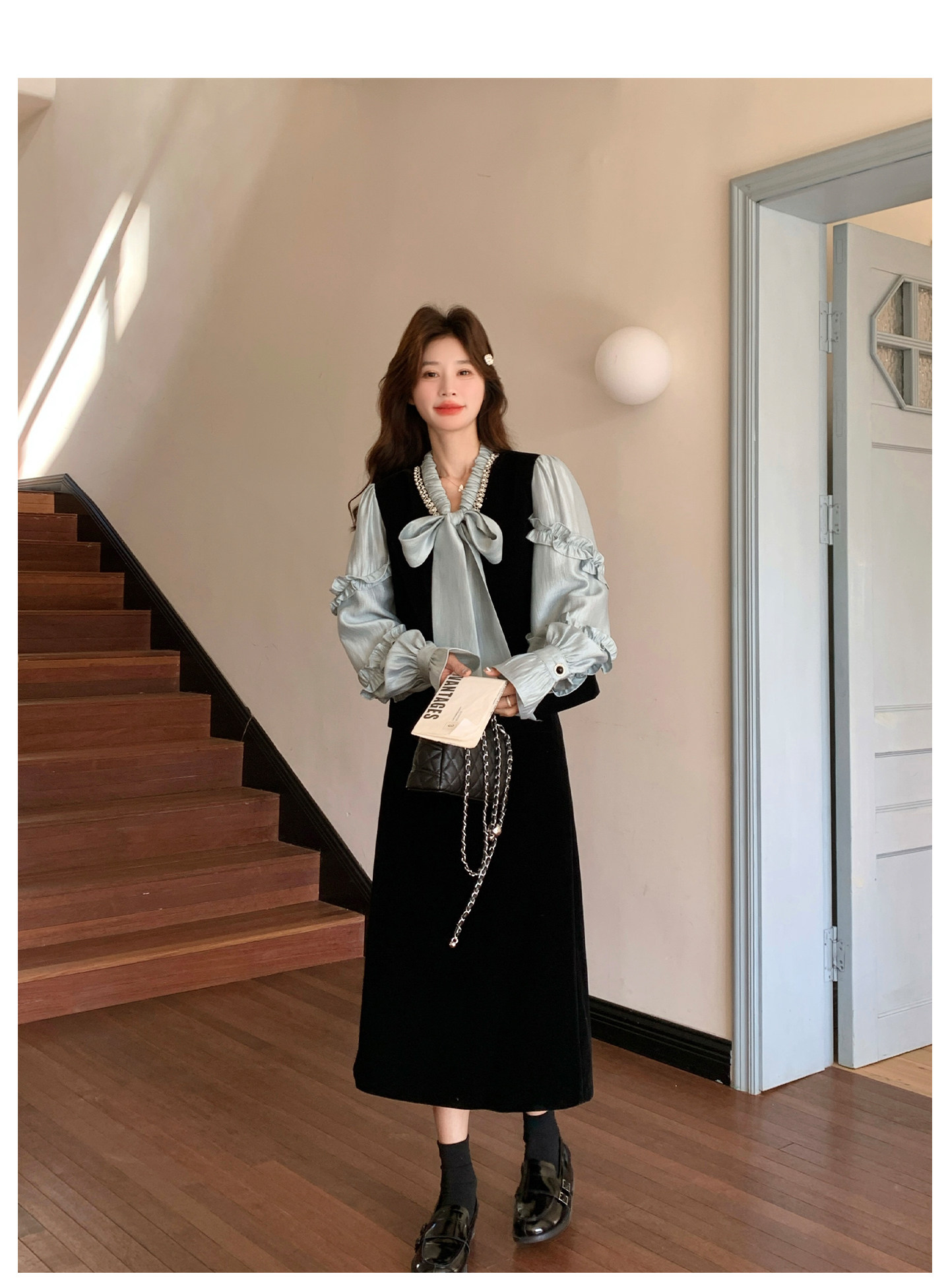 2点セット!【セットアップ】フレンチレトロ リボンブラウス&スカート 上下セット 2026春新作 上品 レディース【JZシリーズ】