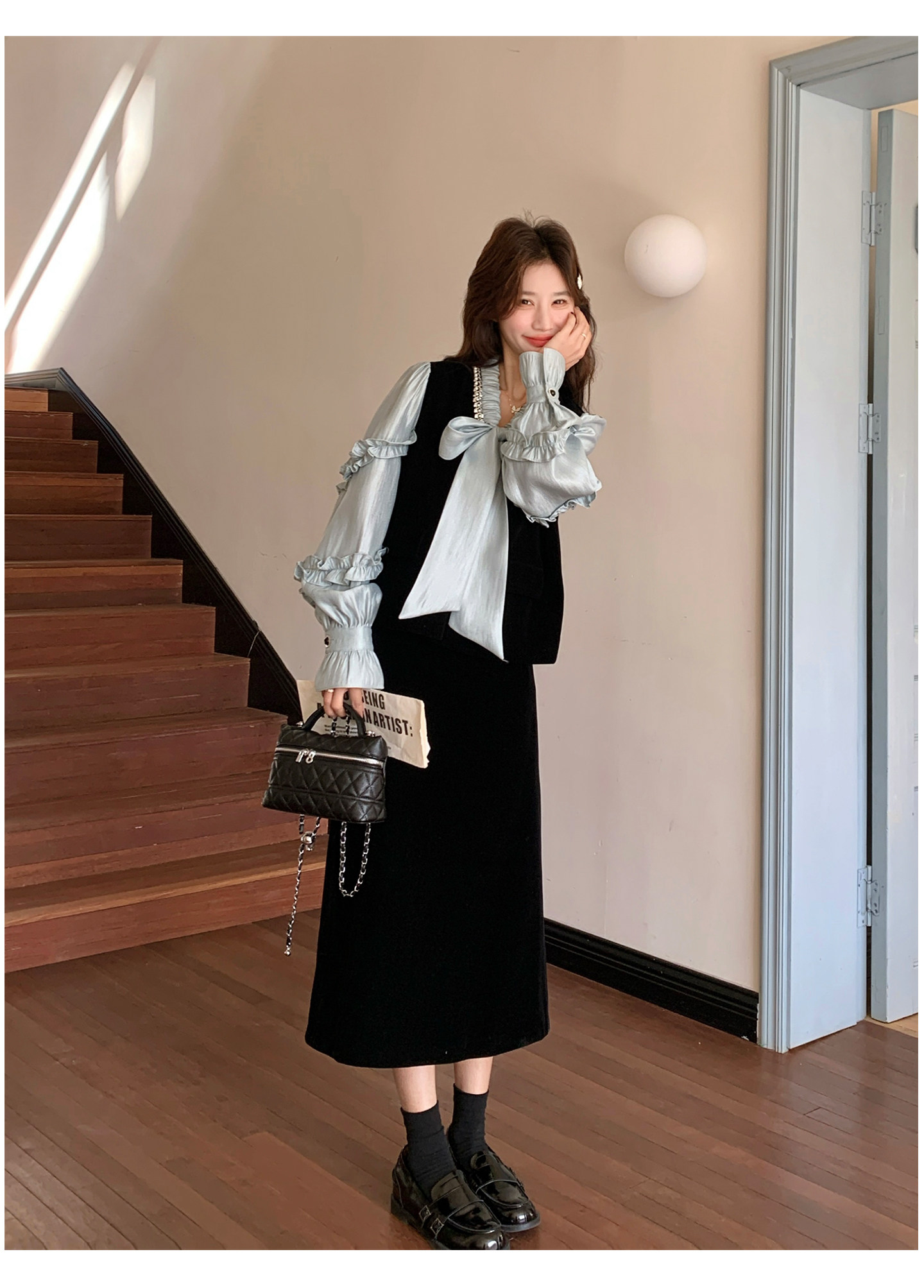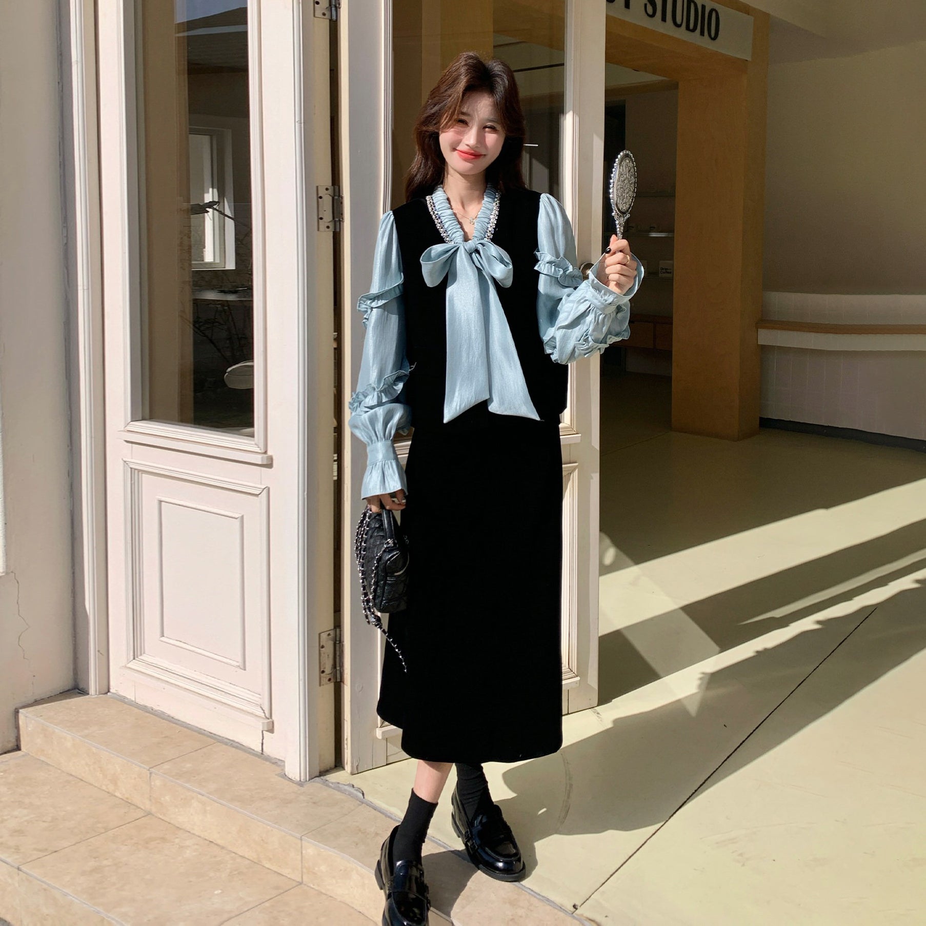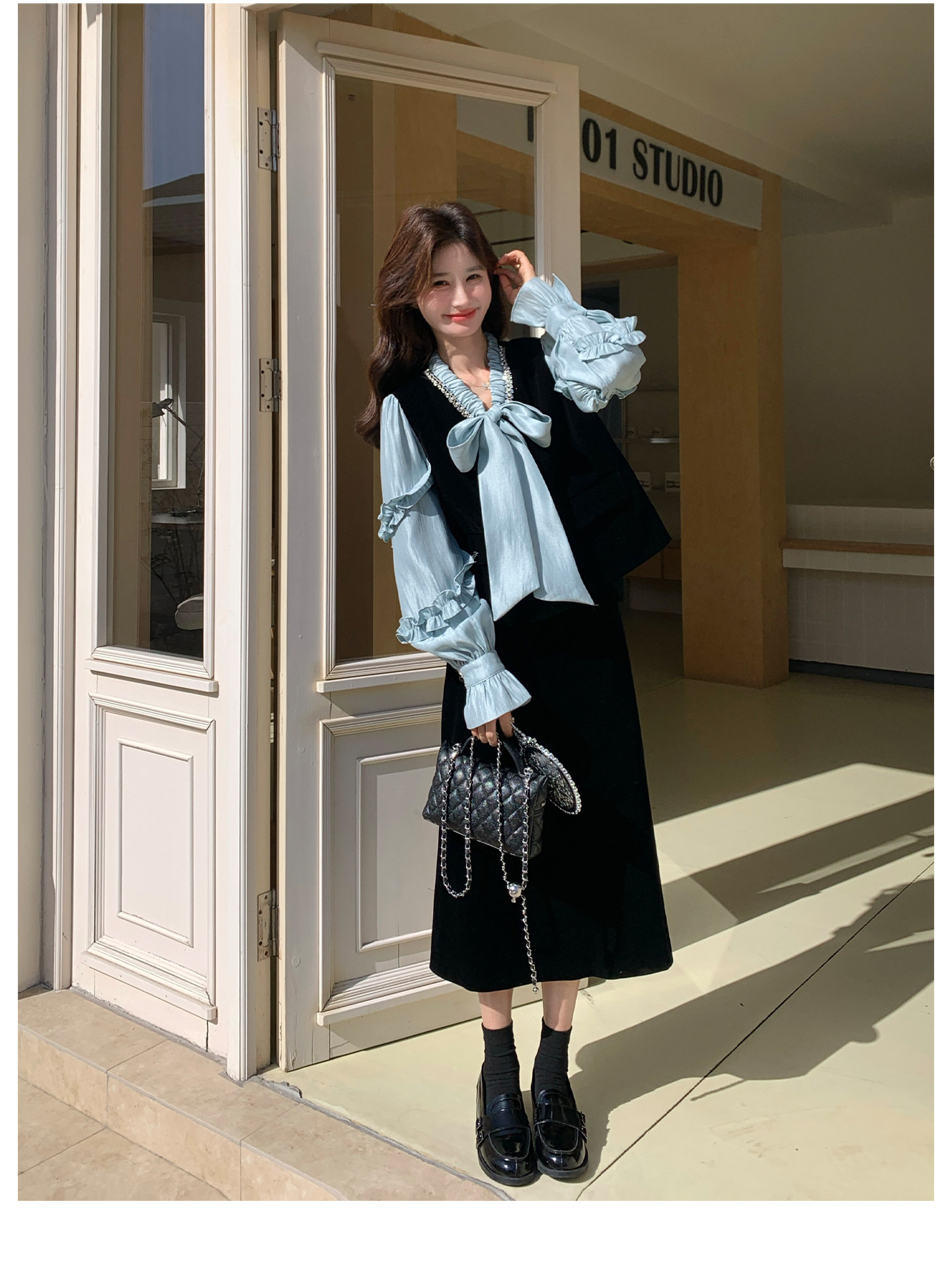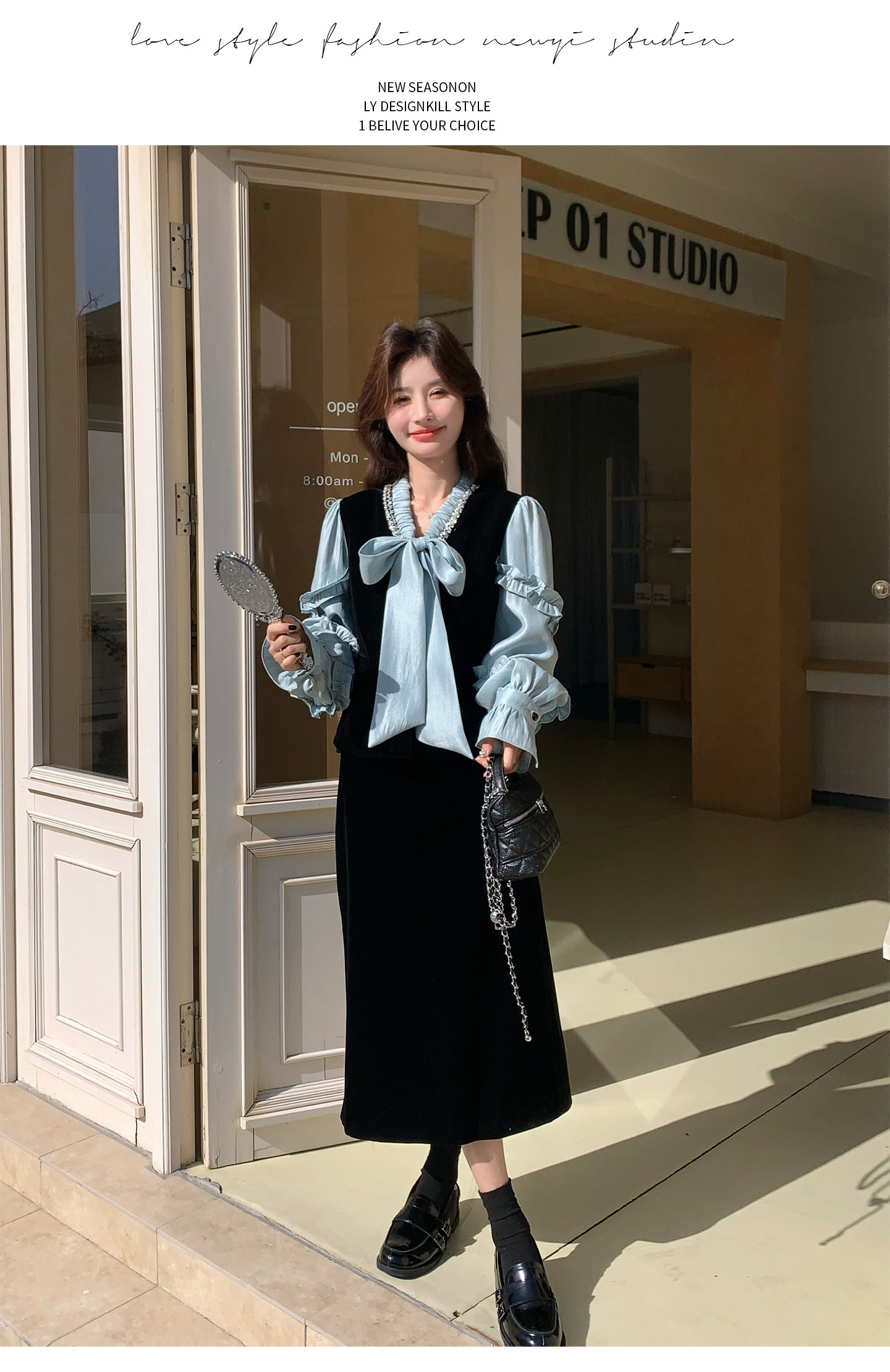 2点セット!【セットアップ】フレンチレトロ リボンブラウス&スカート 上下セット 2026春新作 上品 レディース【JZシリーズ】