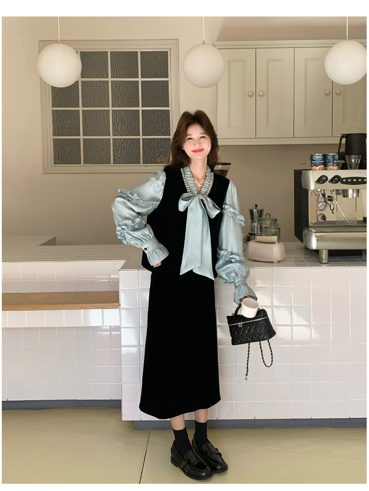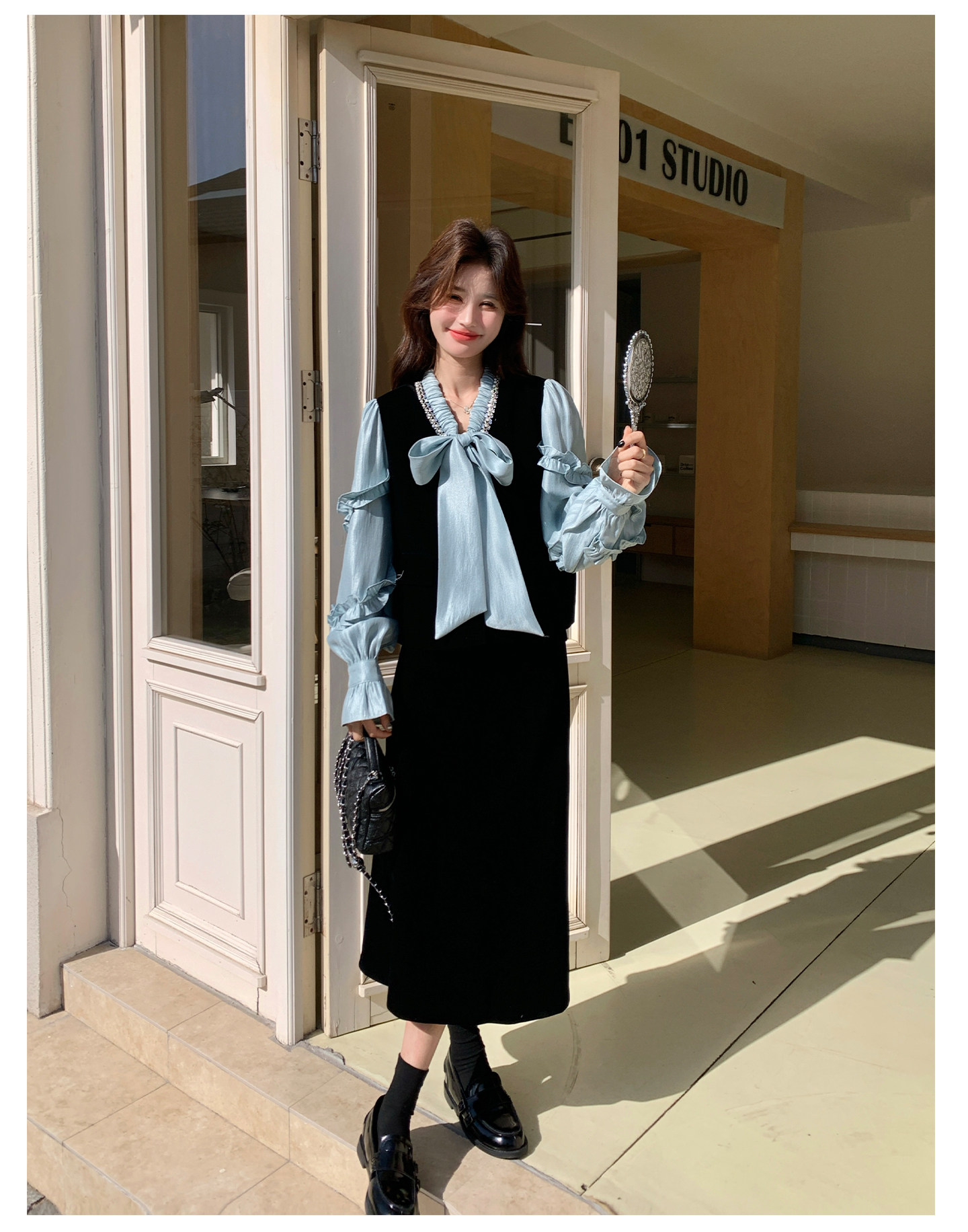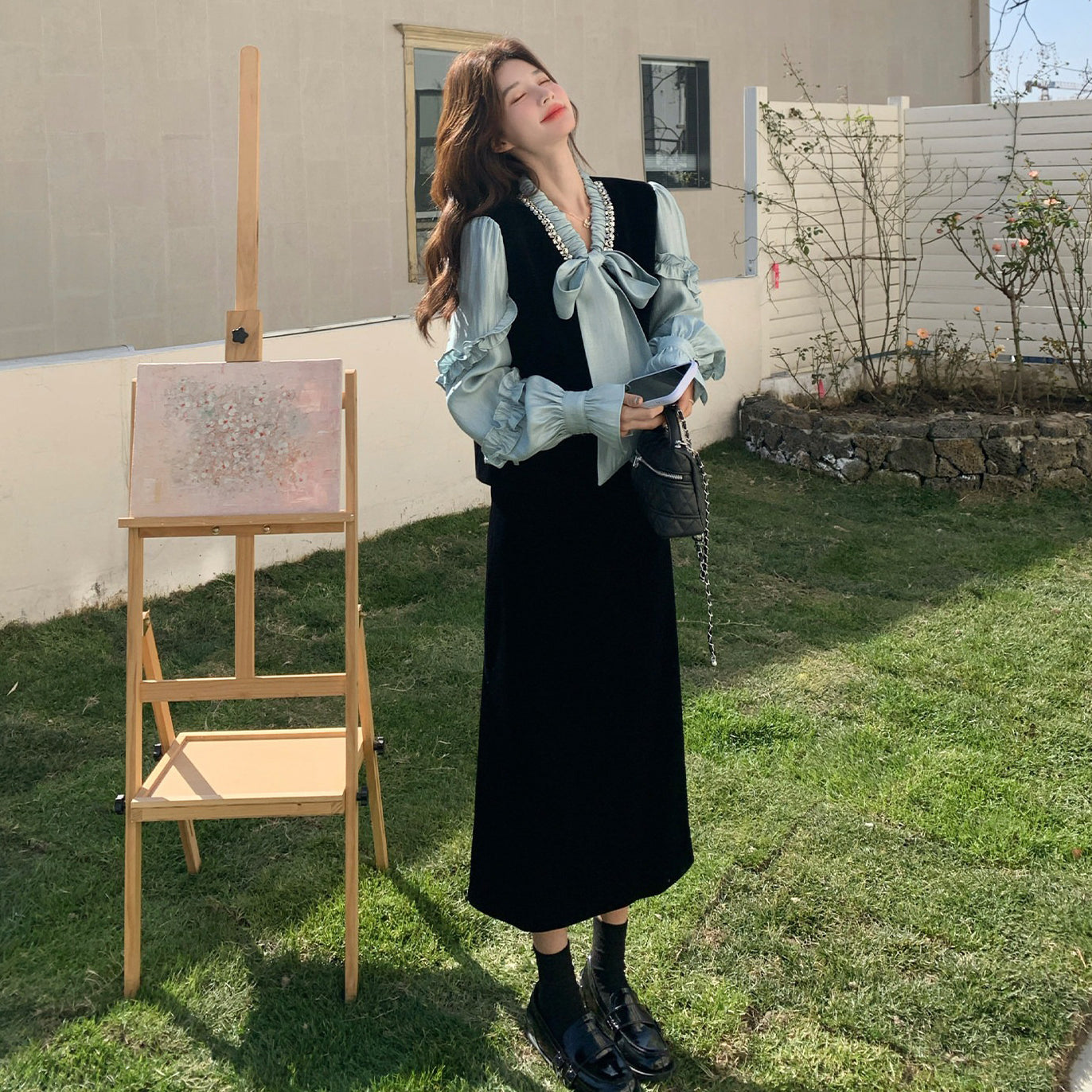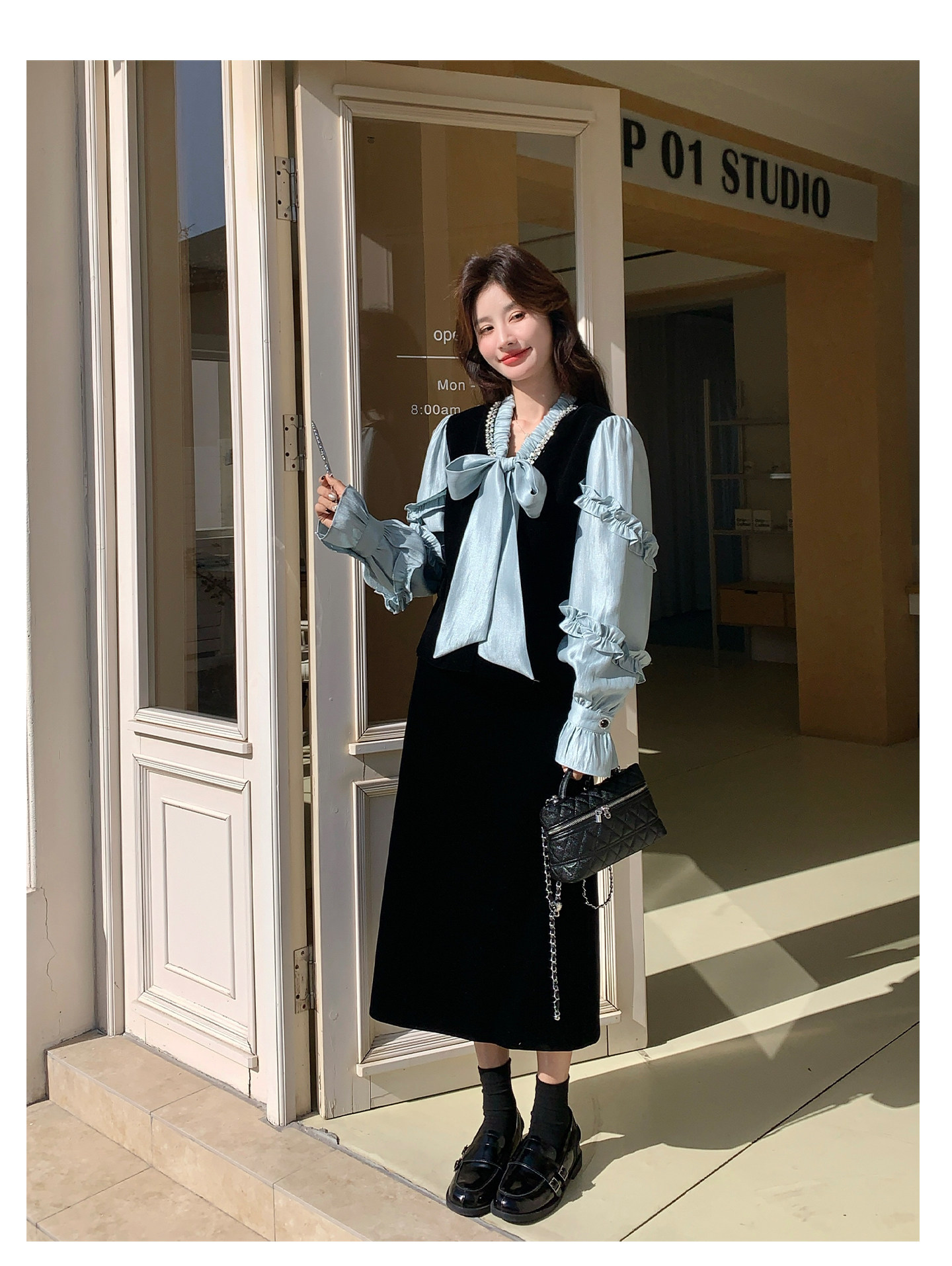 2点セット!【セットアップ】フレンチレトロ リボンブラウス&スカート 上下セット 2026春新作 上品 レディース【JZシリーズ】