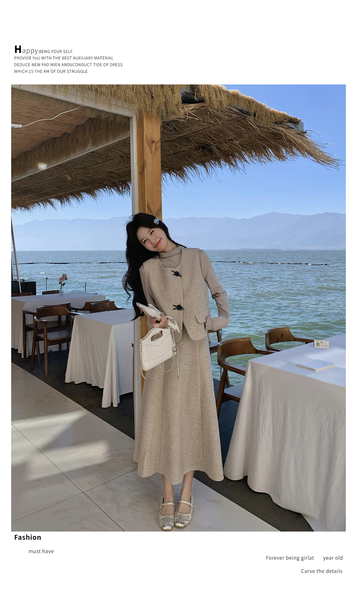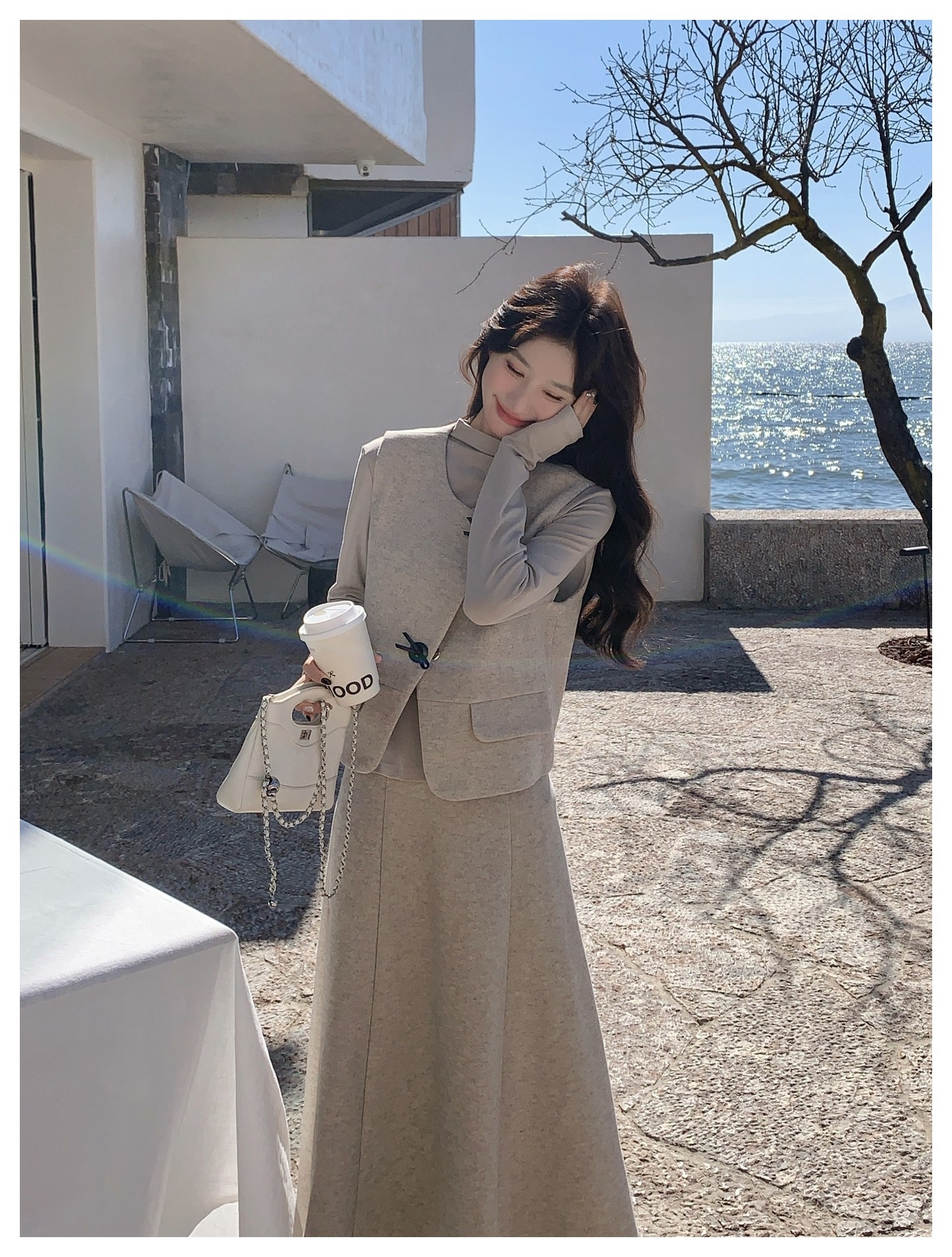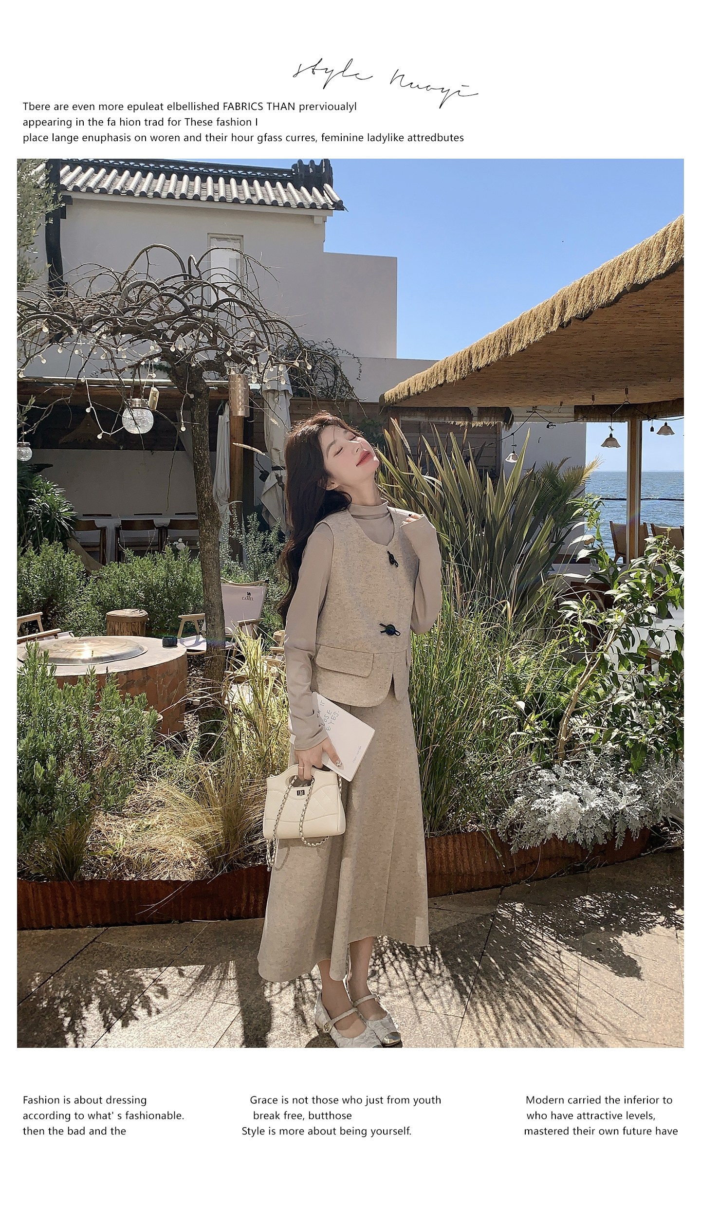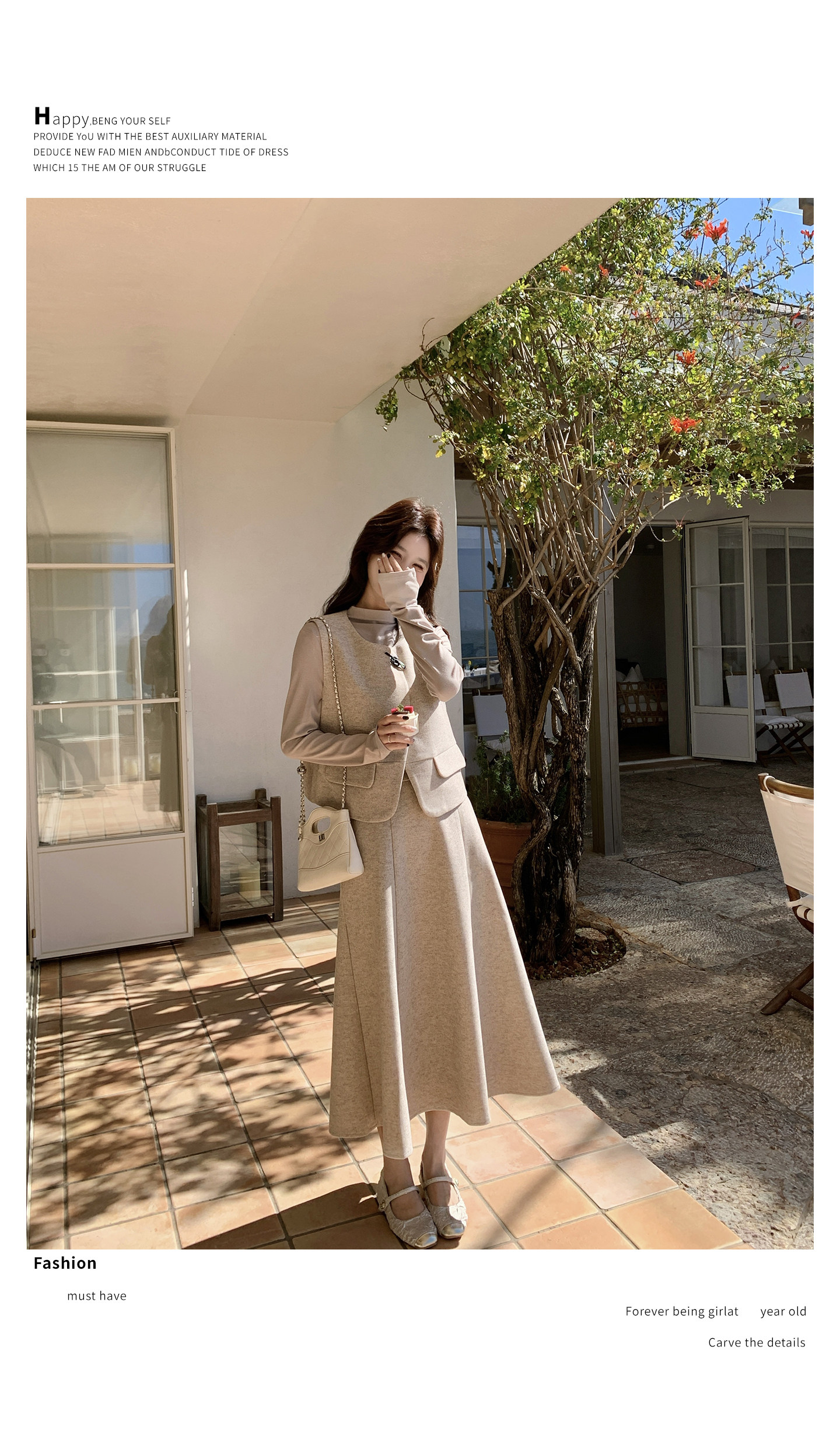 【商品名】3点セット!【セットアップ】リラックス風 ハイネック 上下セット 2026春新作 レディース ベスト+インナー+ミニスカート 上品【JZシリーズ】