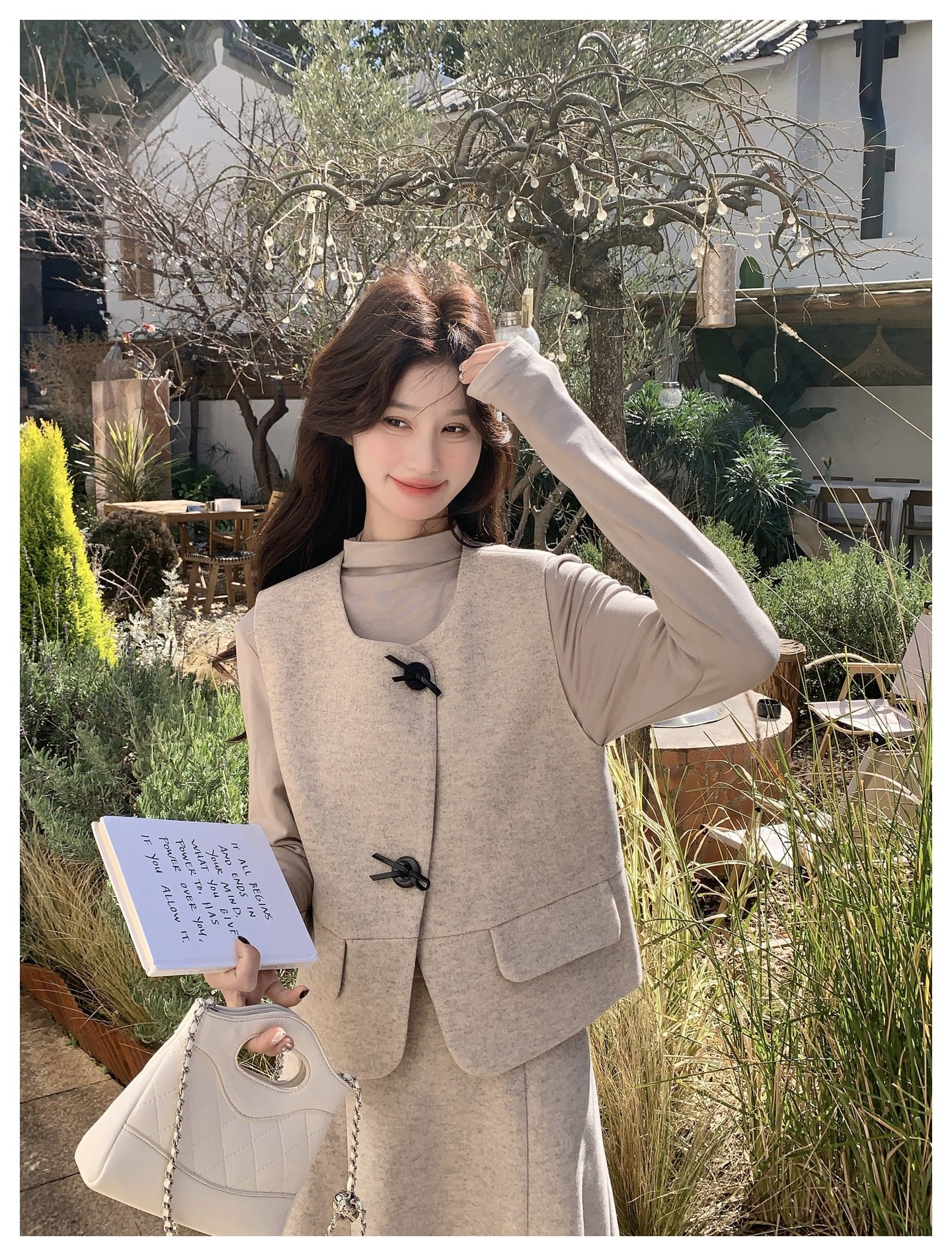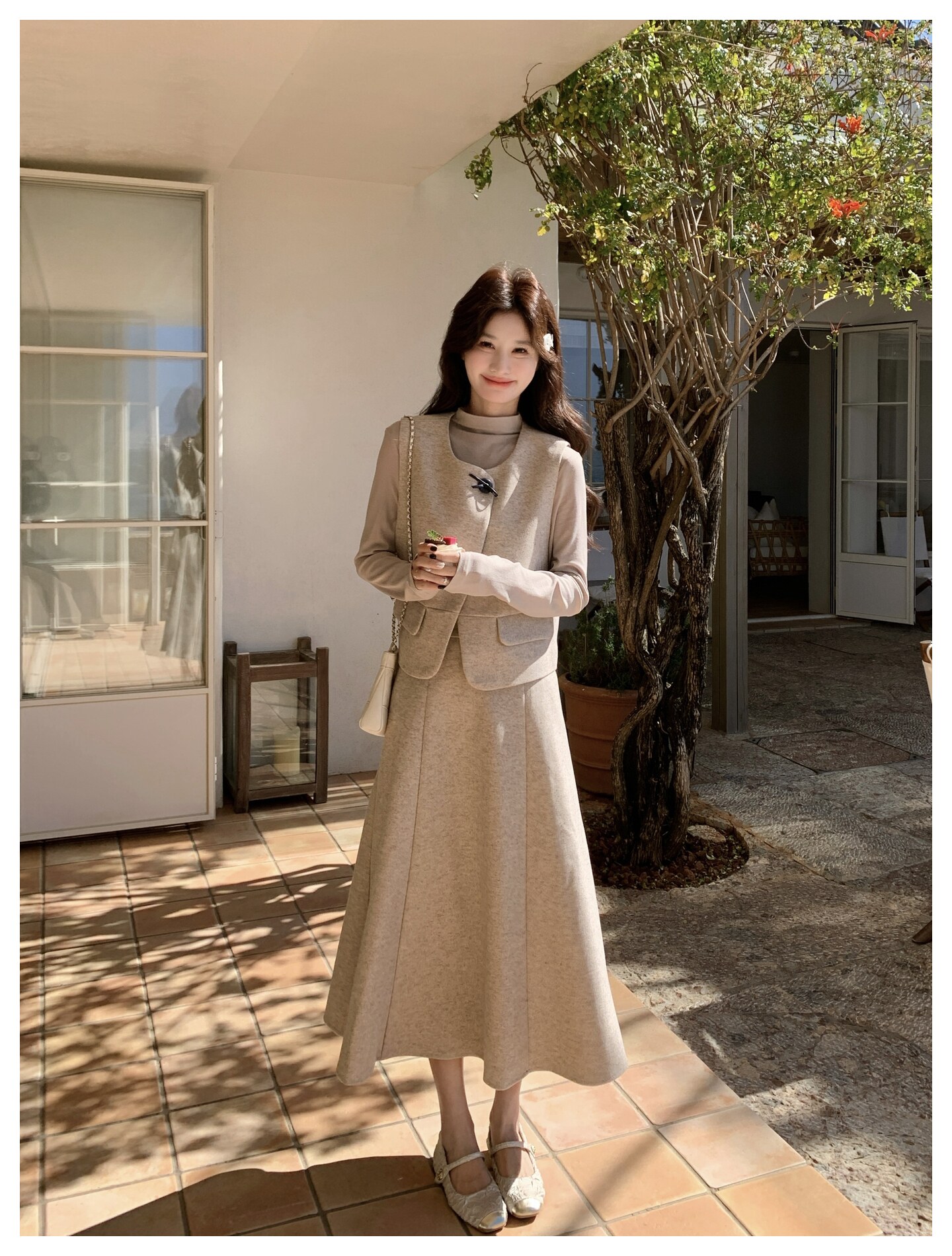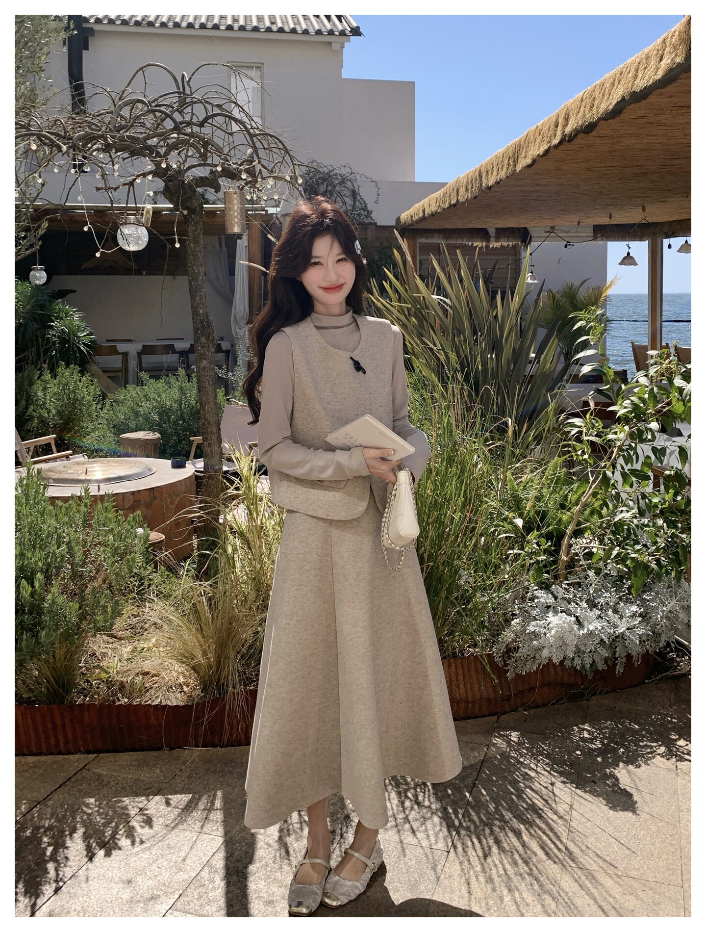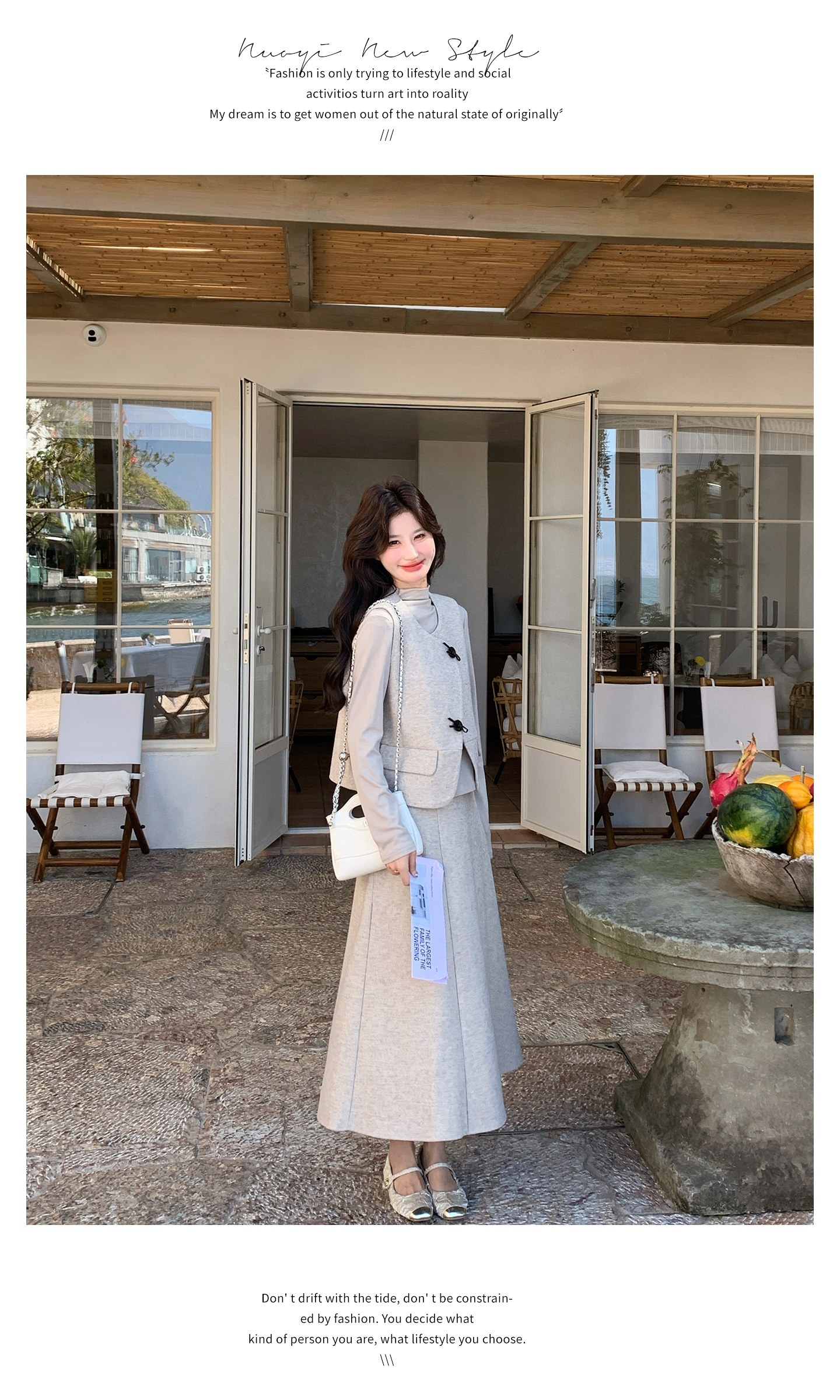 【商品名】3点セット!【セットアップ】リラックス風 ハイネック 上下セット 2026春新作 レディース ベスト+インナー+ミニスカート 上品【JZシリーズ】