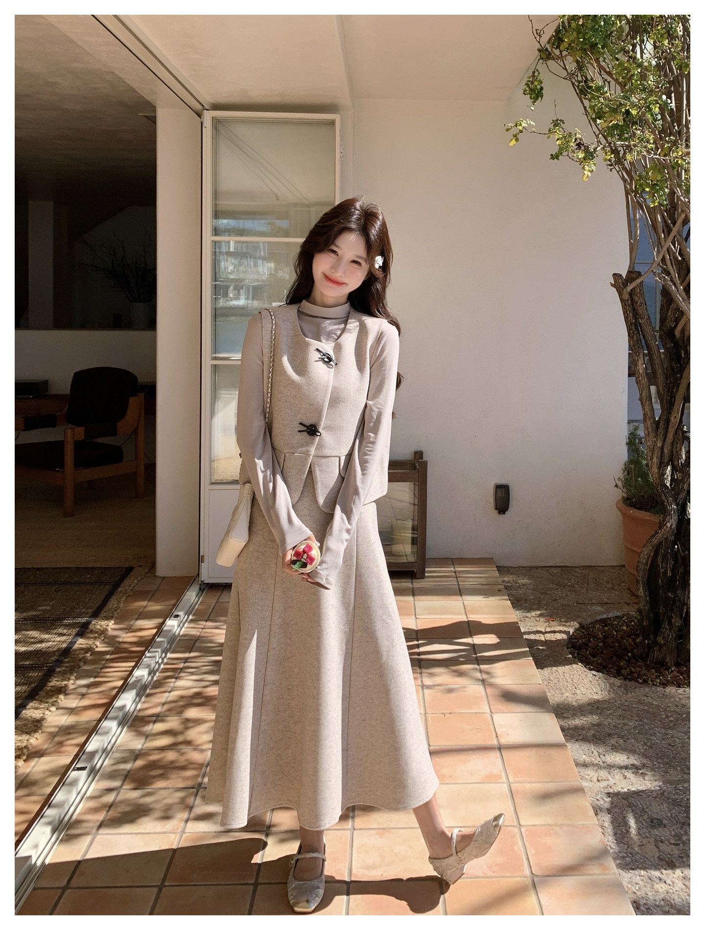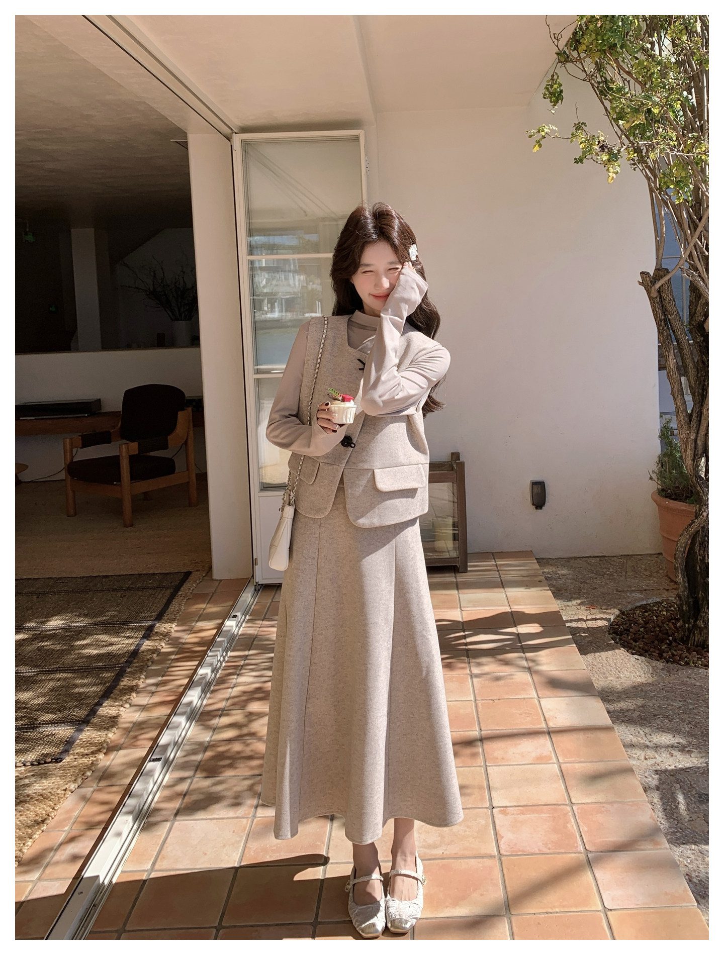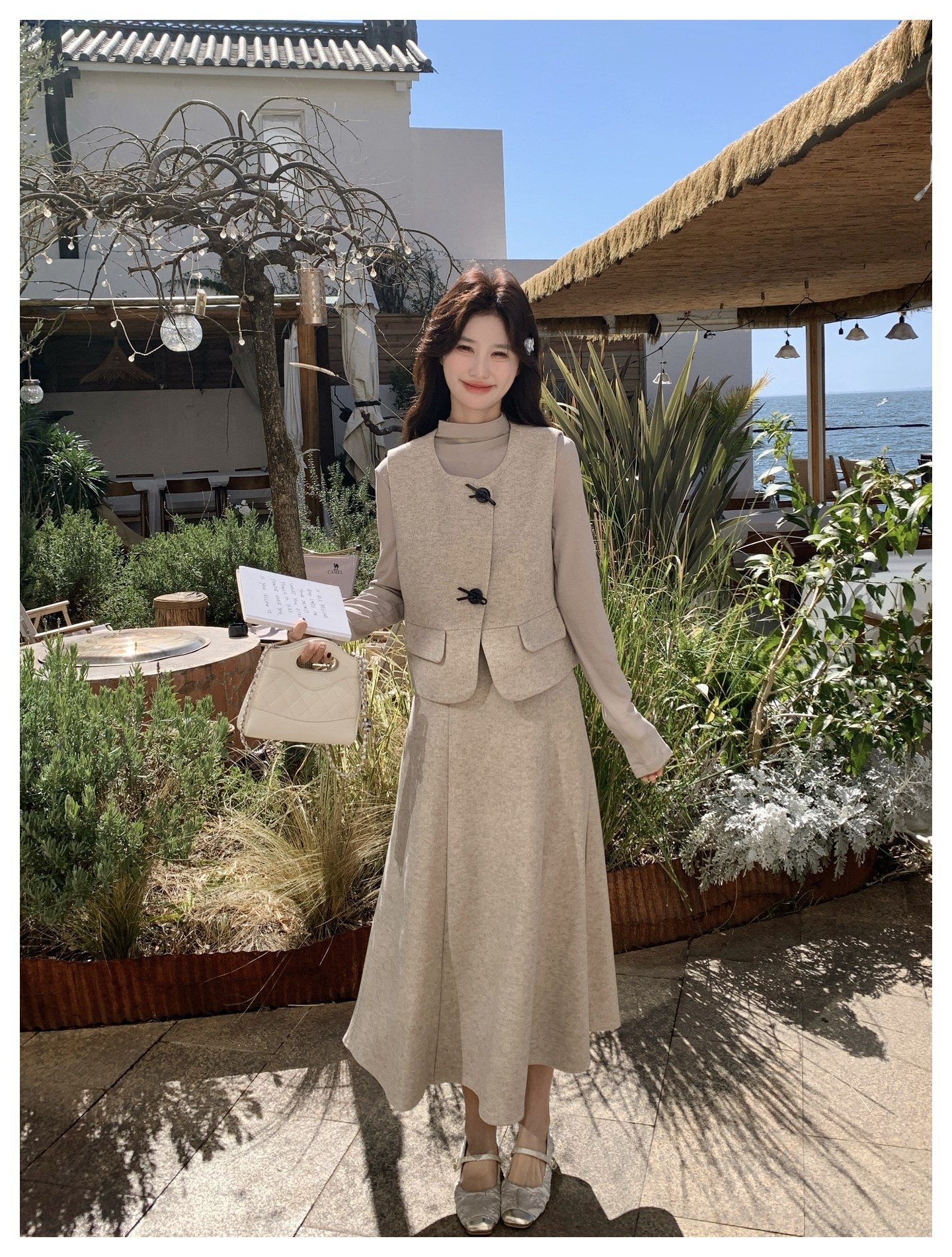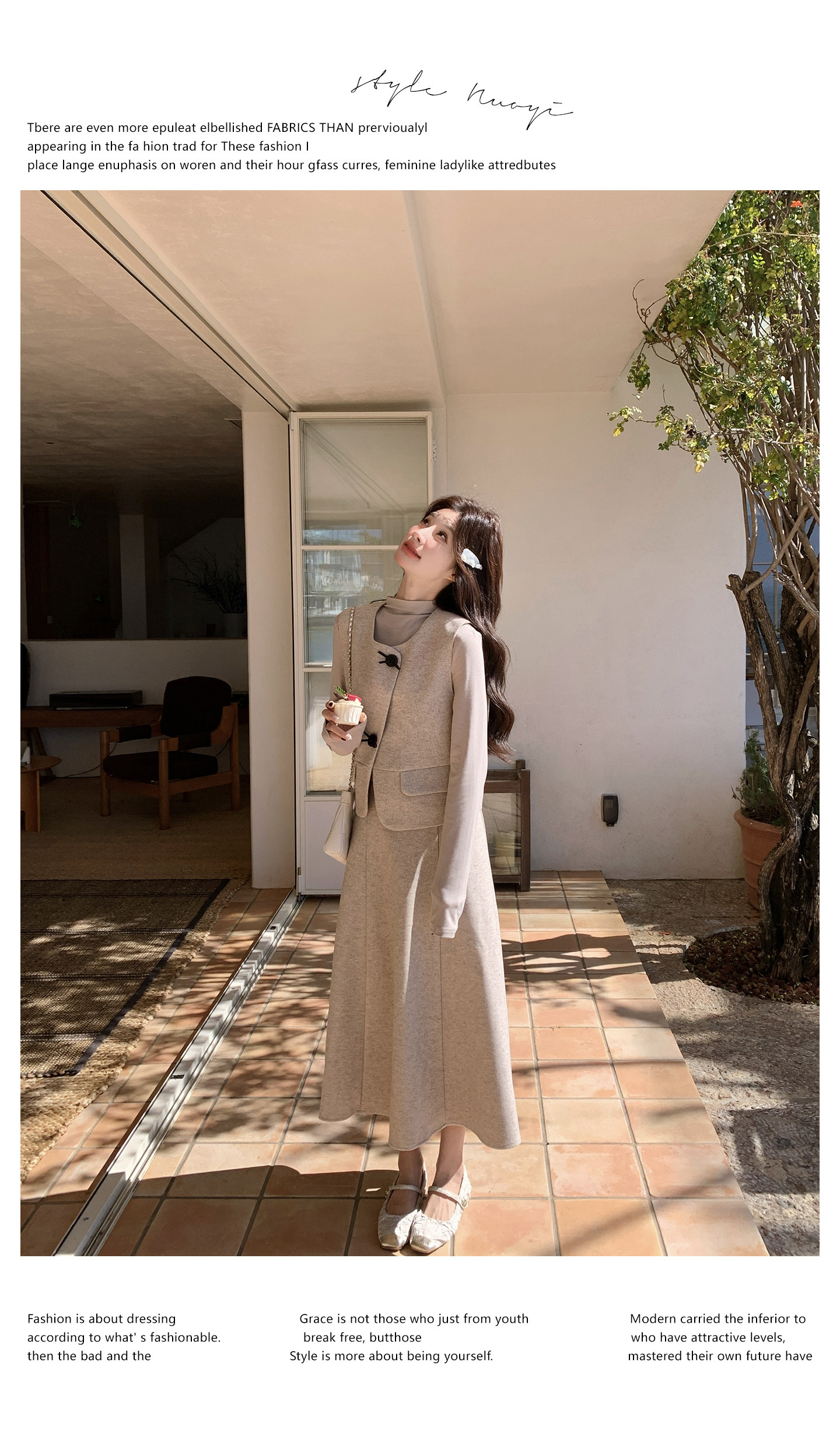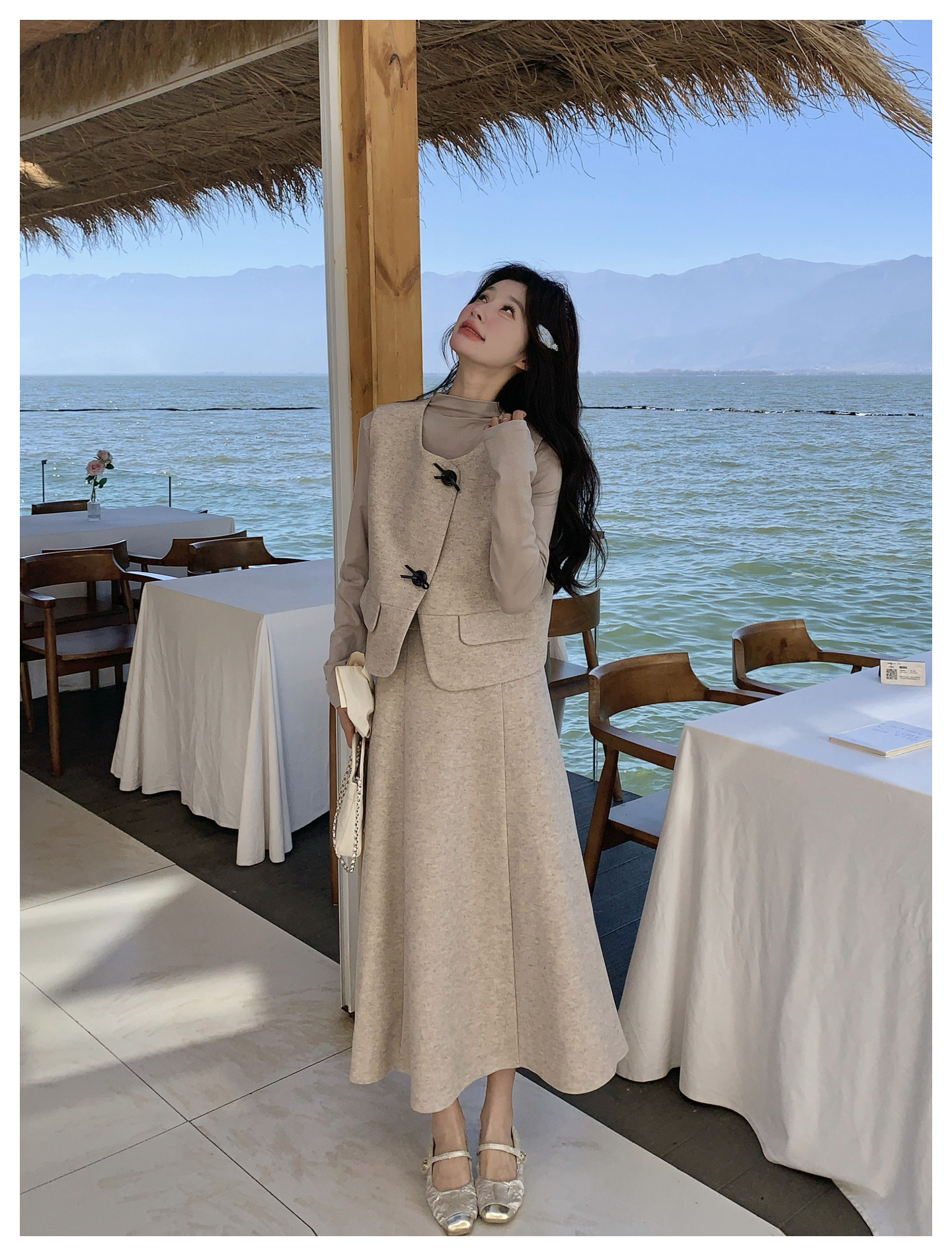 【商品名】3点セット!【セットアップ】リラックス風 ハイネック 上下セット 2026春新作 レディース ベスト+インナー+ミニスカート 上品【JZシリーズ】