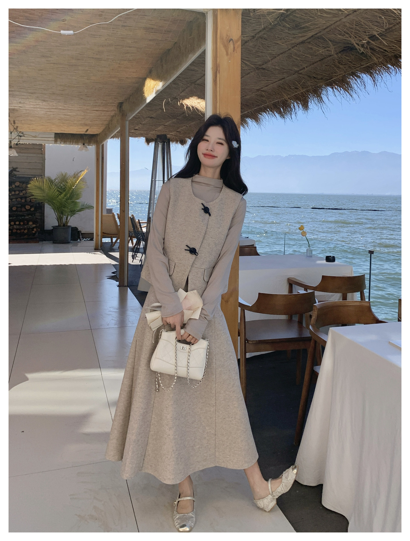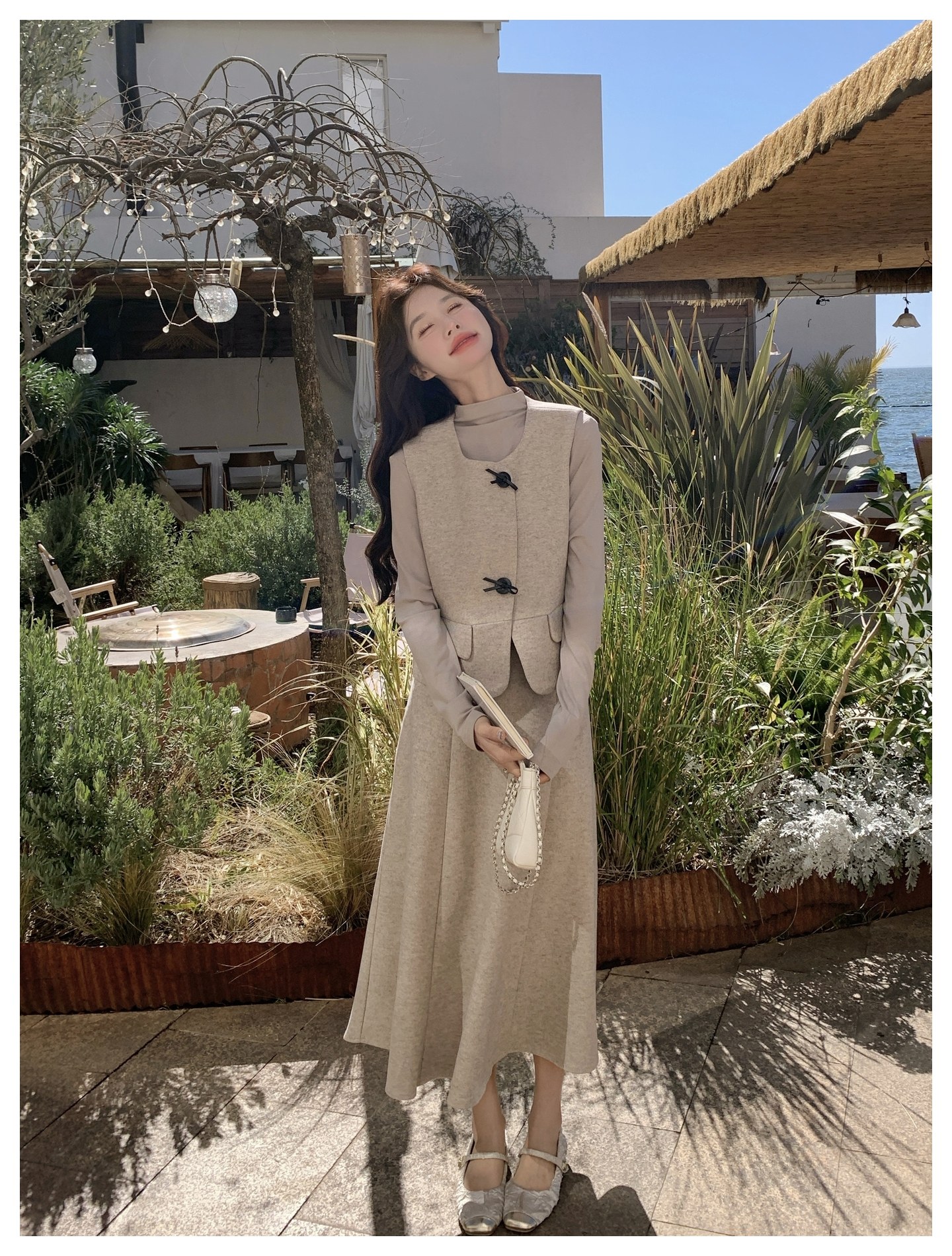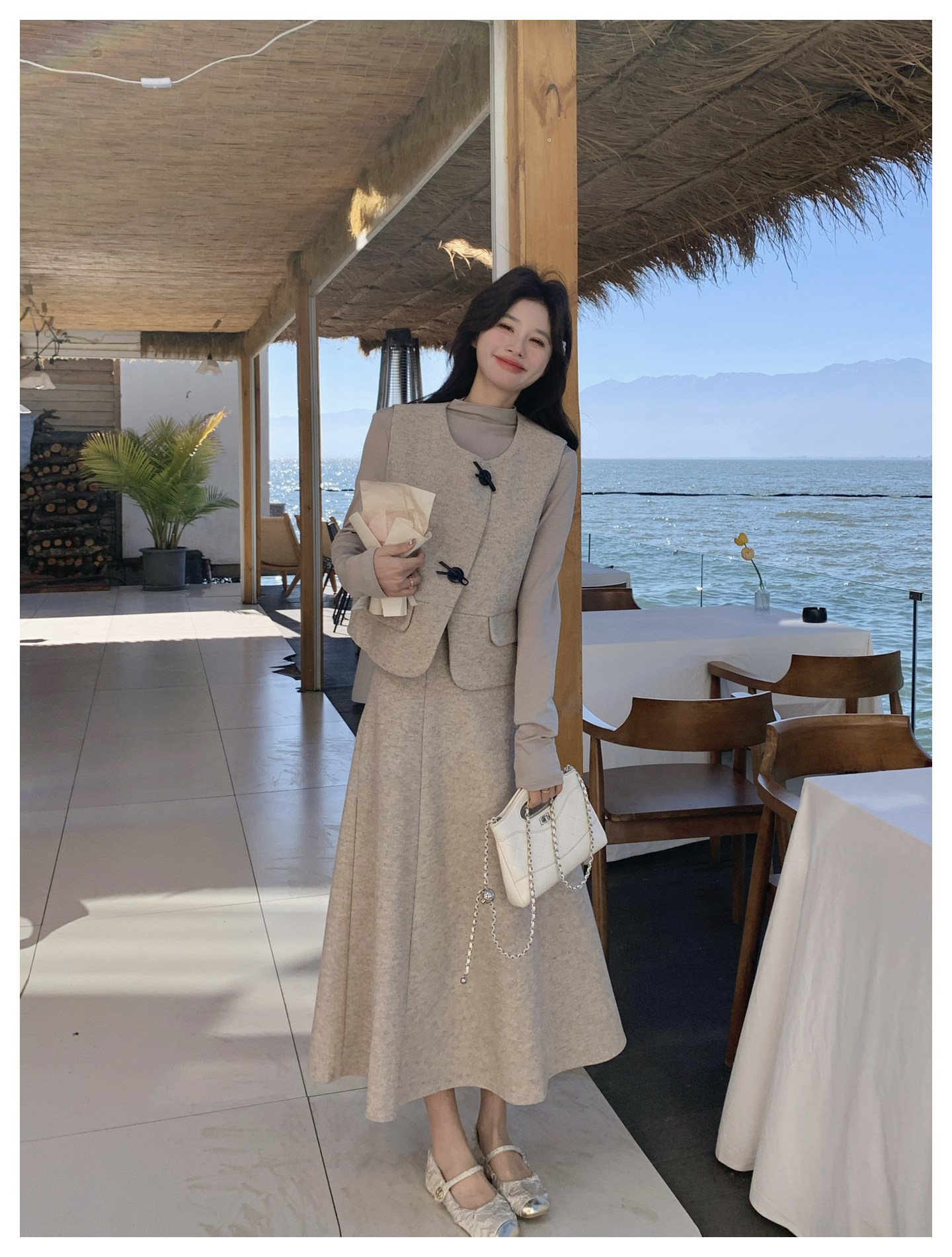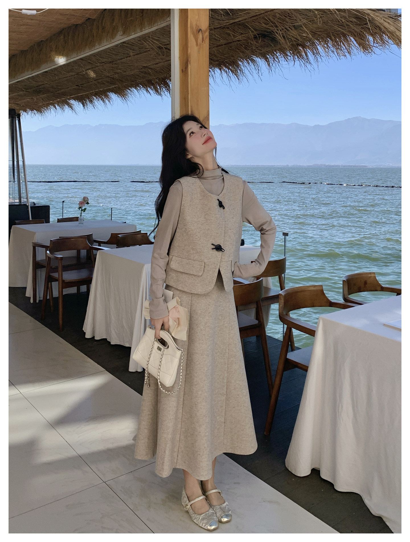 【商品名】3点セット!【セットアップ】リラックス風 ハイネック 上下セット 2026春新作 レディース ベスト+インナー+ミニスカート 上品【JZシリーズ】