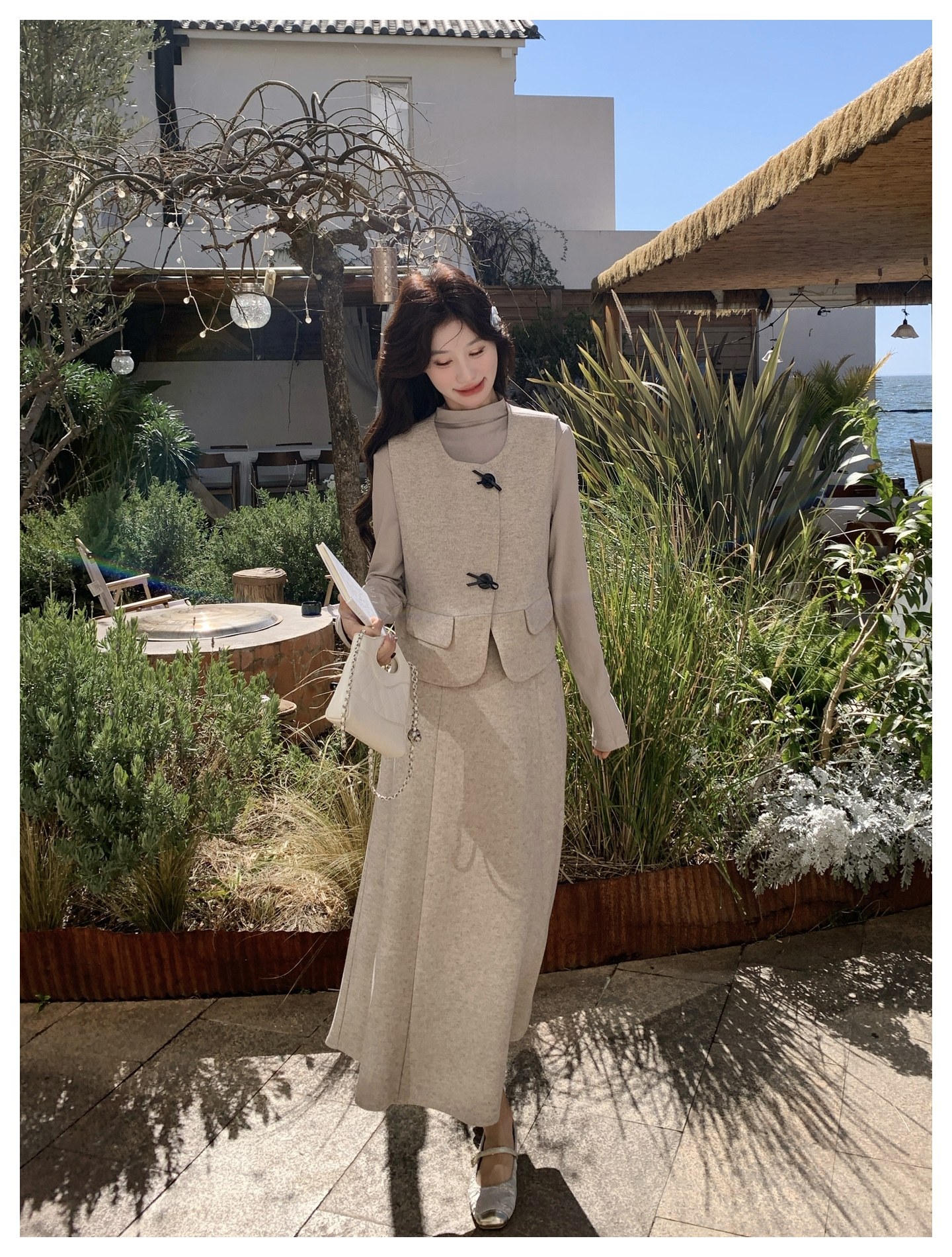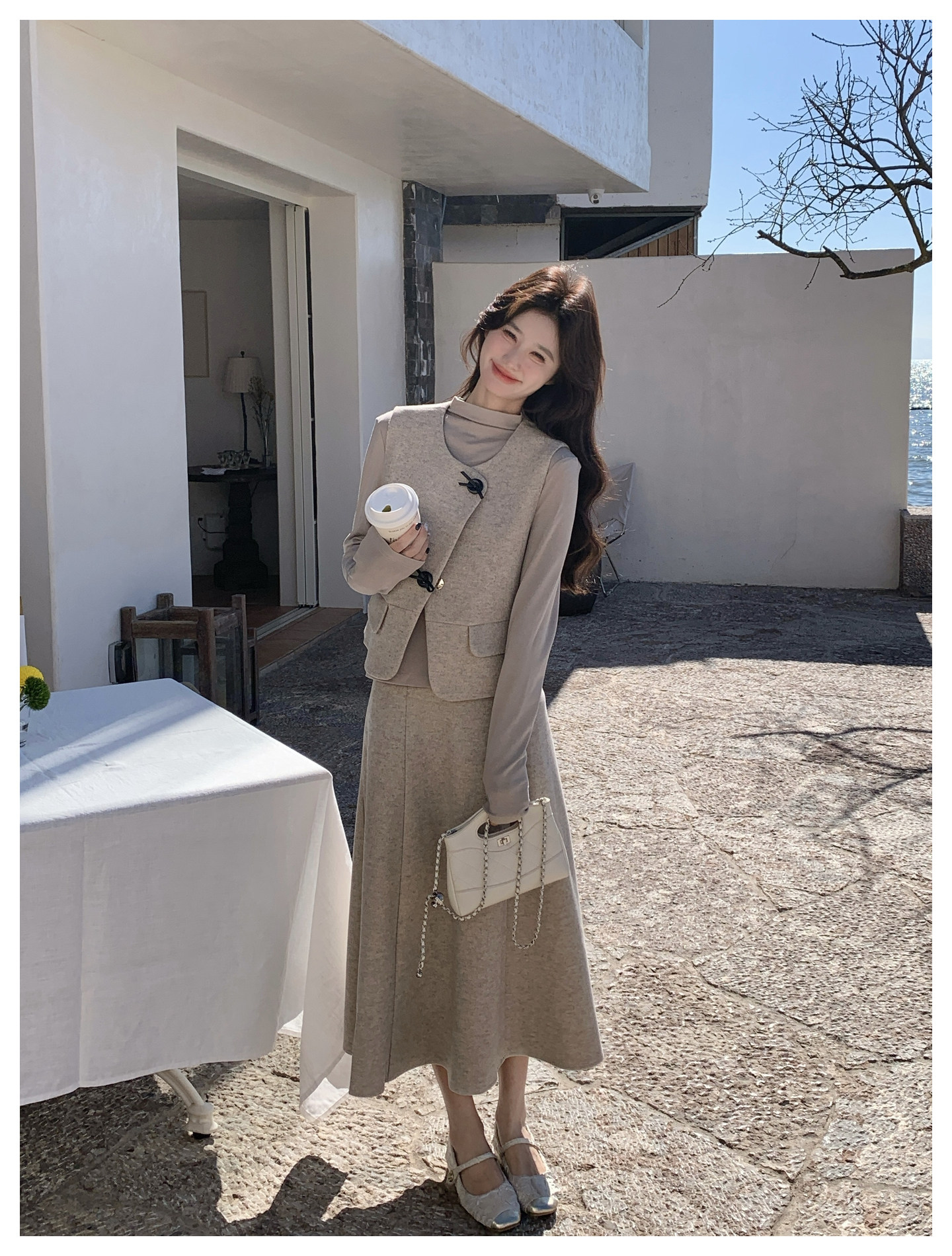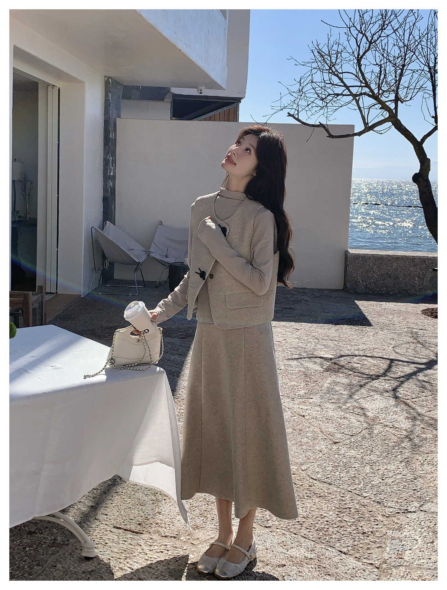 3点セット!【セットアップ】リラックス風 ハイネック 上下セット 2026春新作 レディース ベスト+インナー+ミニスカート 上品【JZシリーズ】