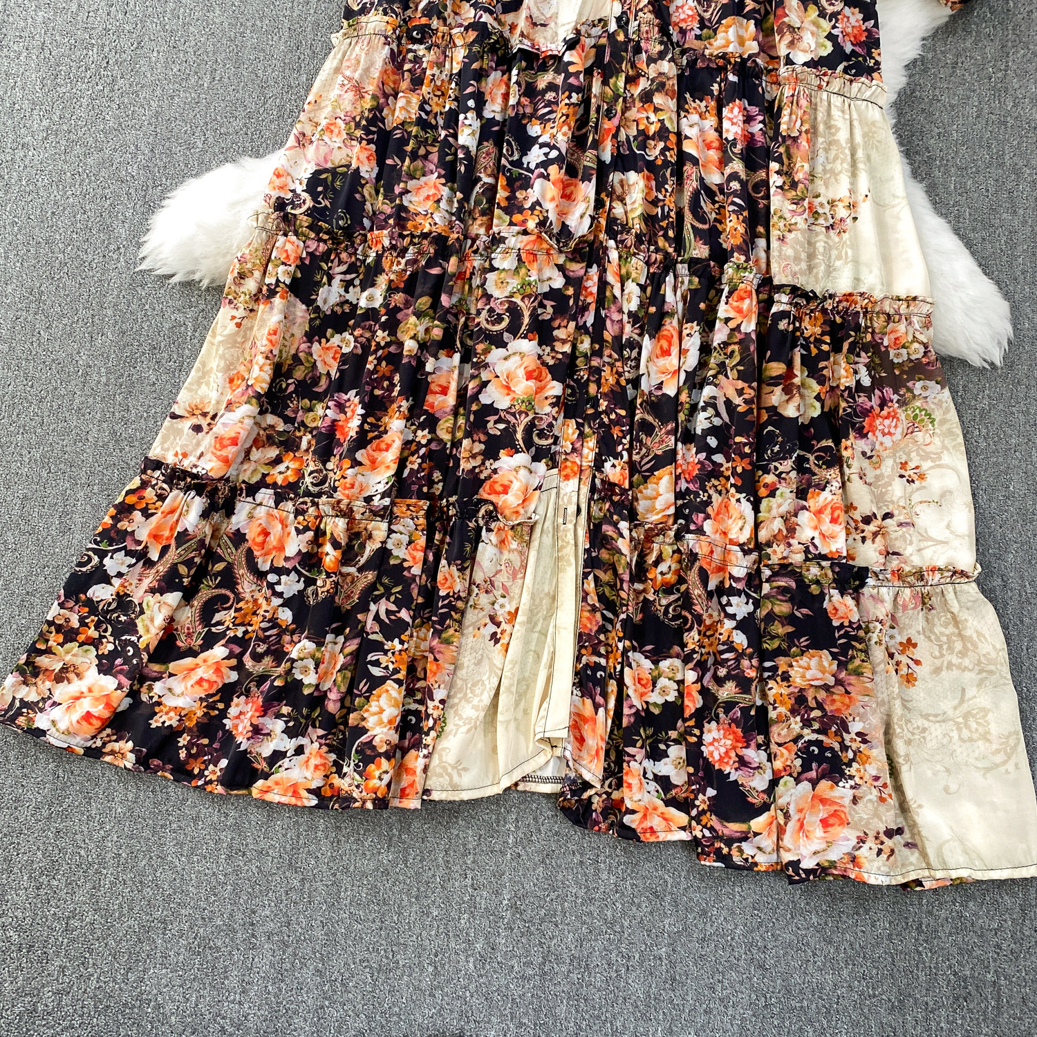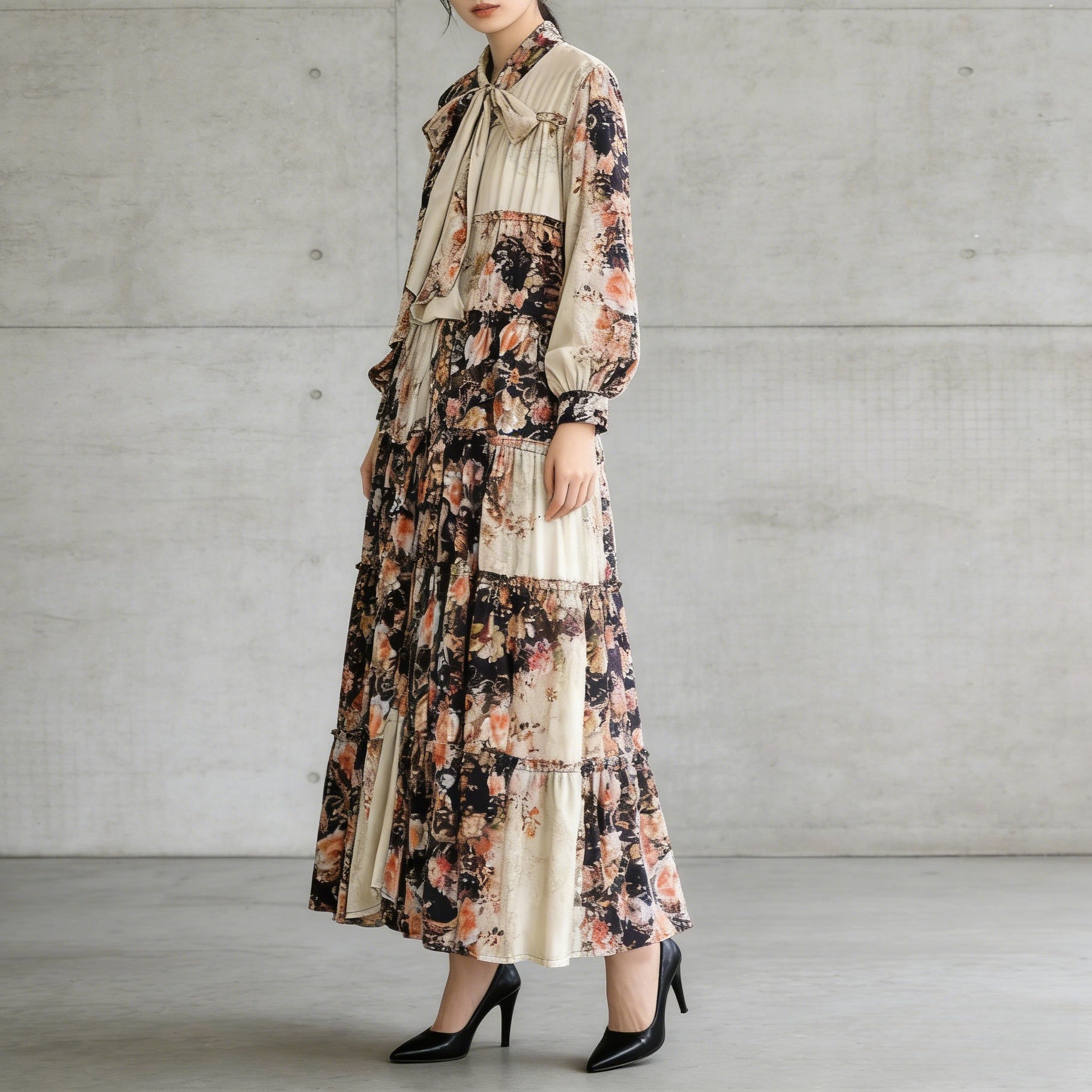【60%OFF⭐️早い者勝ち】【ワンピース】春 秋 冬 フリル縁 アシンメトリーパッチワーク 長袖 ワンピース 【SHシリーズ】