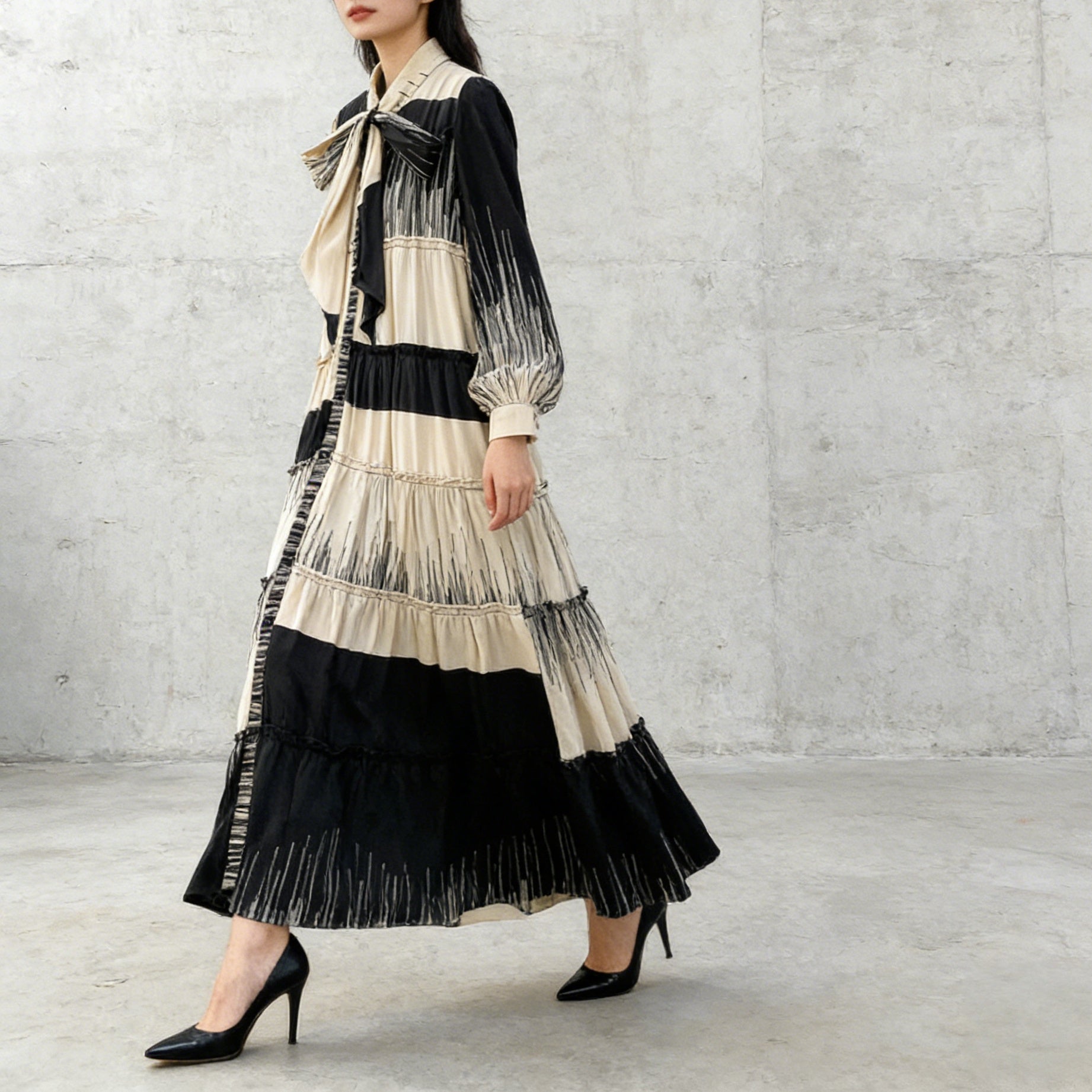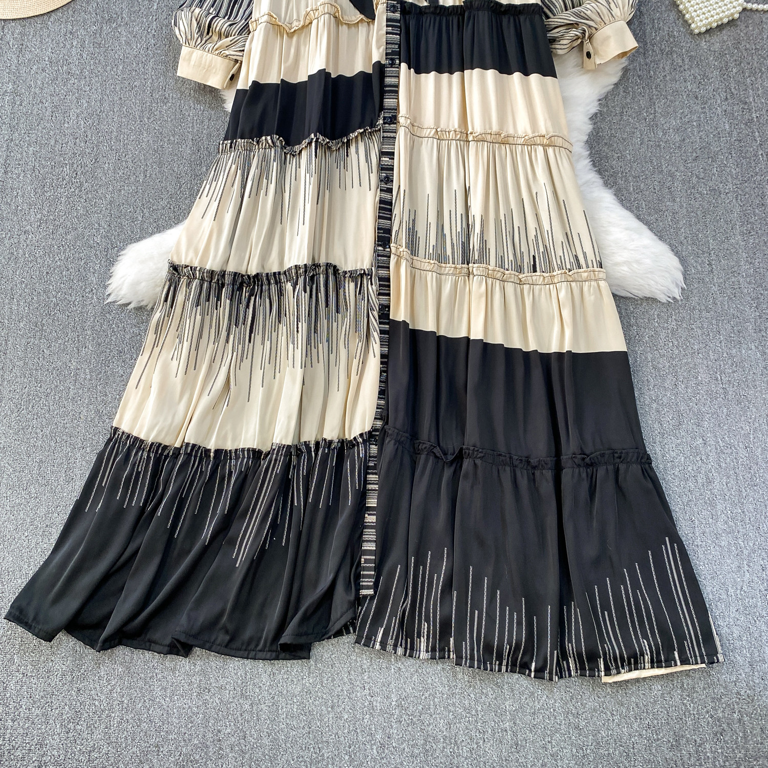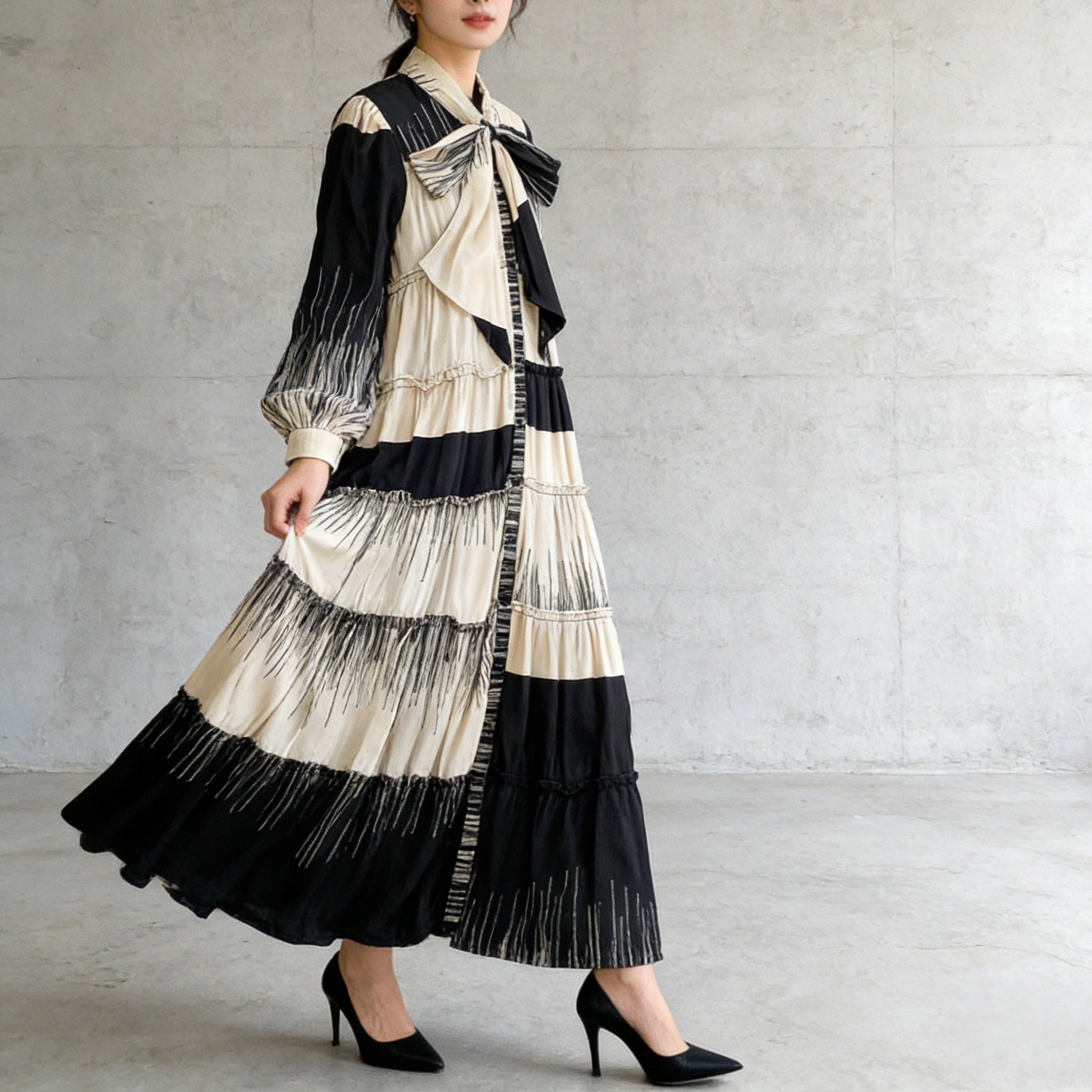 【60%OFF⭐️早い者勝ち】【ワンピース】春 秋 冬 フリル縁 アシンメトリーパッチワーク 長袖 ワンピース 【SHシリーズ】