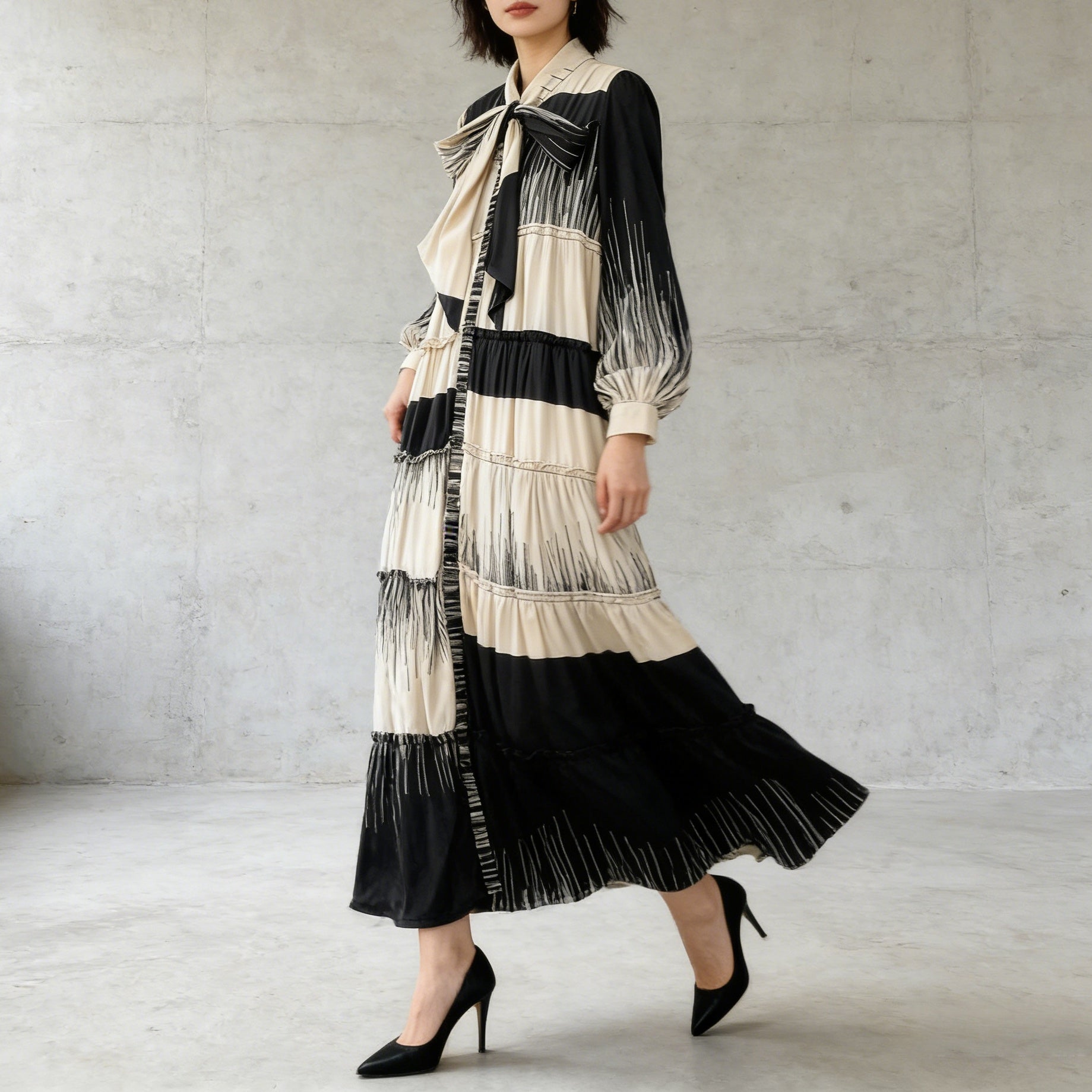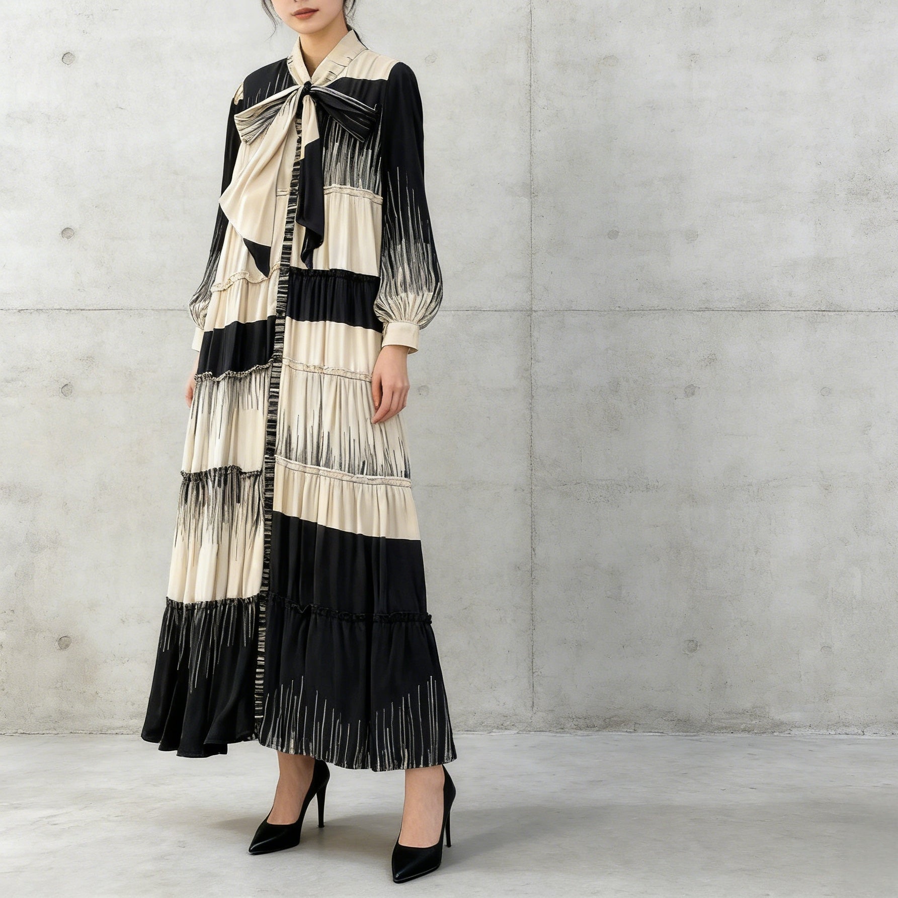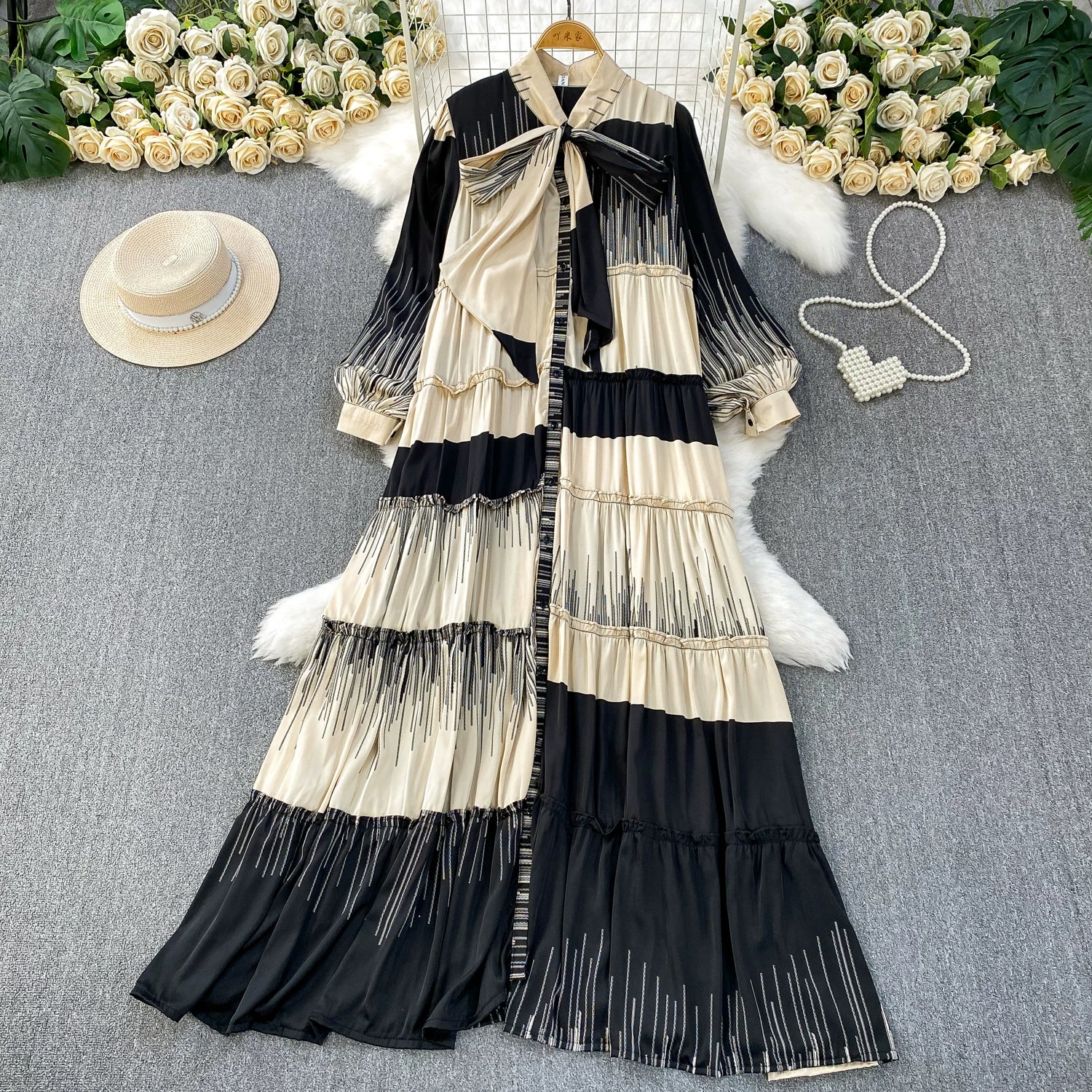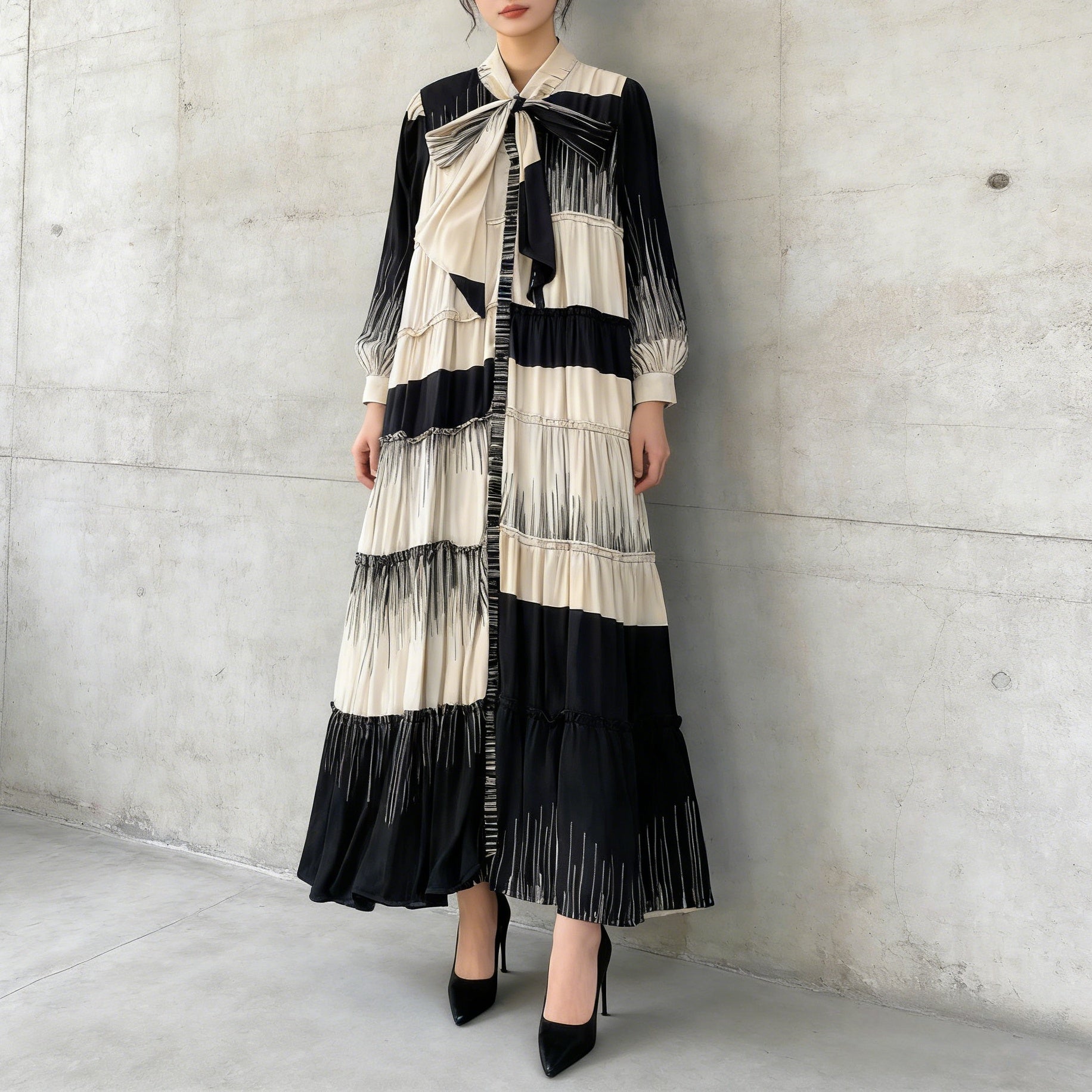 【60%OFF⭐️早い者勝ち】【ワンピース】春 秋 冬 フリル縁 アシンメトリーパッチワーク 長袖 ワンピース 【SHシリーズ】
