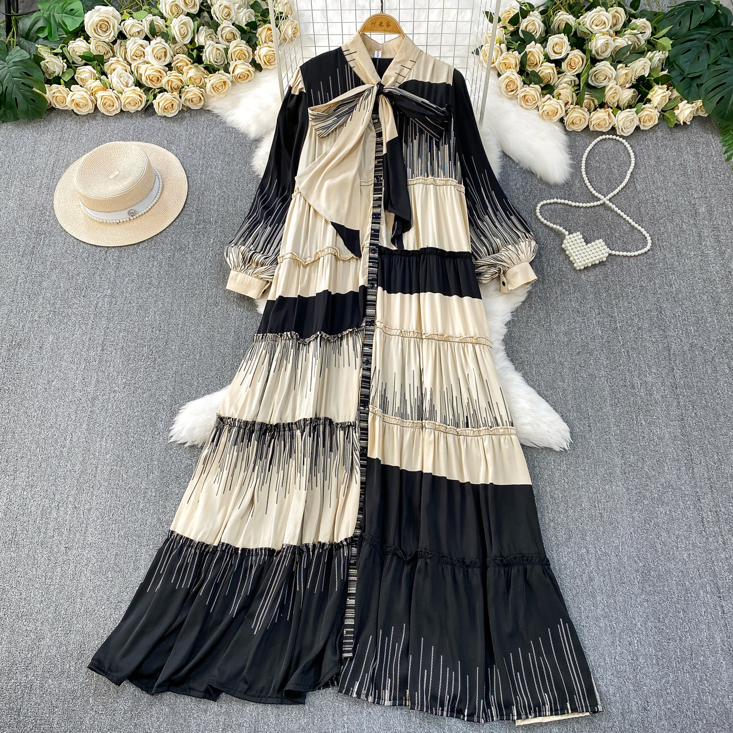 【60%OFF⭐️先行スタート!】【ワンピース】春 秋 冬 大きいサイズ プリント レトロ 長袖 ワンピース【SHシリーズ】