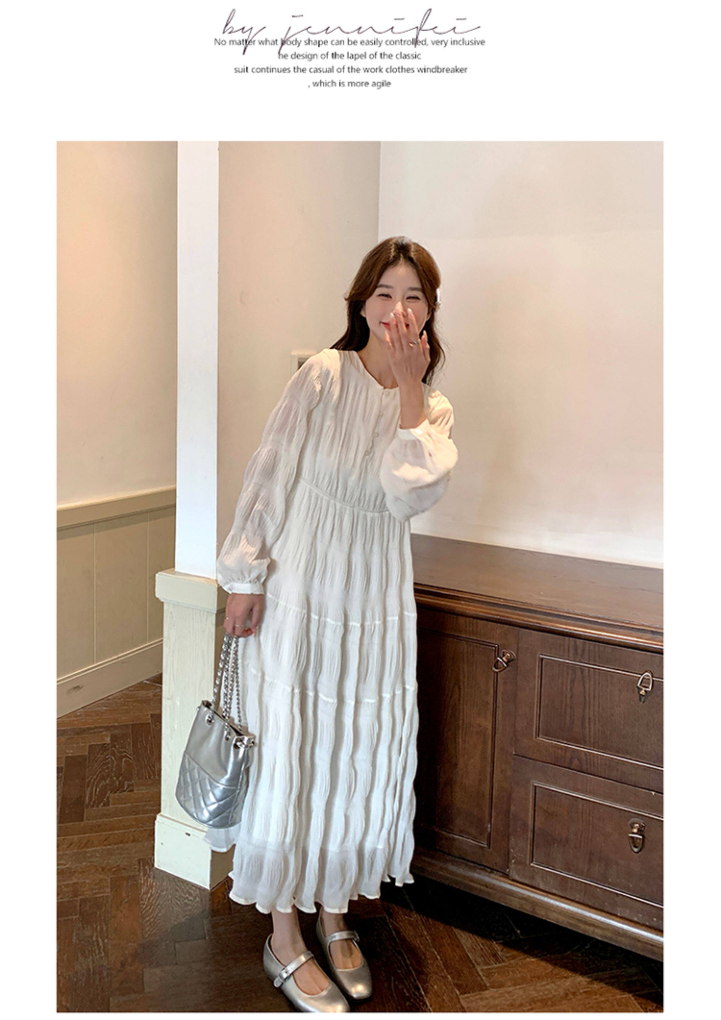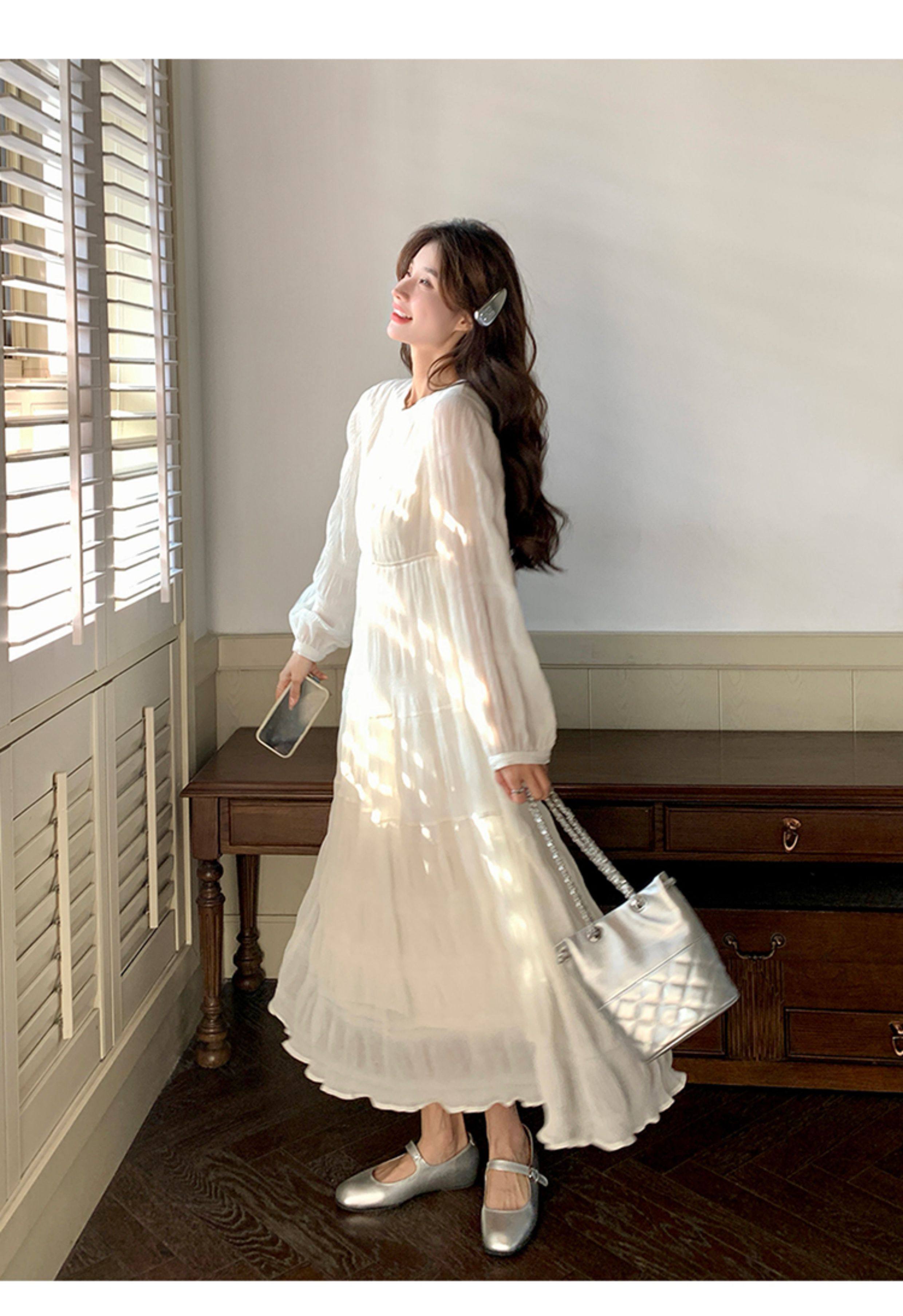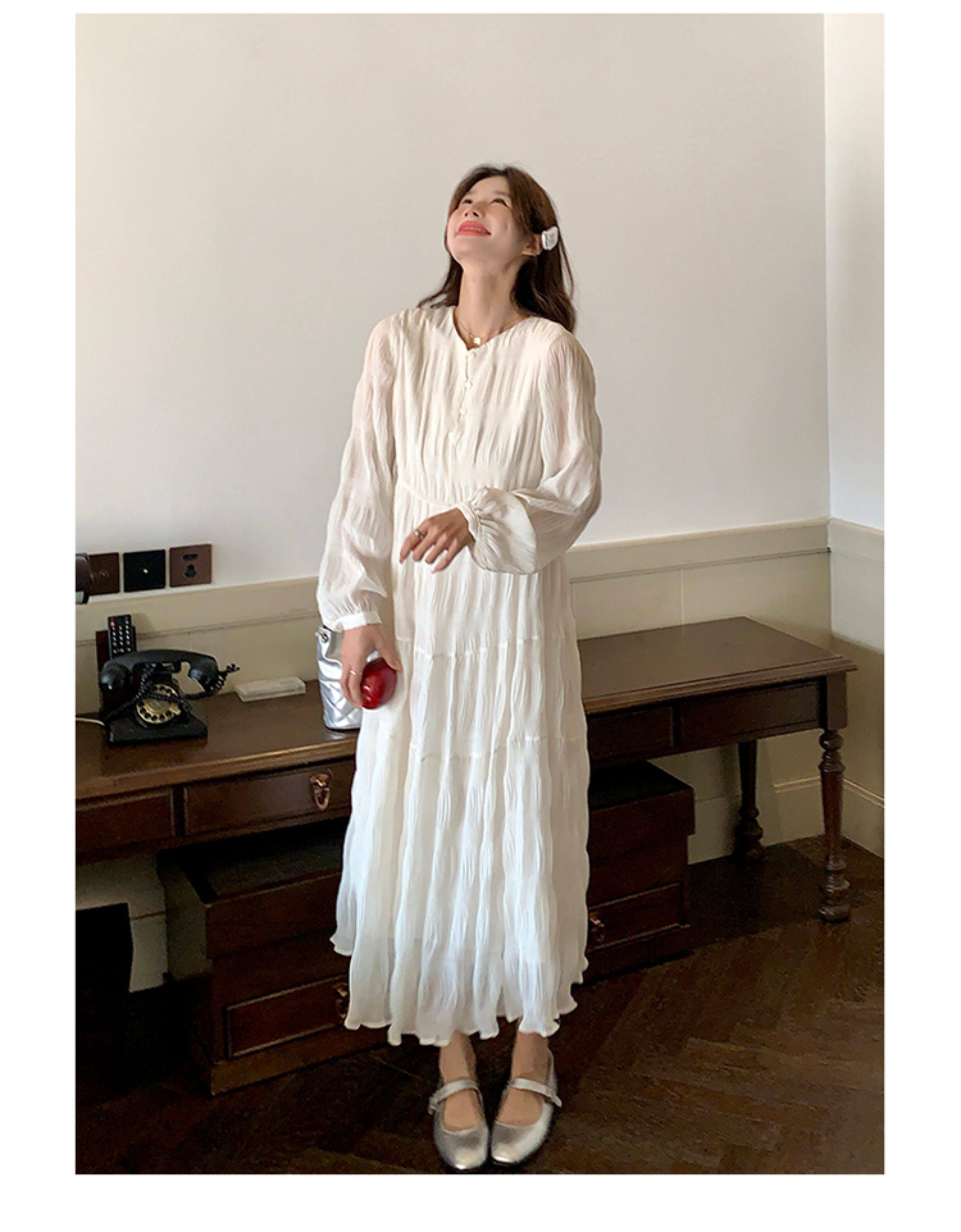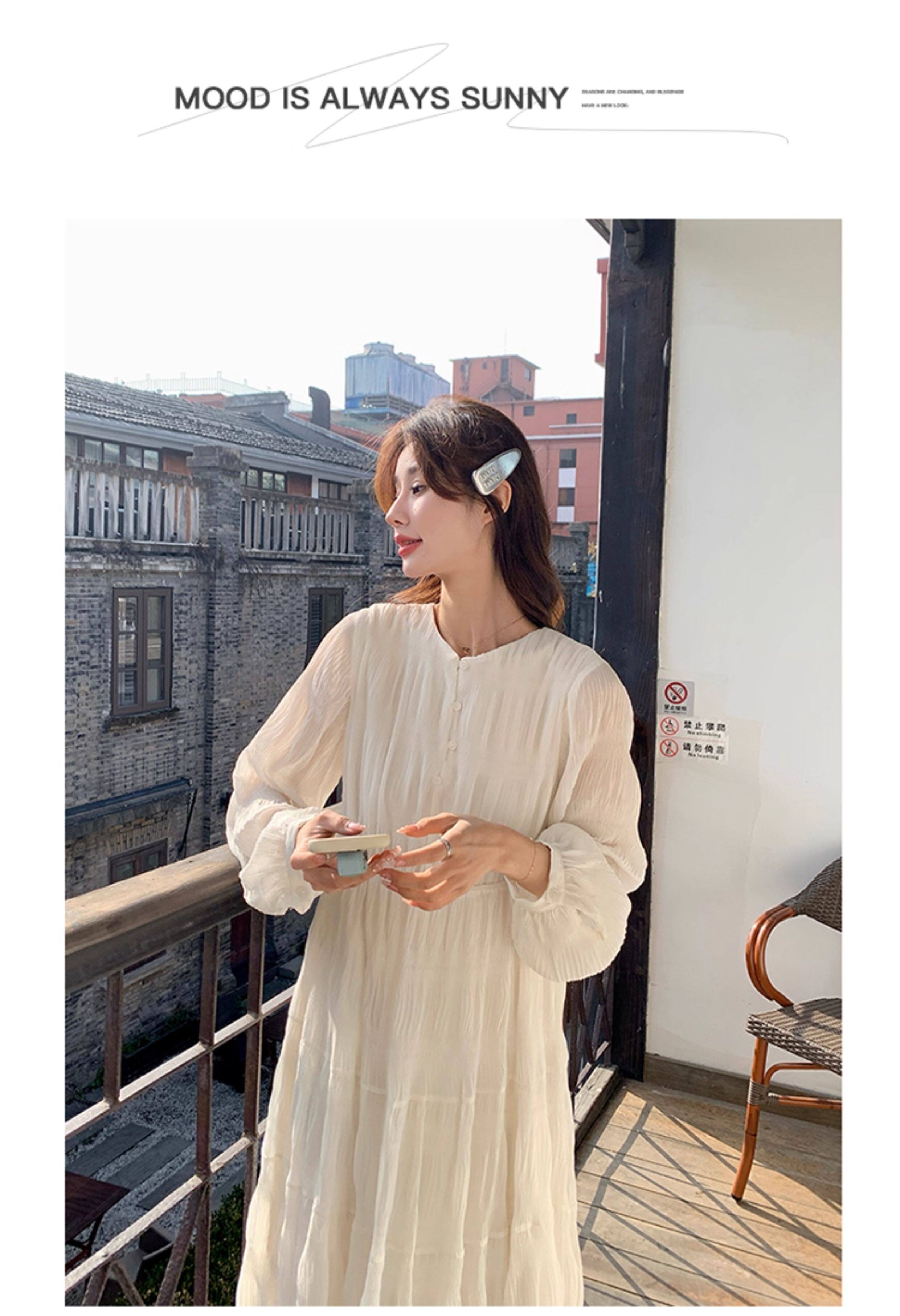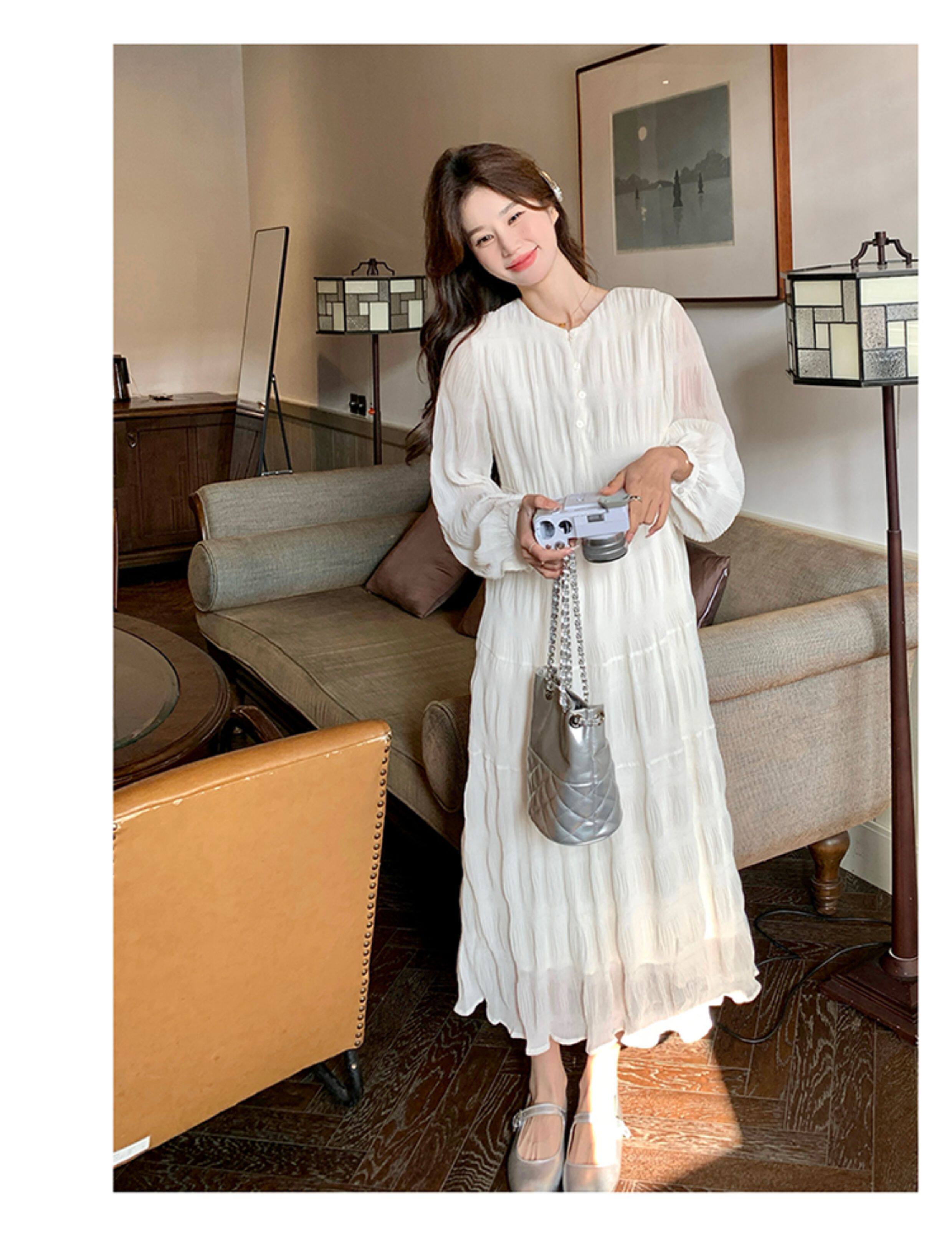 【60%OFF⭐️早い者勝ち】【ワンピース】春秋冬 日系 無地 シャーリング 切り替えし 長袖ワンピース
