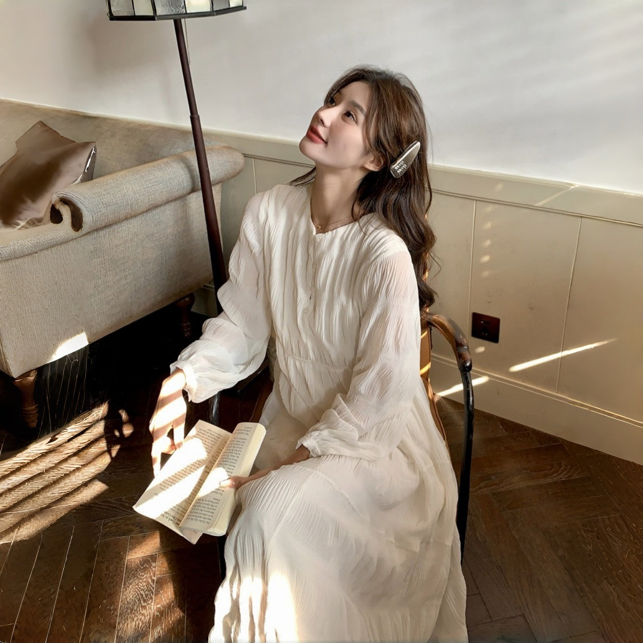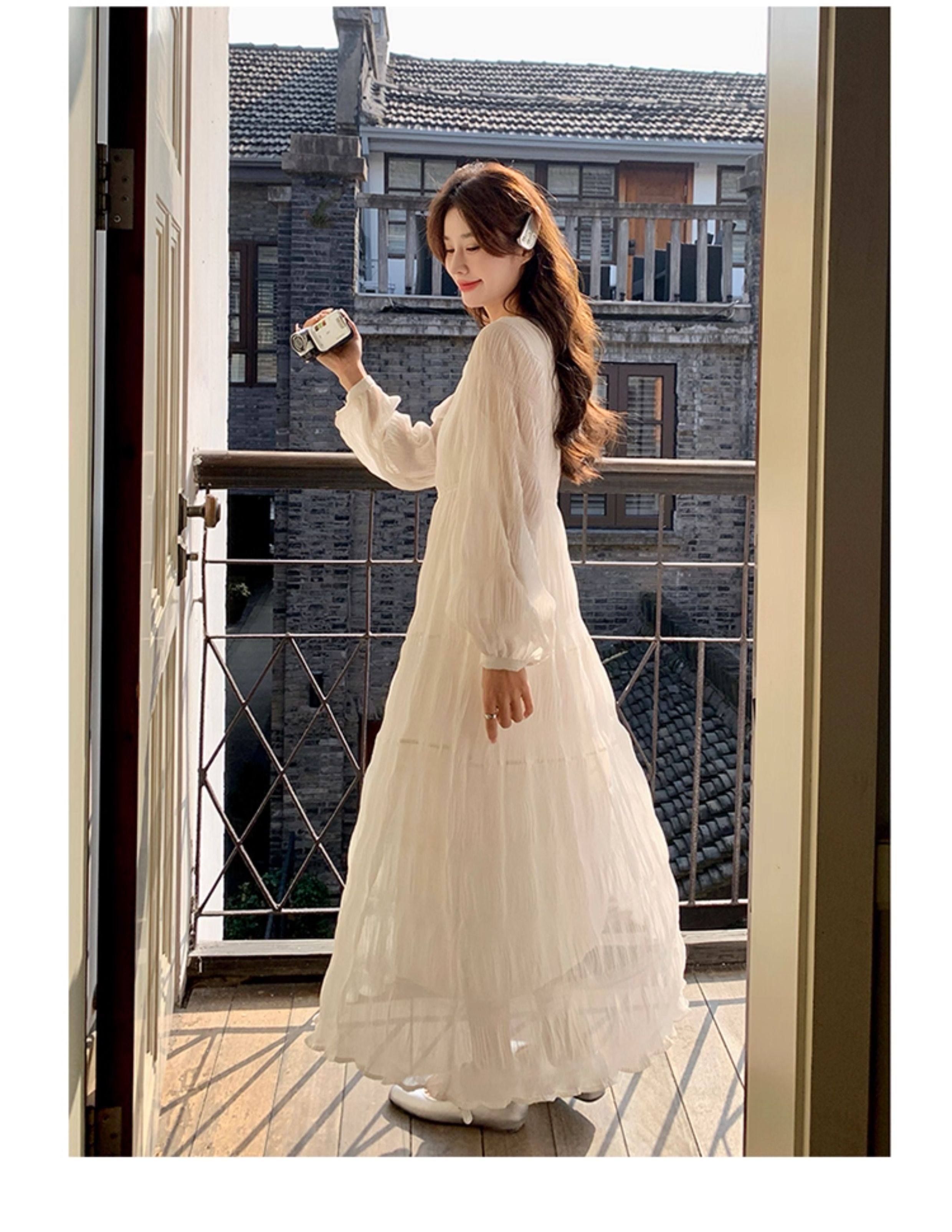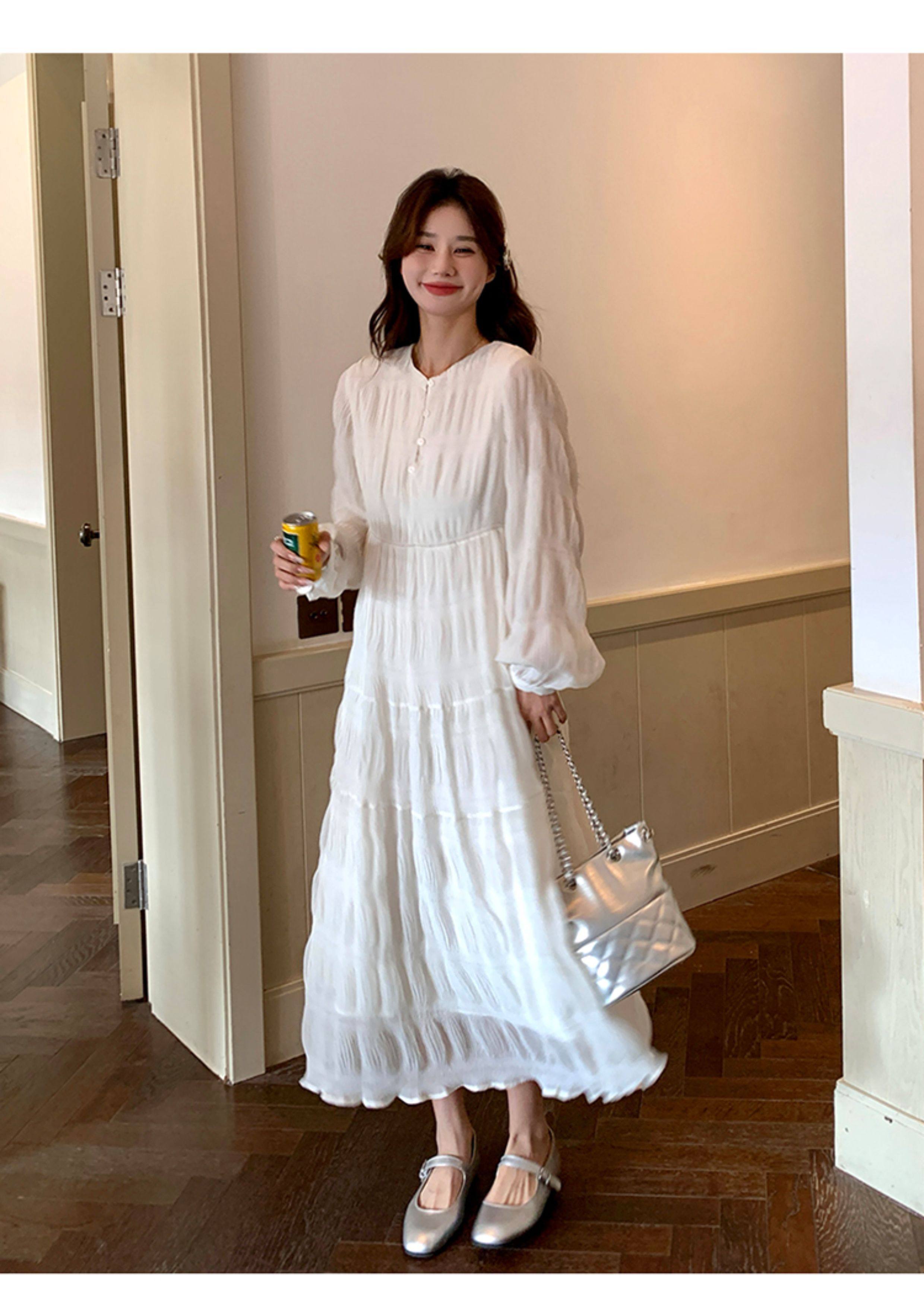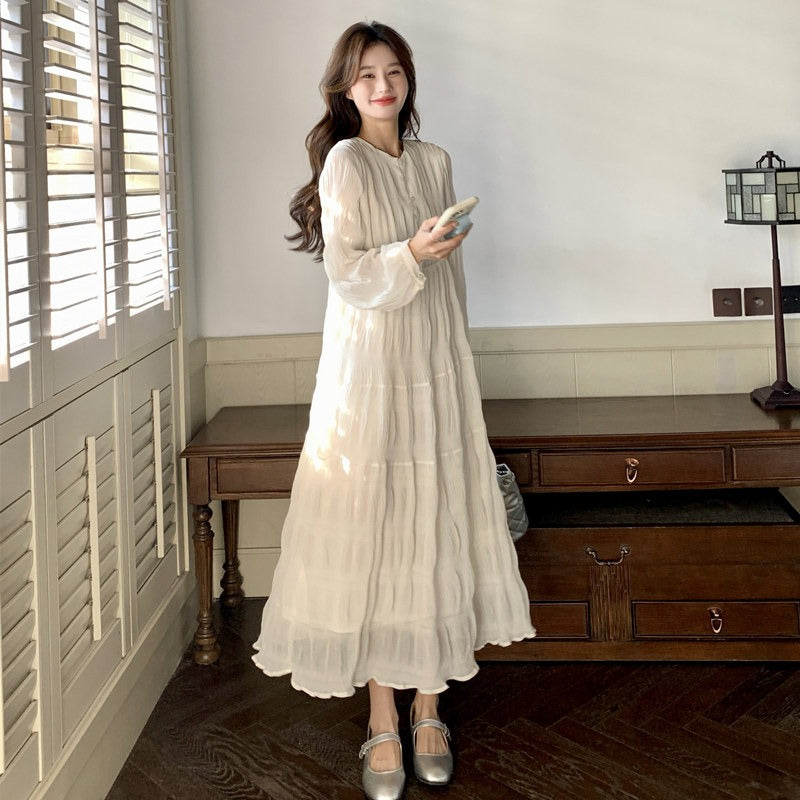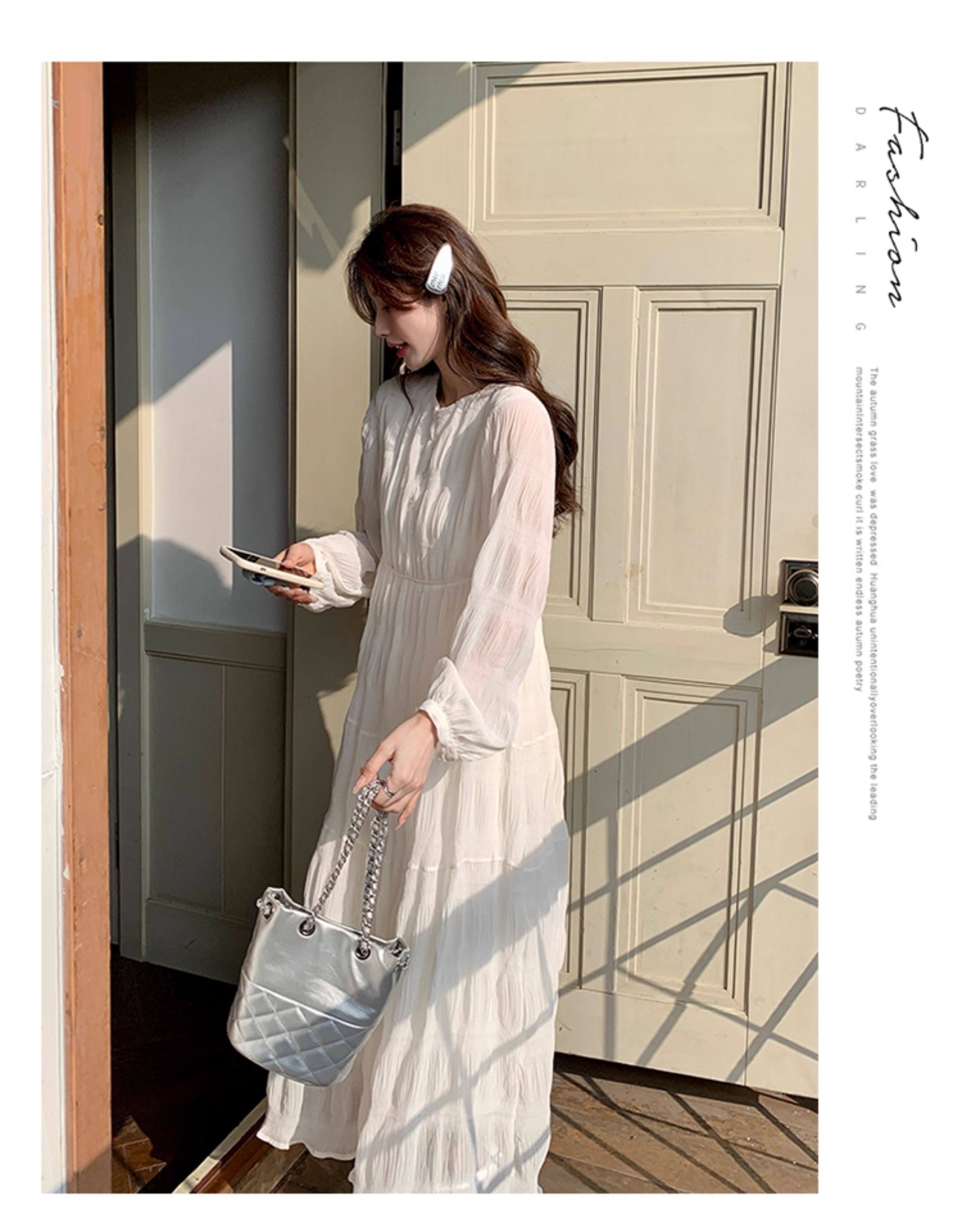 【60%OFF⭐️早い者勝ち】【ワンピース】春秋冬 日系 無地 シャーリング 切り替えし 長袖ワンピース