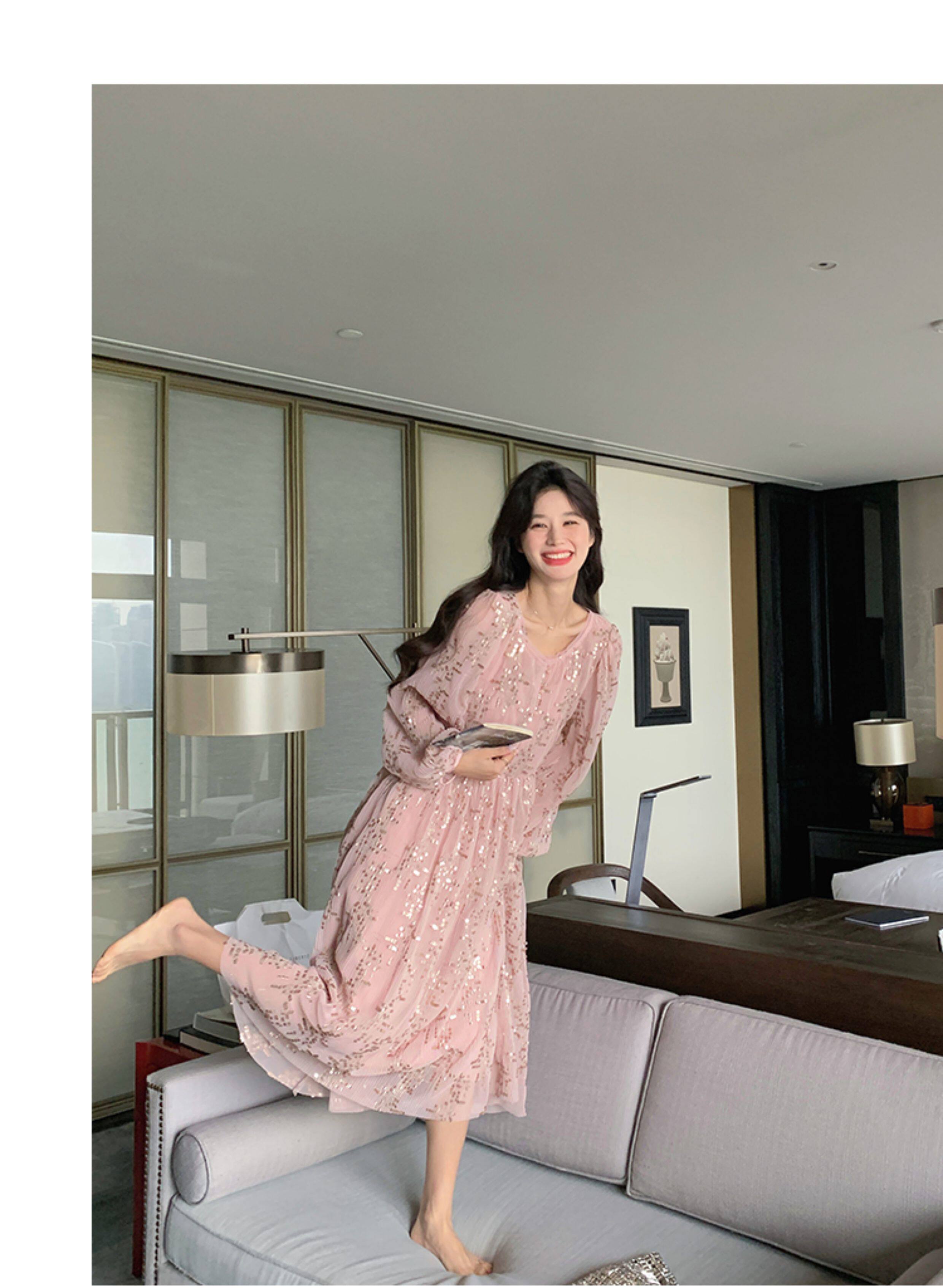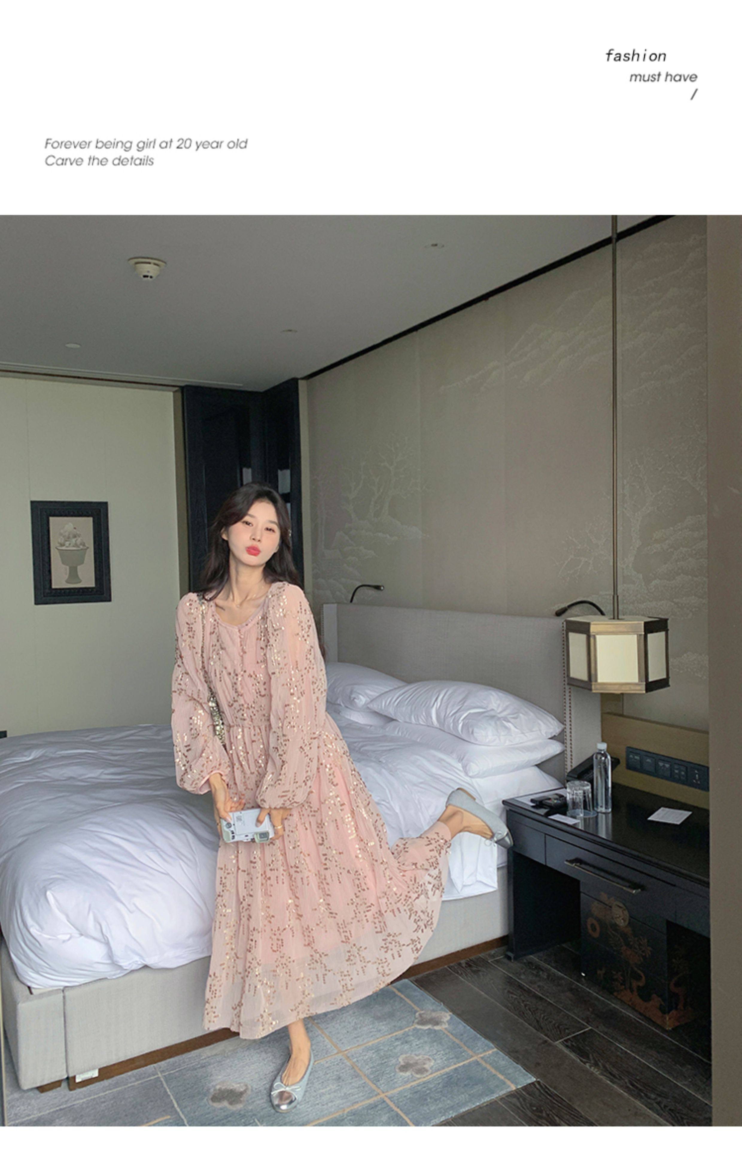 【ワンピース】🌸スタイルアップ♡ ベルベットワンピ 韓国風 長袖ワンピース 着痩せ効果 【JZシリーズ】