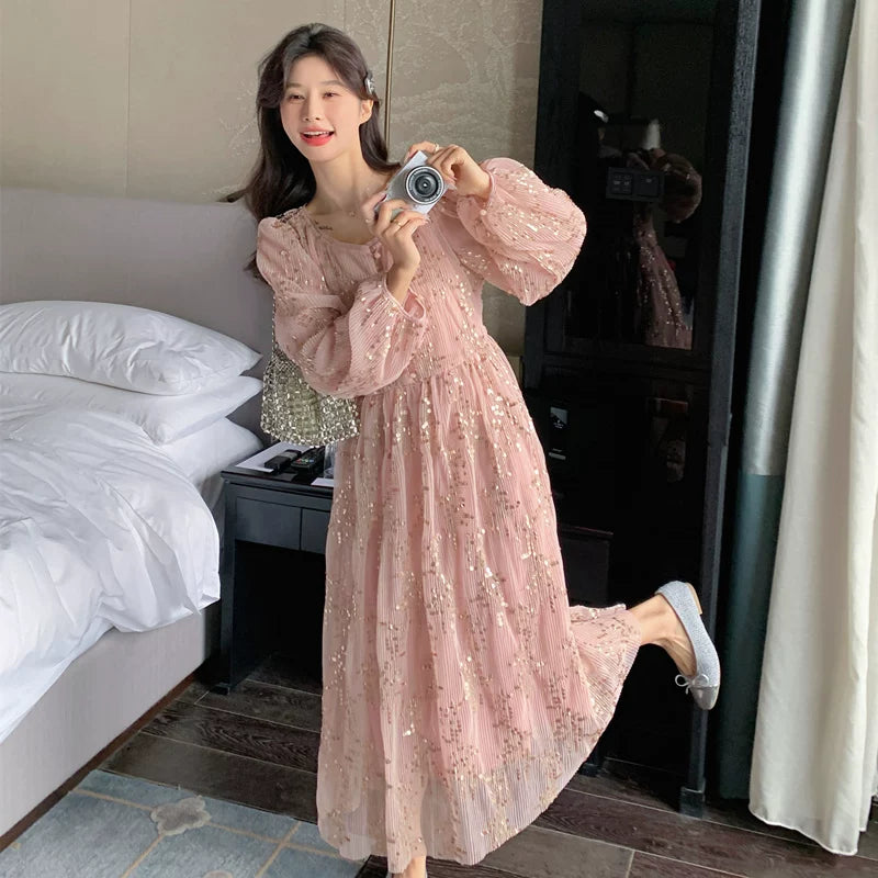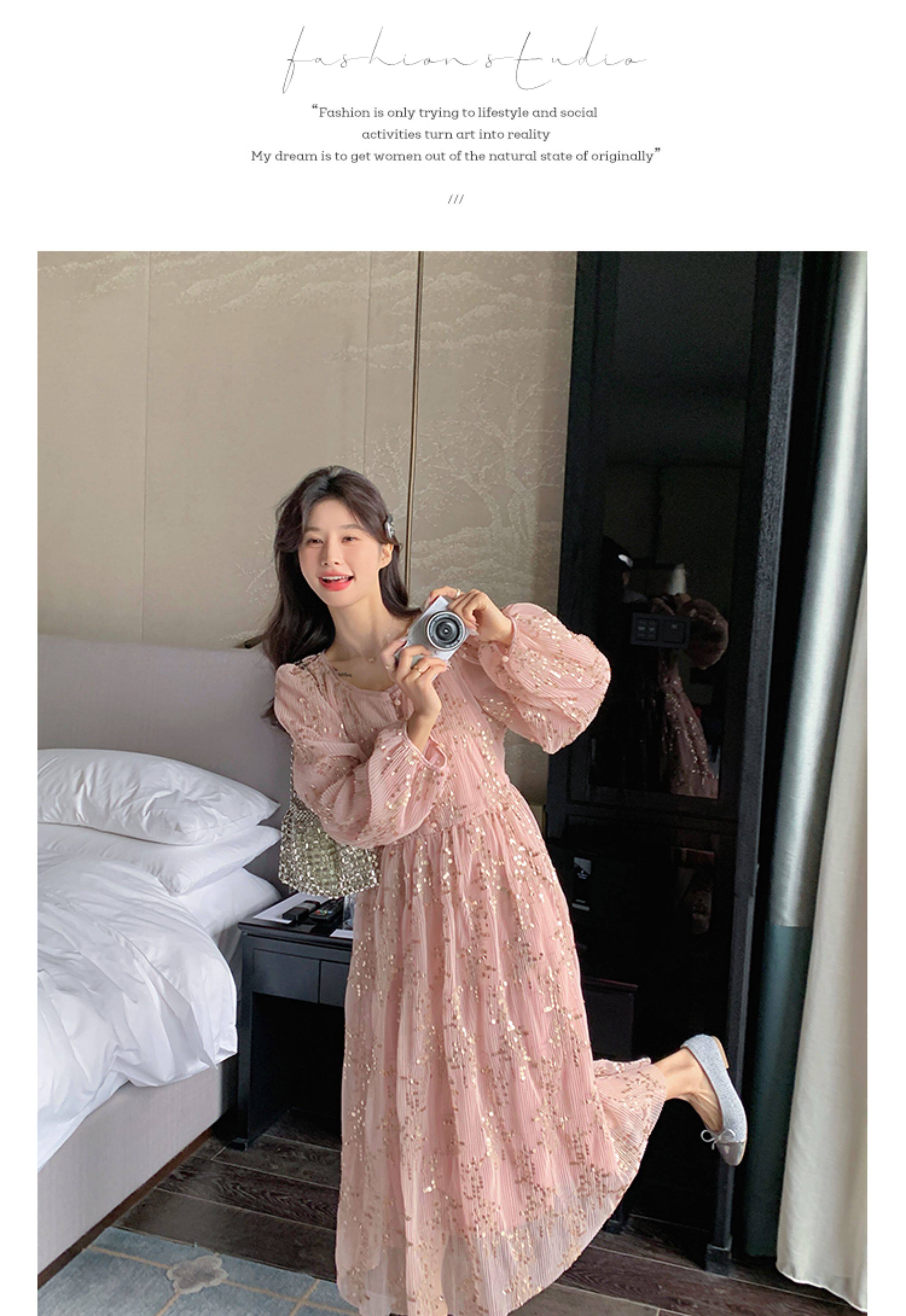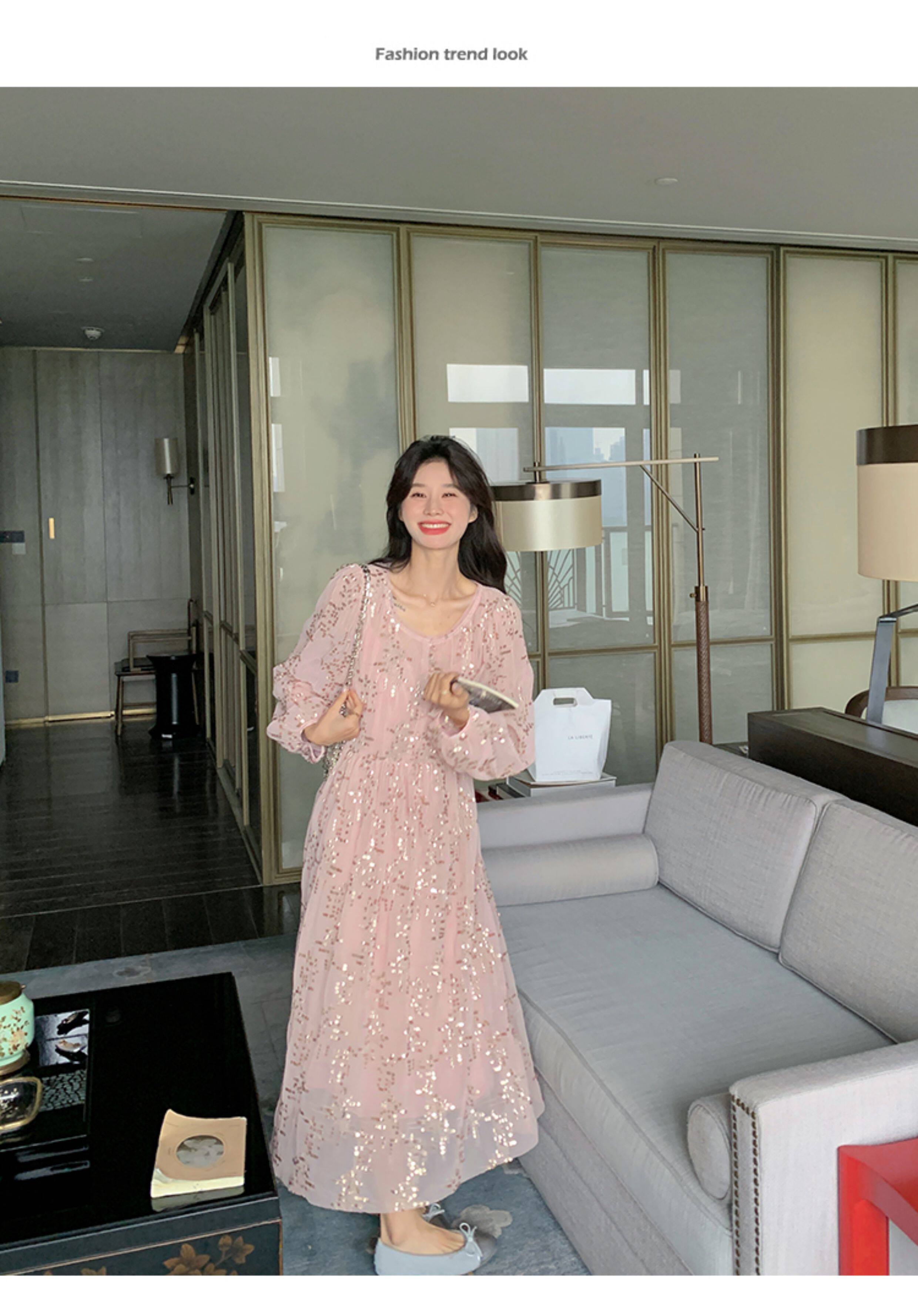 2/5~2/8⭐️期間限定 60%OFF !【ワンピース】春秋ラウンドネック 長袖 ニット パッチワーク ロング 長袖ワンピース