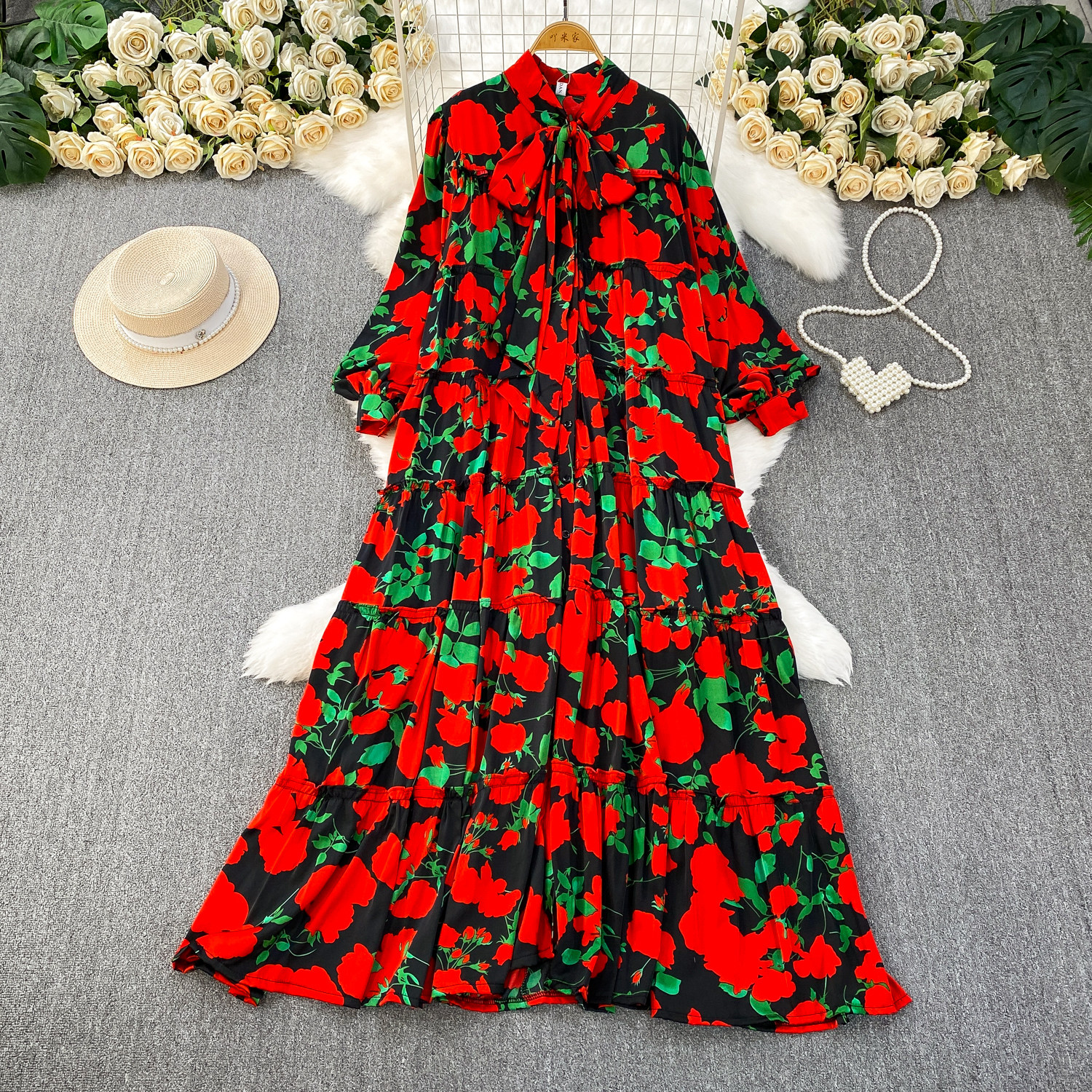 【売り切り|期間限定】残り11点⭐️67%OFF🔥大人気商品🔥【ワンピース】春秋冬 花柄 大きいサイズ ゆるリラックス 長袖 ワンピース【SHシリーズ】