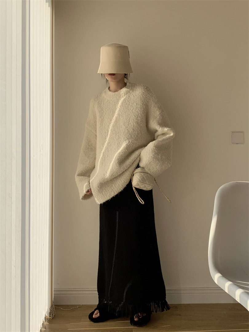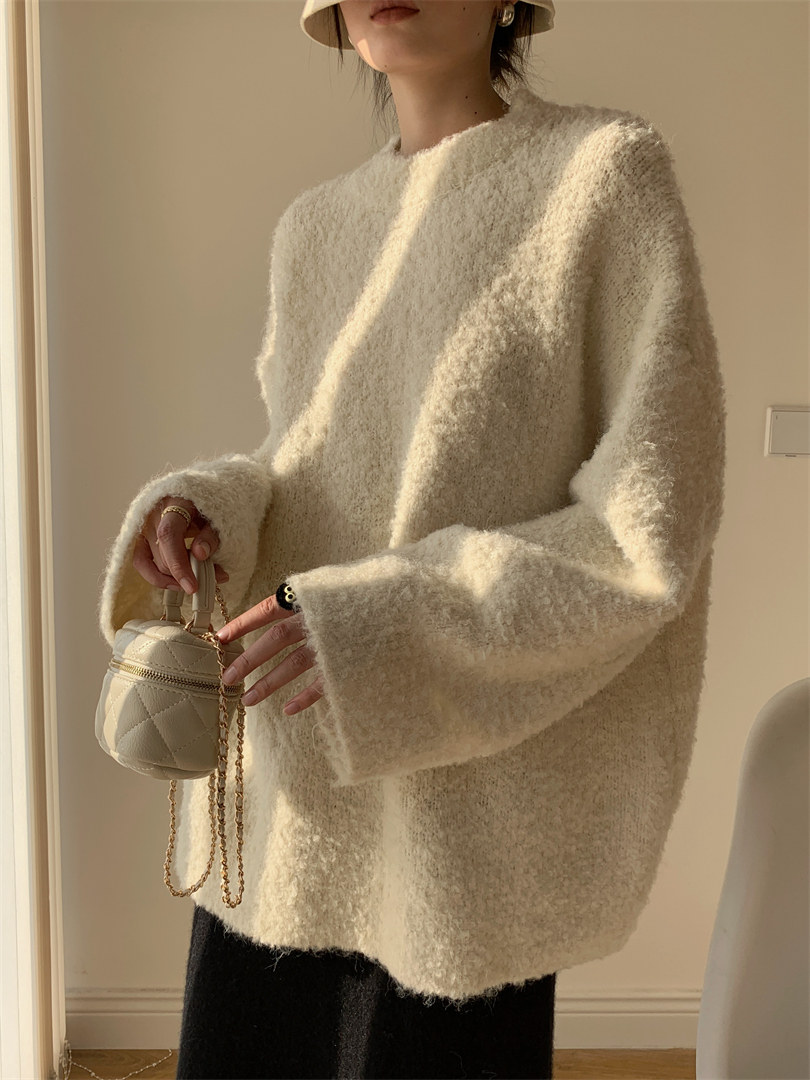 【トップス】春 韓国風 カジュアル ゆったり 優しい雰囲気 中丈 ヒップカバー ニット ラフスタイル 厚手 レディース【JZシリーズ】