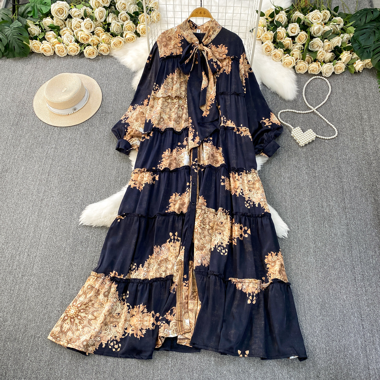 【売り切り|期間限定】残り11点⭐️67%OFF🔥大人気商品🔥【ワンピース】春秋冬 花柄 大きいサイズ ゆるリラックス 長袖 ワンピース【SHシリーズ】