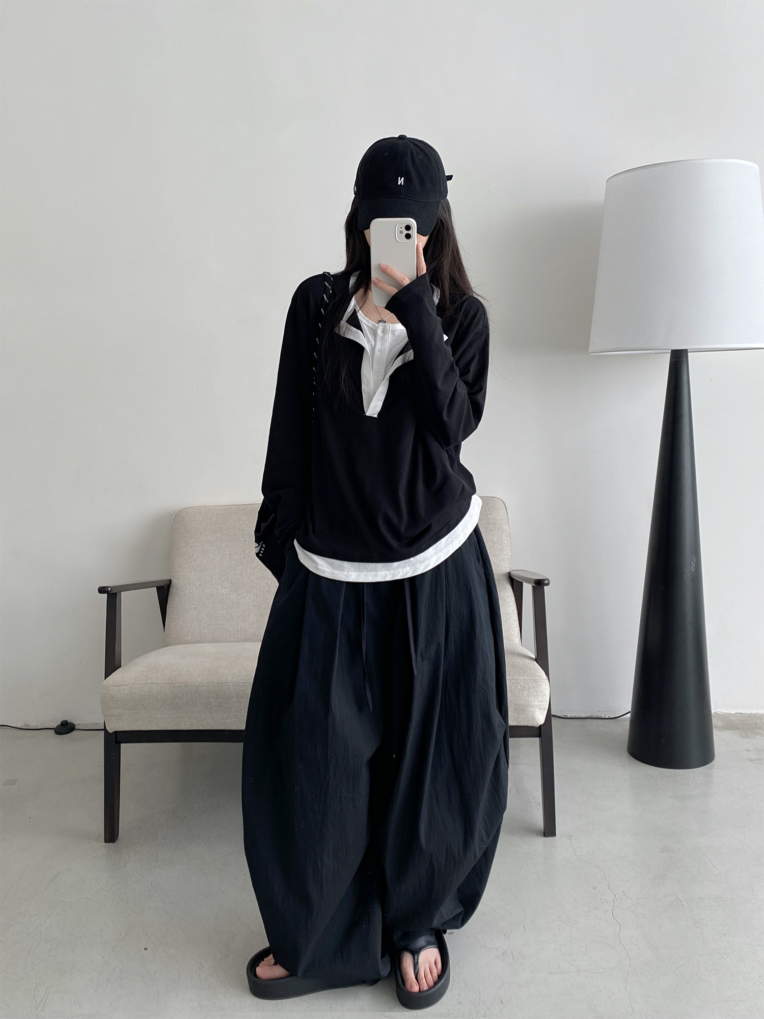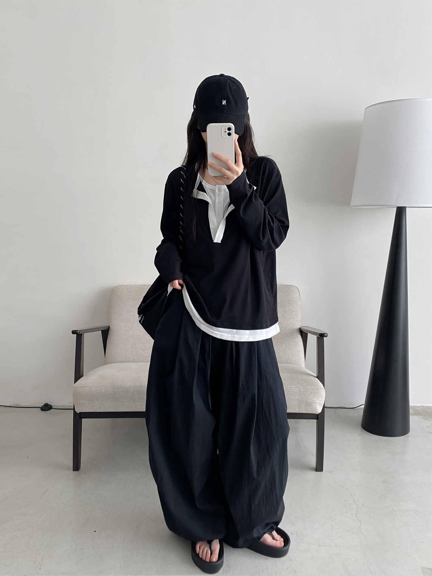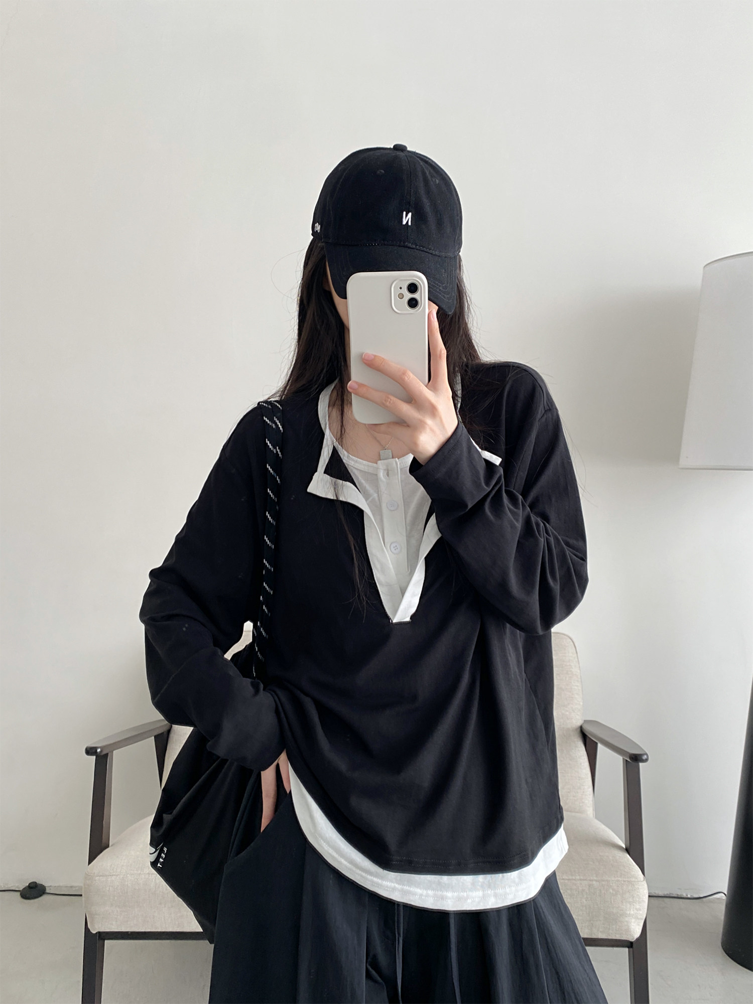 【商品名】【トップス】フェイク2WAY 半開きカラー UVカット 長袖Tシャツ レディース 韓国デザイン ゆったり【FCシリーズ】
