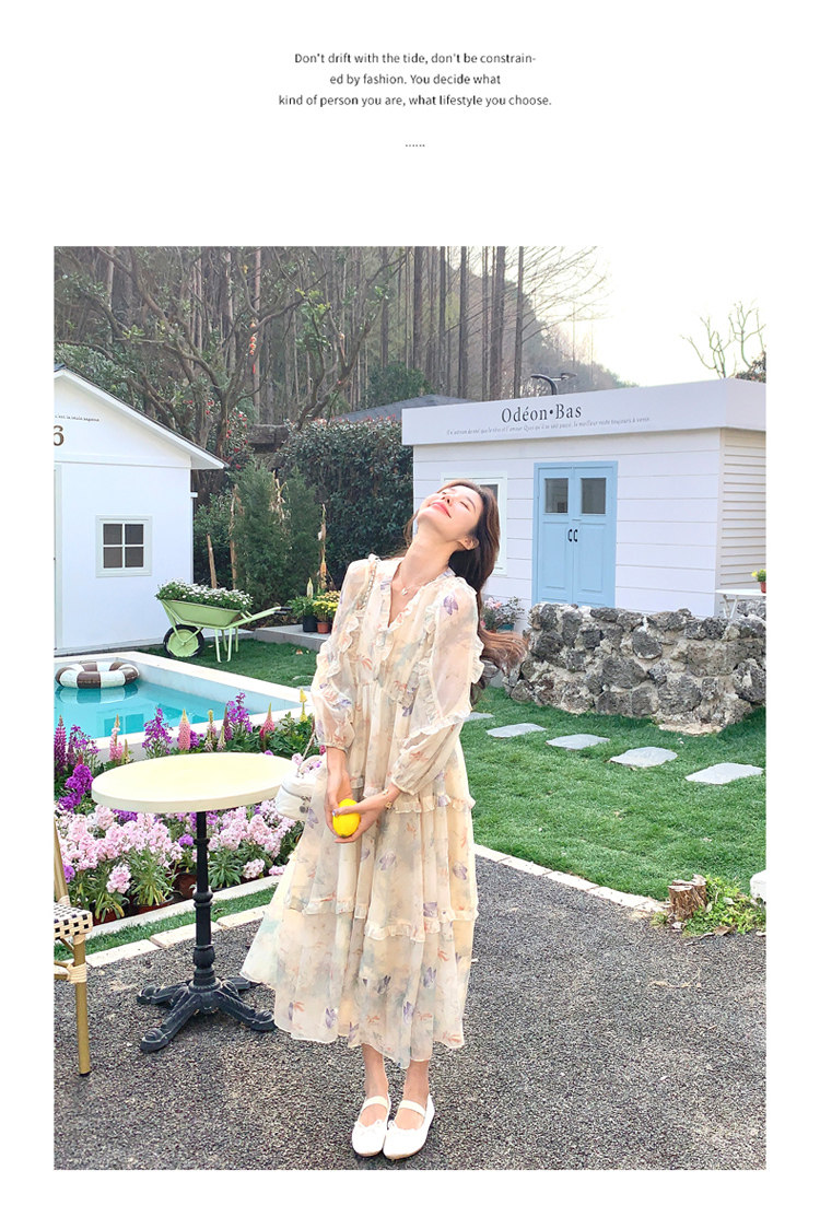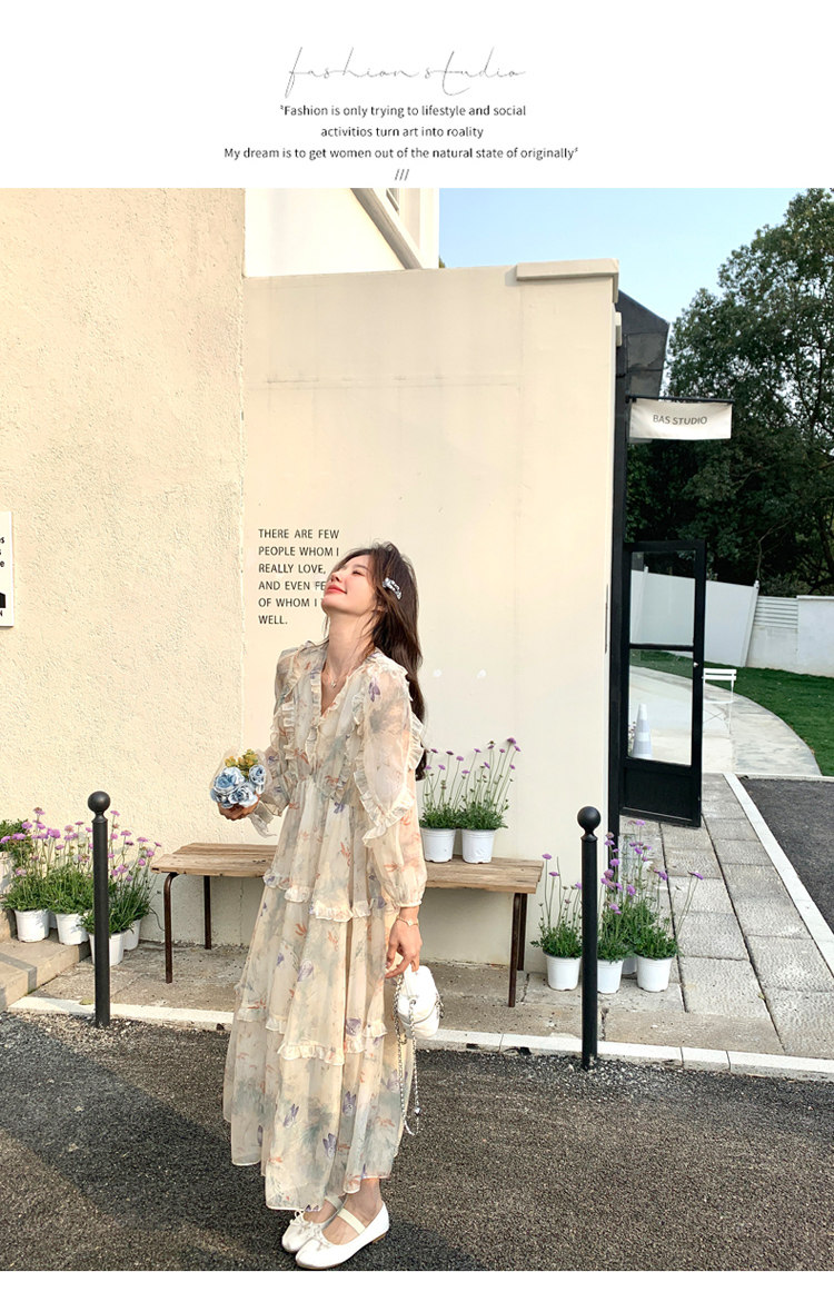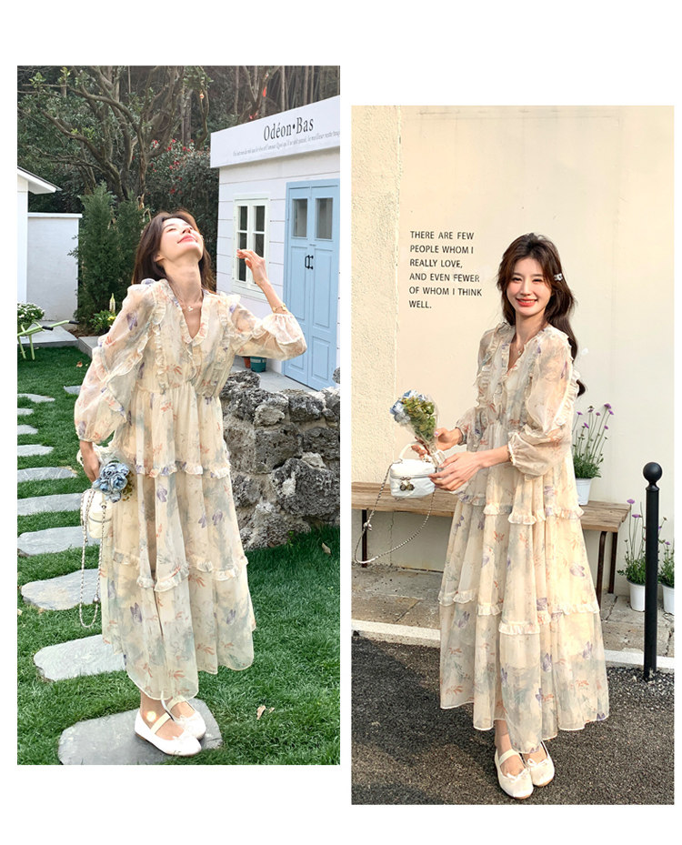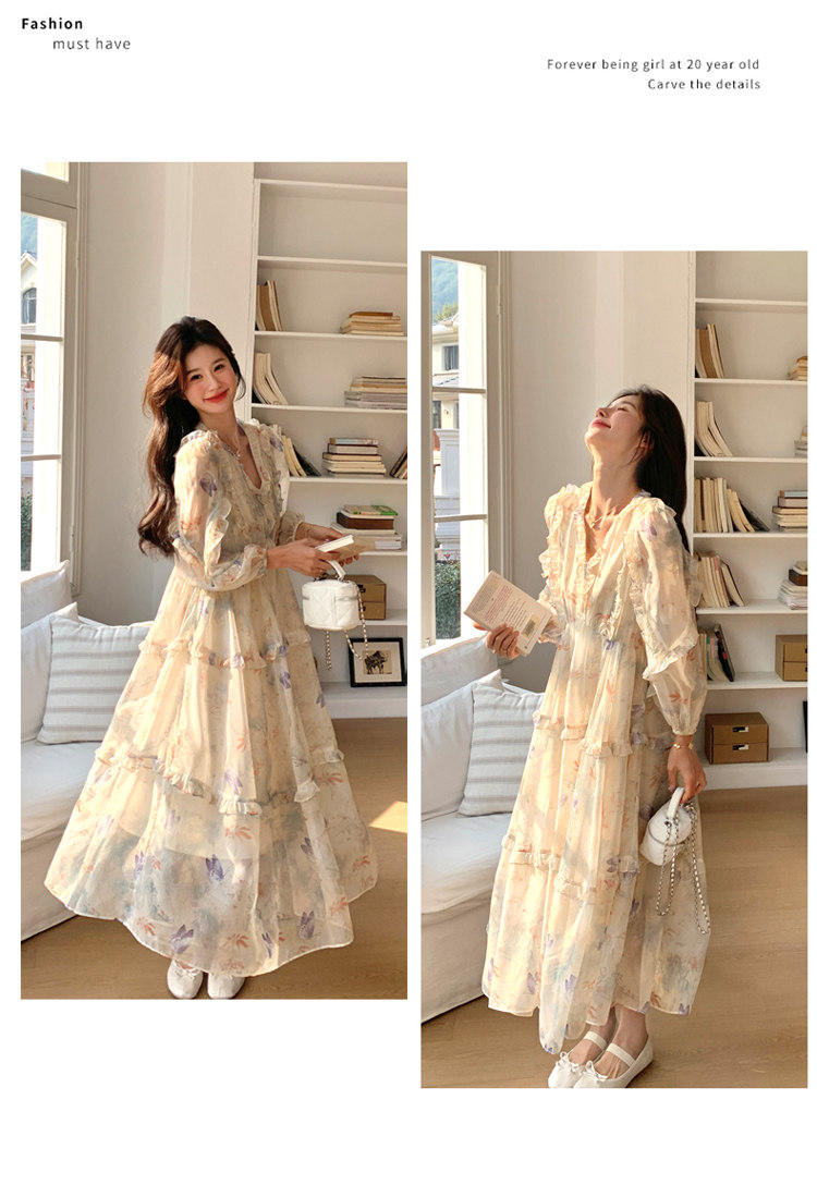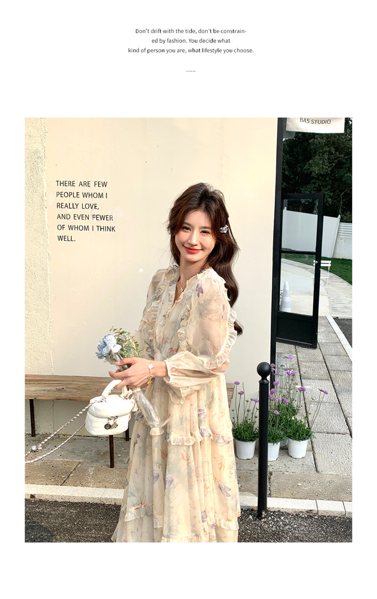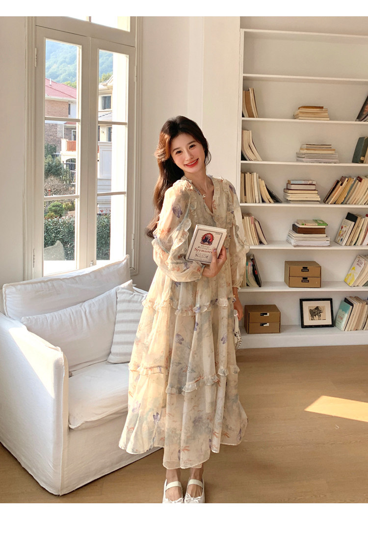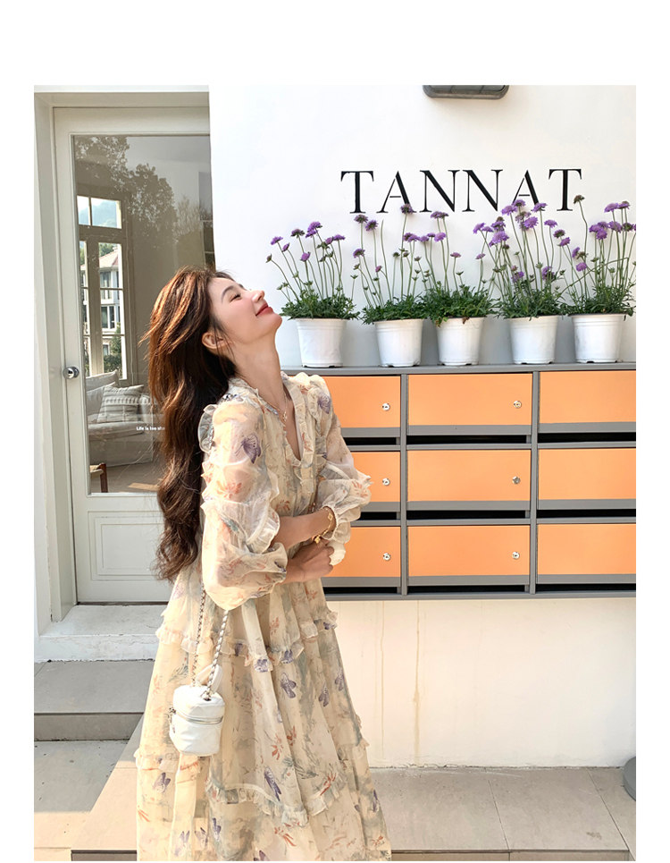 【商品名】【ワンピース】高級感 気質よい Vネック 合わせやすい 長袖ワンピース
