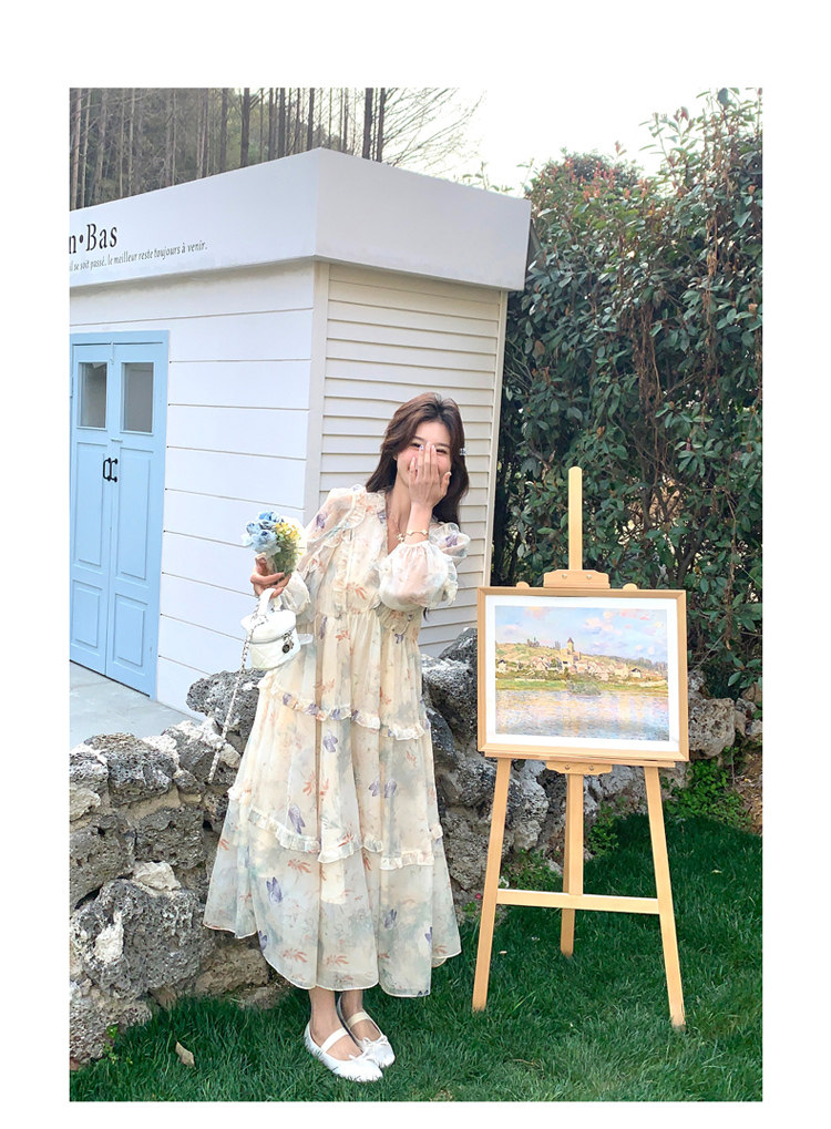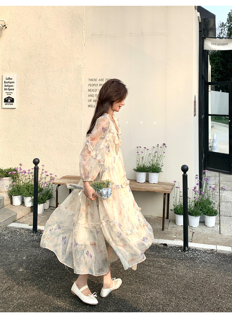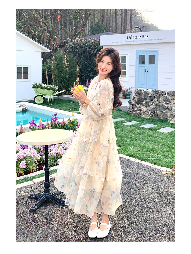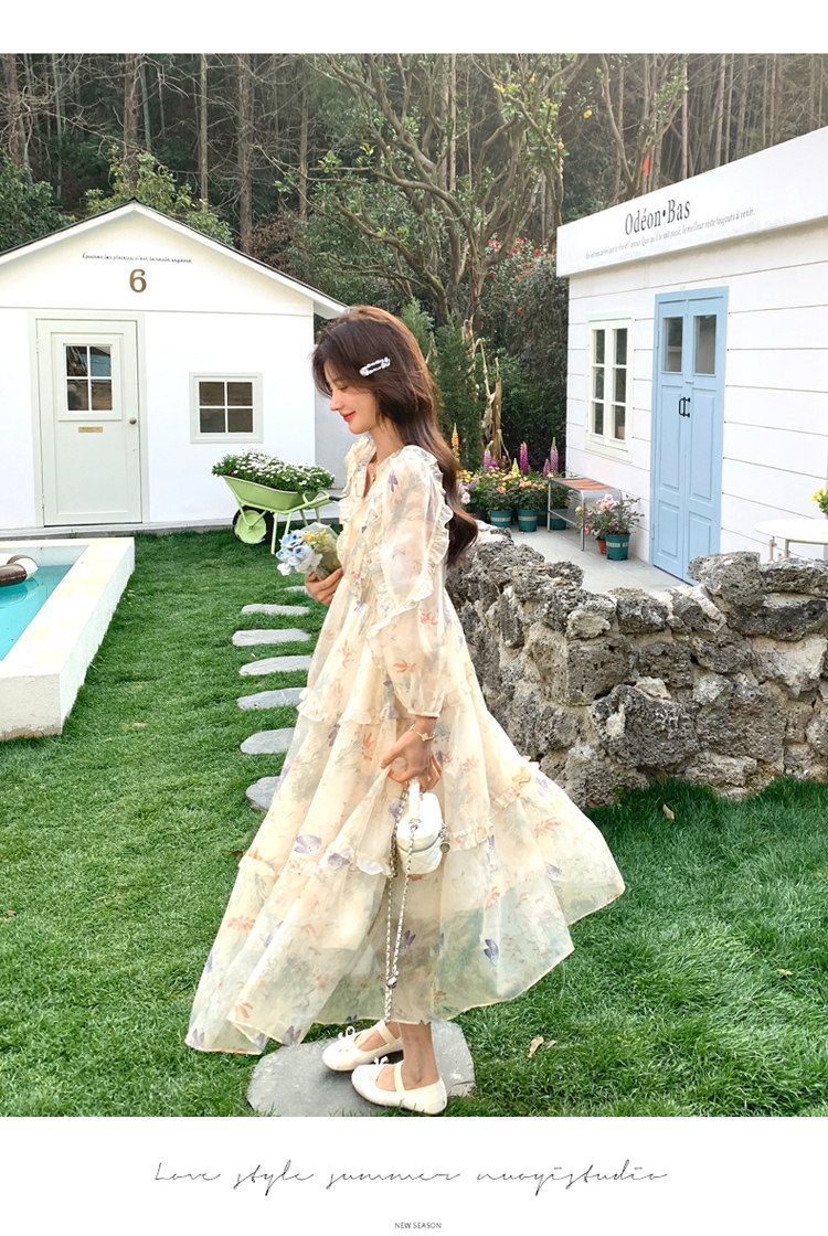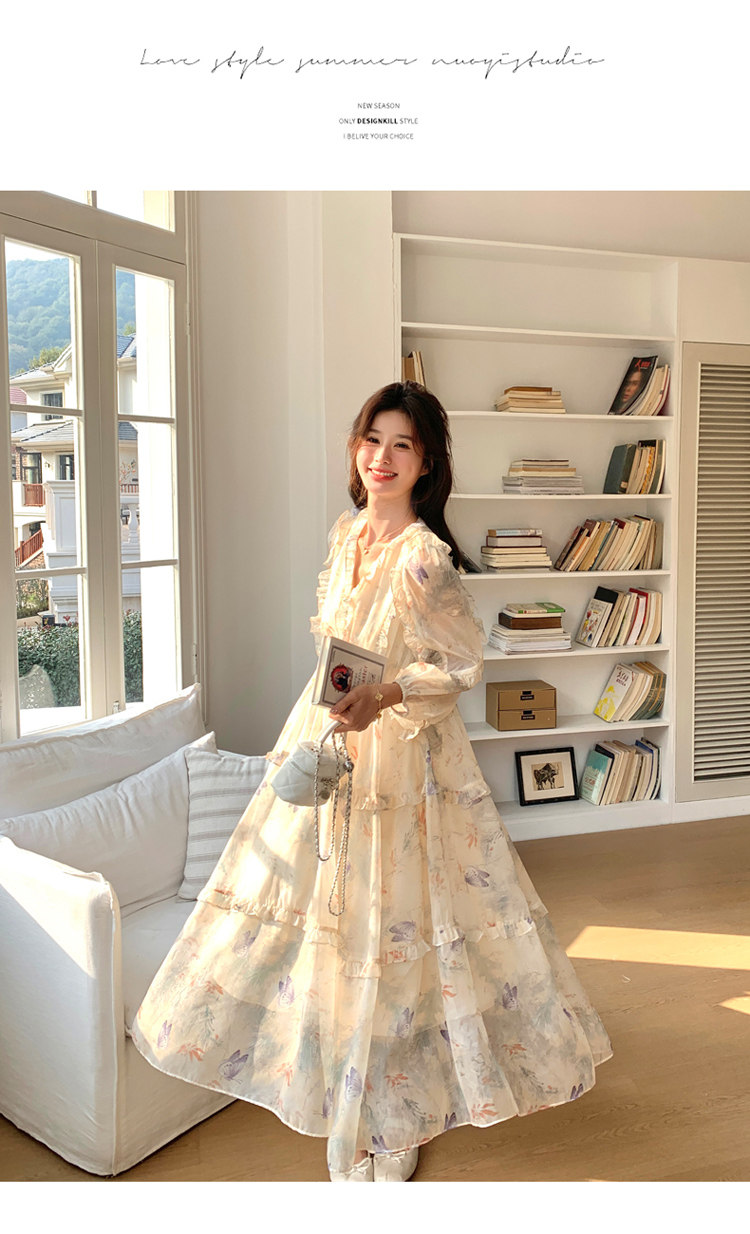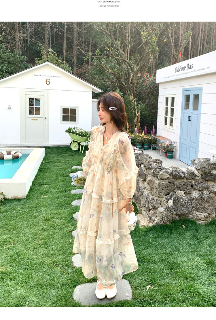 【商品名】【ワンピース】高級感 気質よい Vネック 合わせやすい 長袖ワンピース