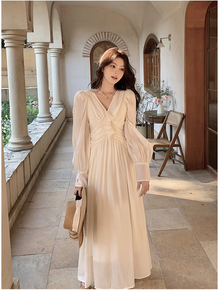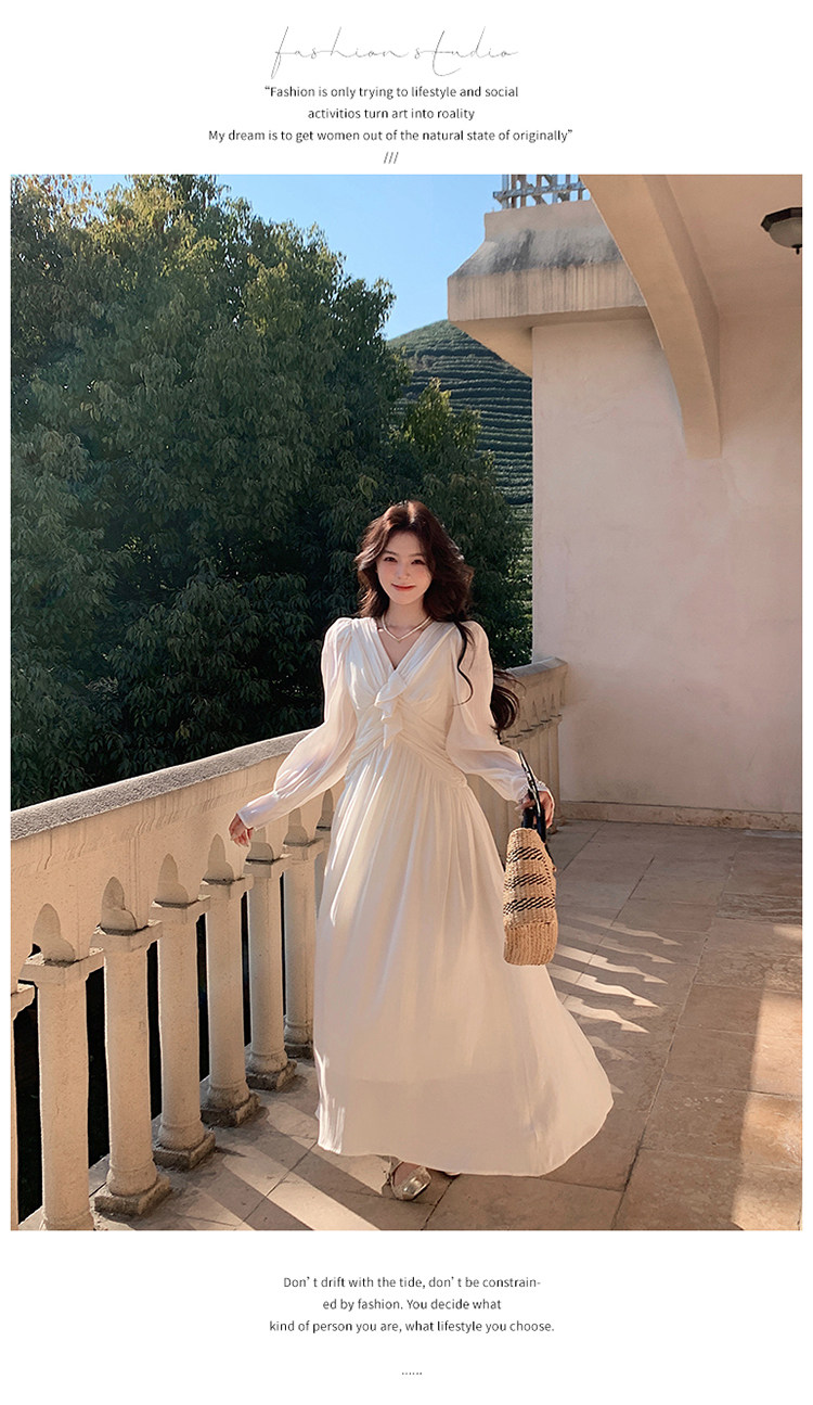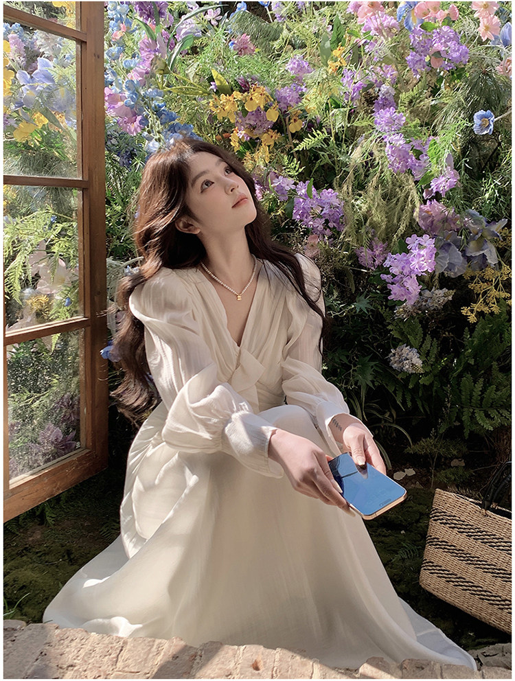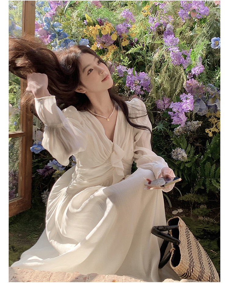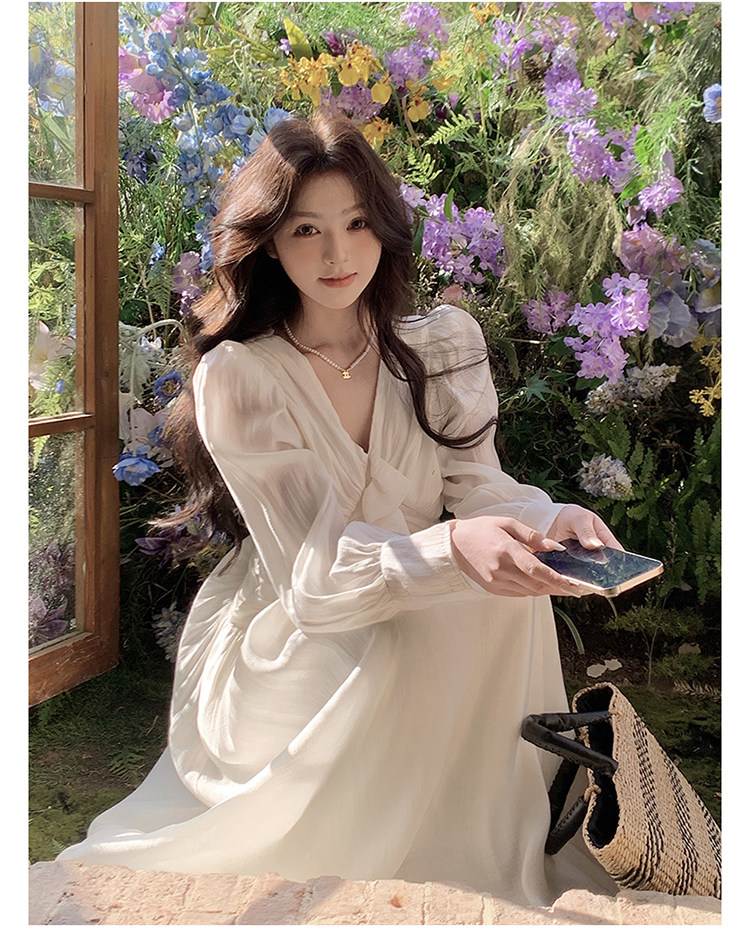 【商品名】【ワンピース】高級感 ピュア ロマンチック Vネック 着痩せ 長袖ワンピース【JZシリーズ】