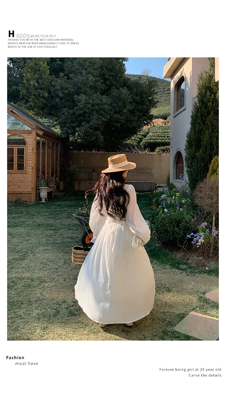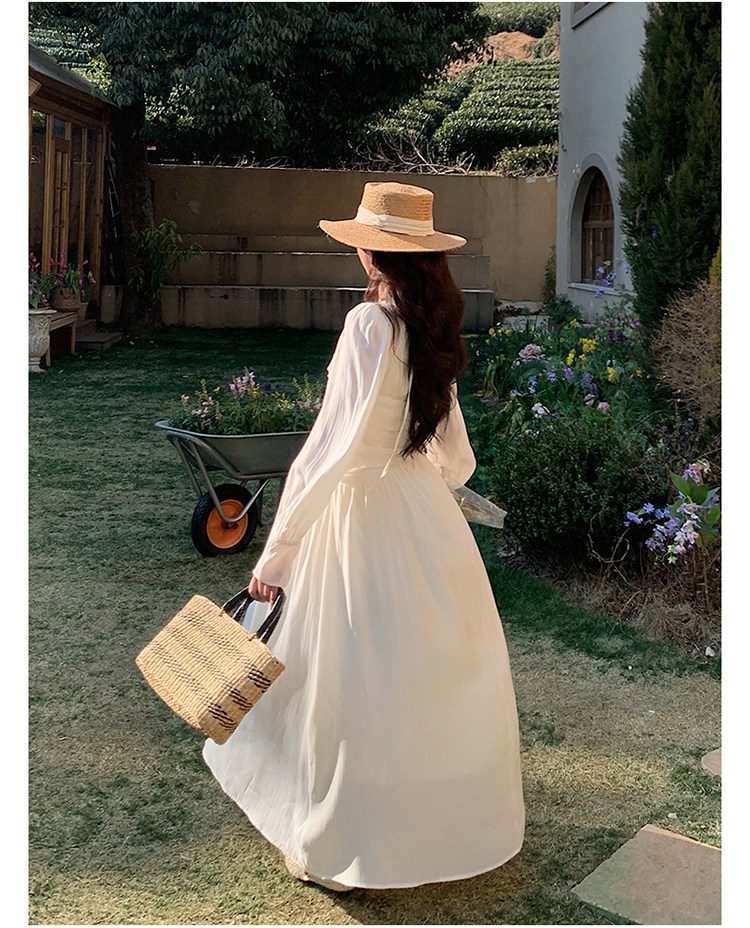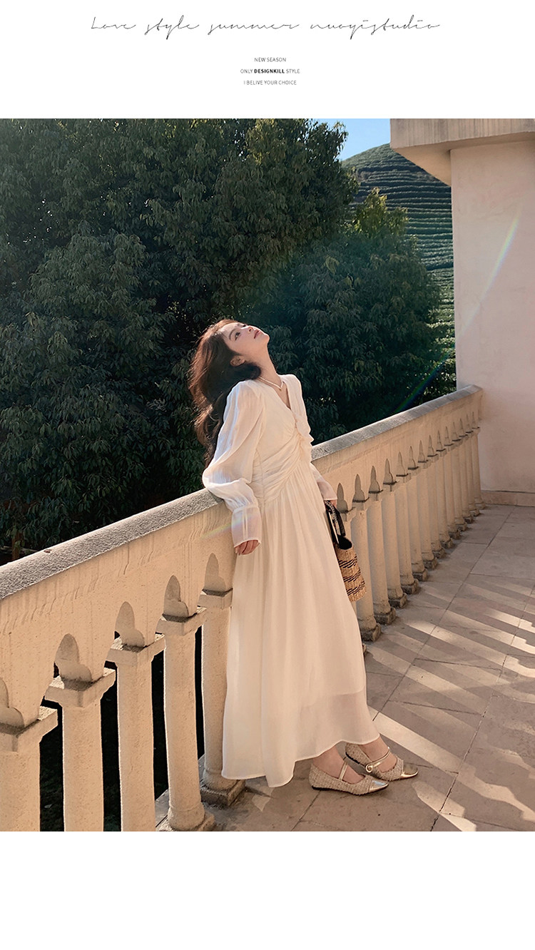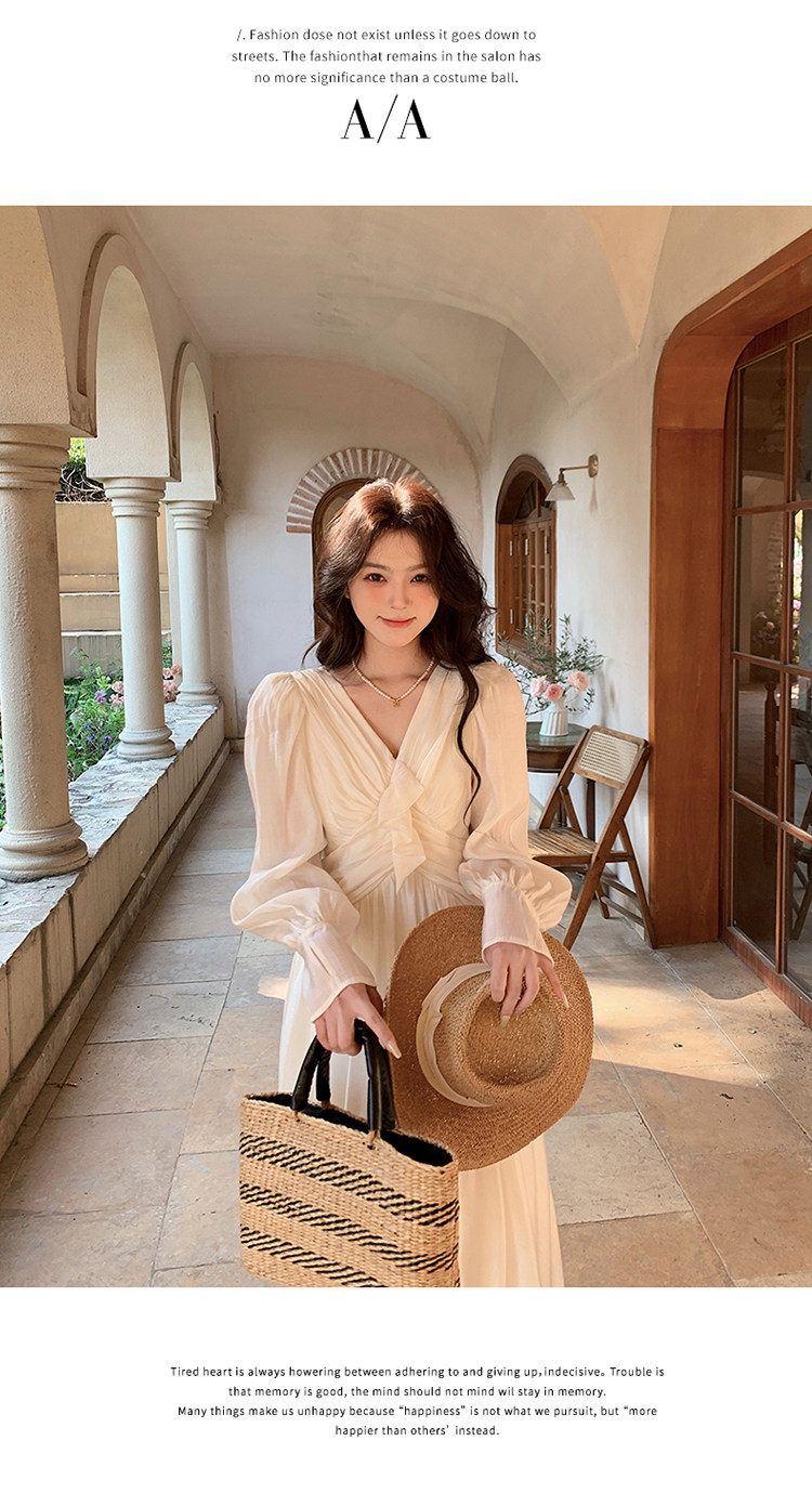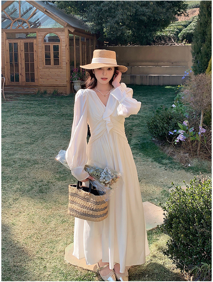 【商品名】【ワンピース】高級感 ピュア ロマンチック Vネック 着痩せ 長袖ワンピース【JZシリーズ】