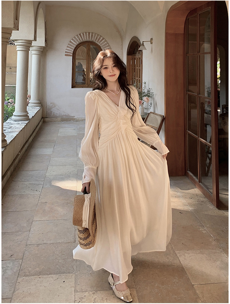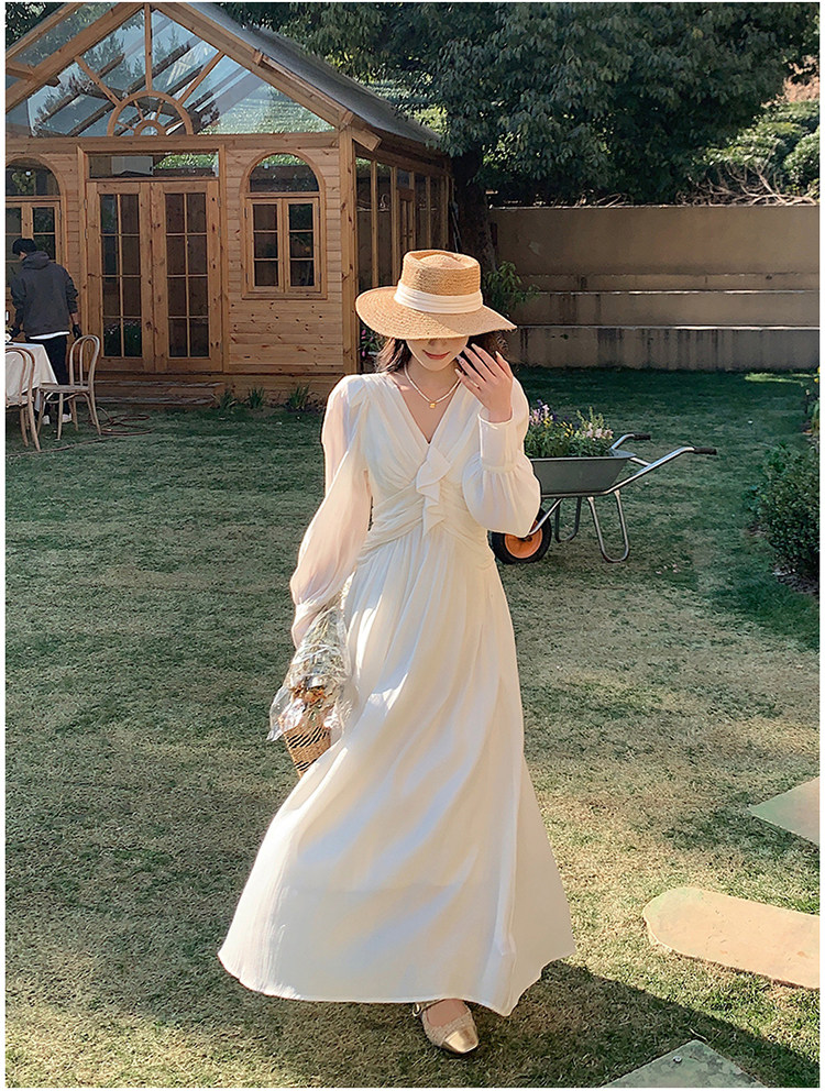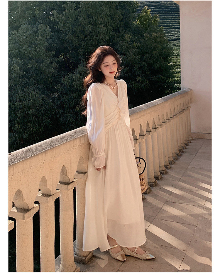 【ワンピース】高級感 ピュア ロマンチック Vネック 着痩せ 長袖ワンピース【JZシリーズ】