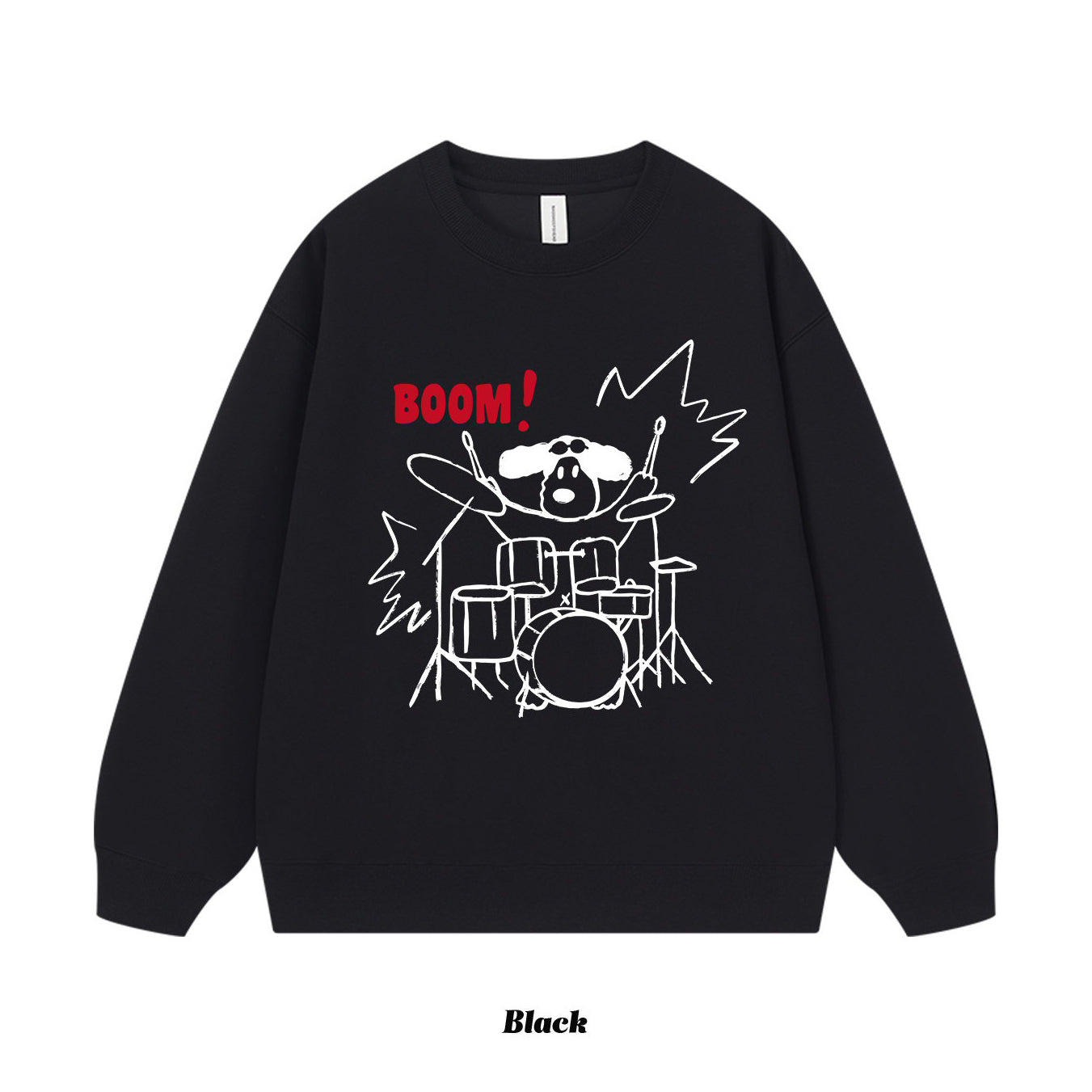 【商品名】7カラー | S~3XL【トップス】ロック風 犬イラスト ドラムプリント クルーネック スウェット 秋 ルーズ ユニセックス パーカー【FCシリーズ】