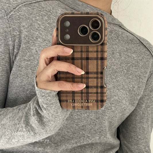 【グッズ】新作 ins風 レトロ 学院風 ブラウンチェック 大窓 iPhone17 Pro Max対応 iPhone17 / 16 Pro Max / 15 Pro / 14対応 全面保護 耐衝撃 男女兼用 ケース