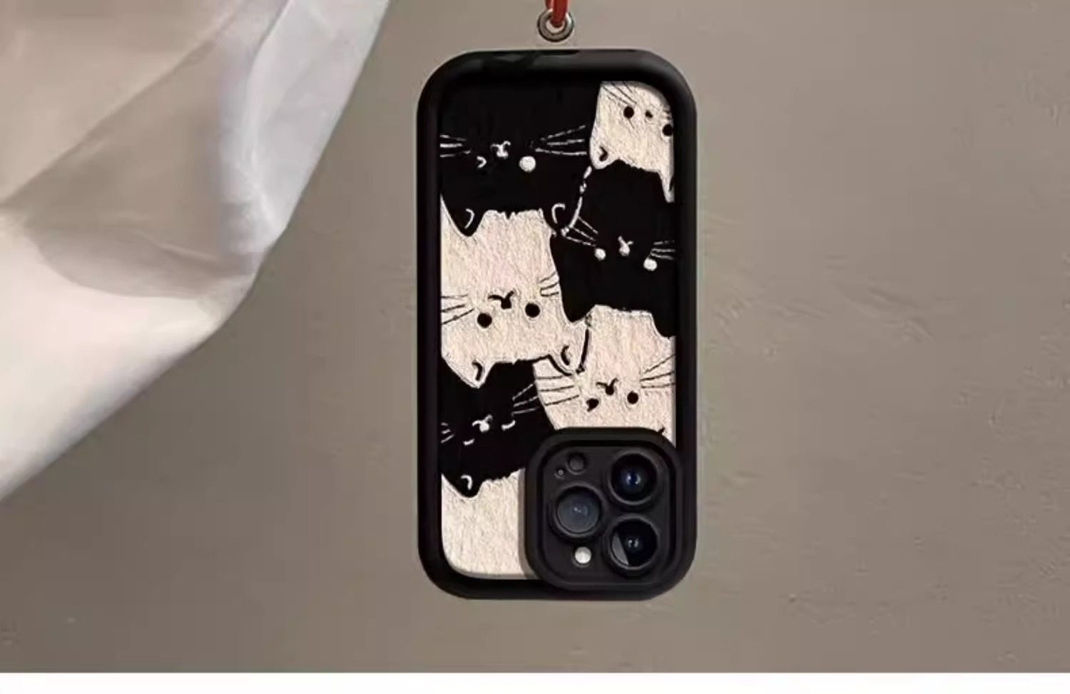 【グッズ】韓国 ins風 クール&ユニーク パッチワーク猫 電鍍ケース iPhone16 Pro / iPhone17 Pro Max / 15 Pro / 13 / 14対応 全面保護 耐衝撃 男女兼用 ケース