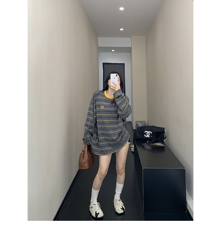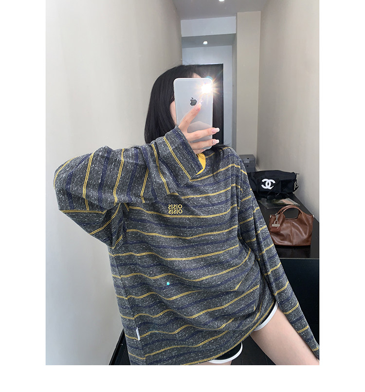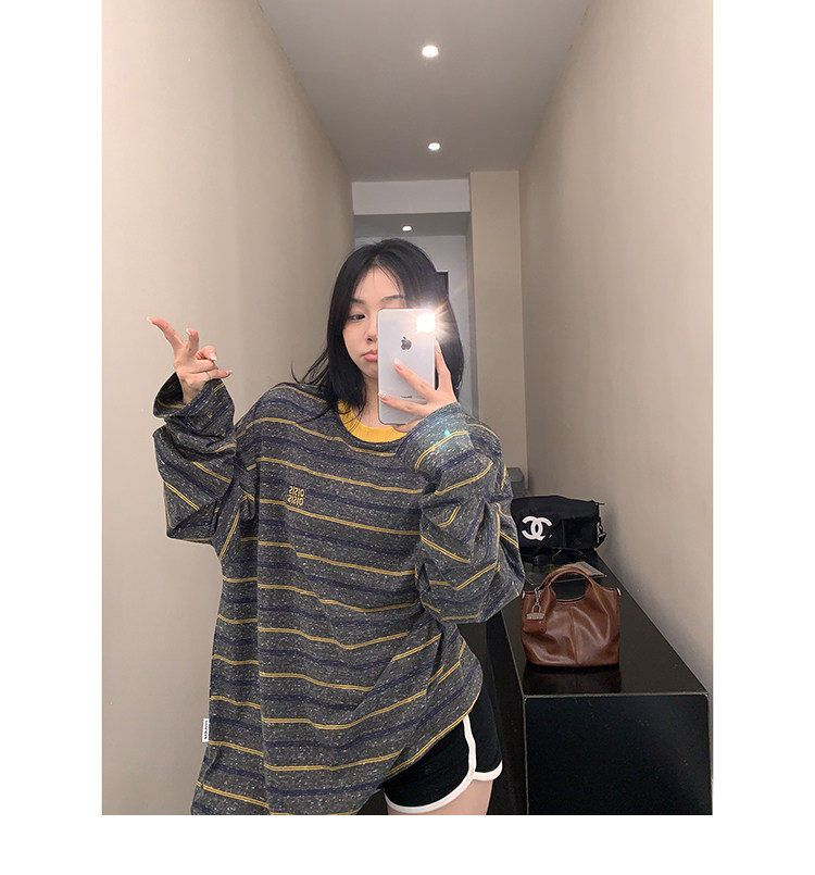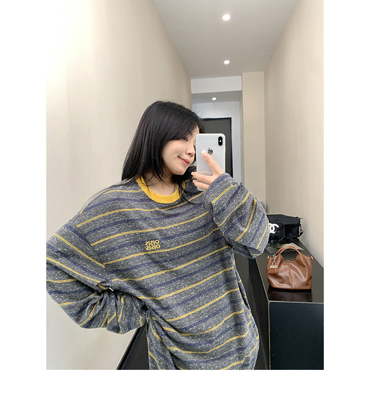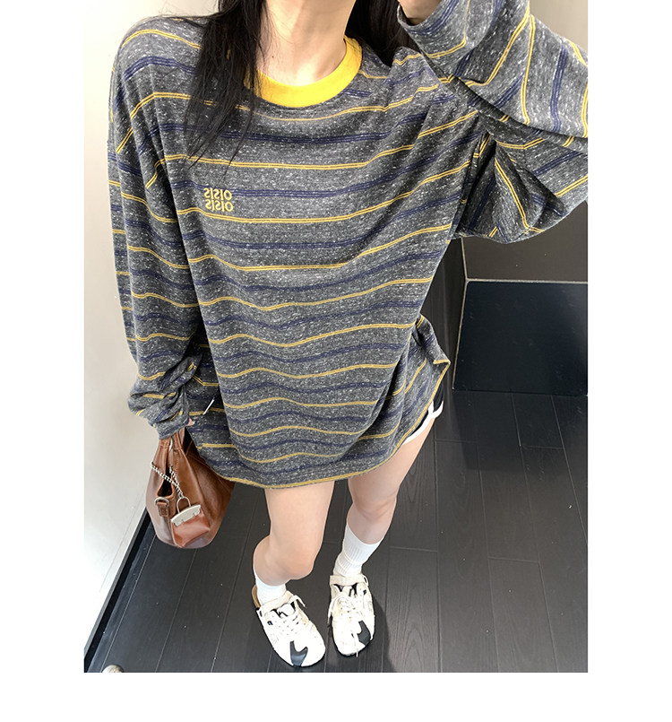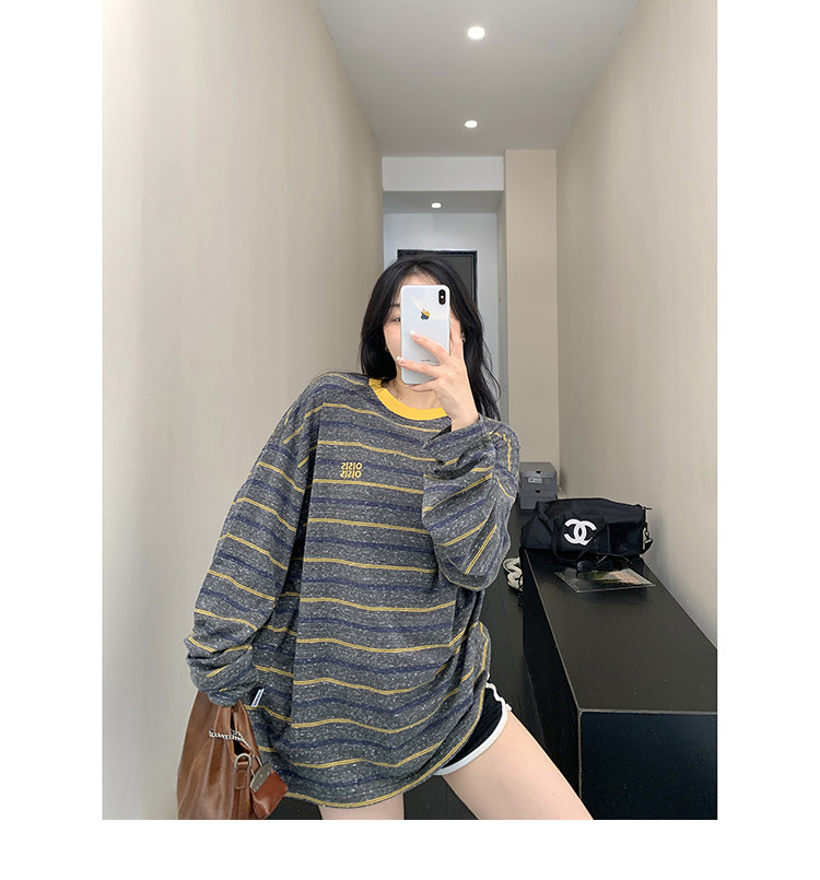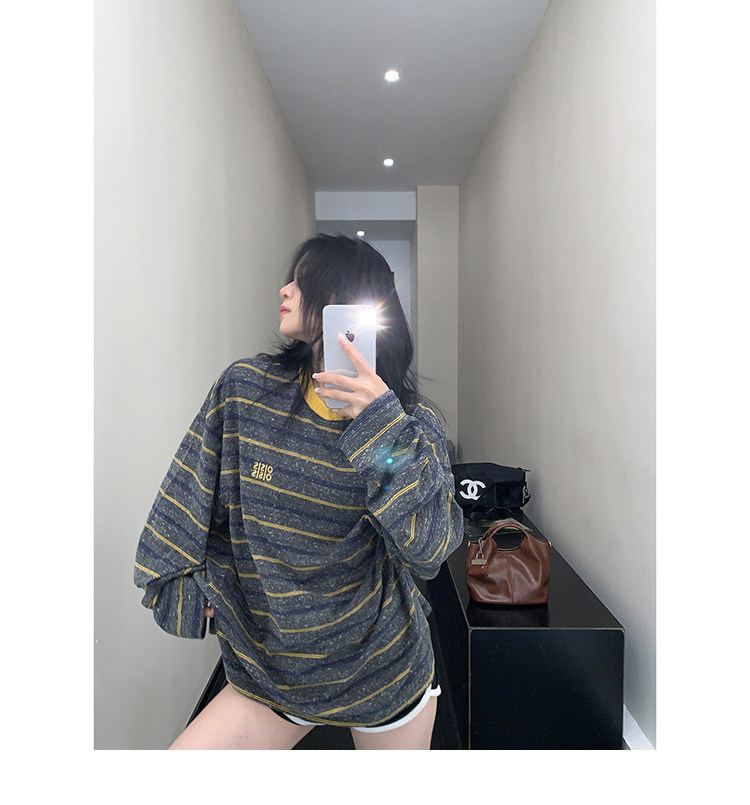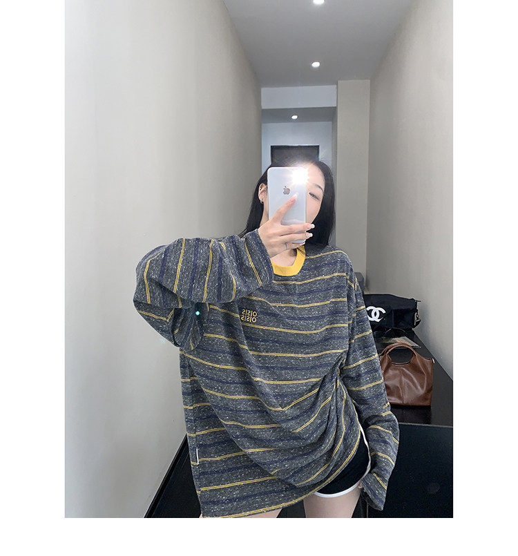 【商品名】【トップス】レトロ ゆる感 薄手 ストライプ 長袖Tシャツ レディース 春新作【FCシリーズ】