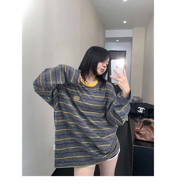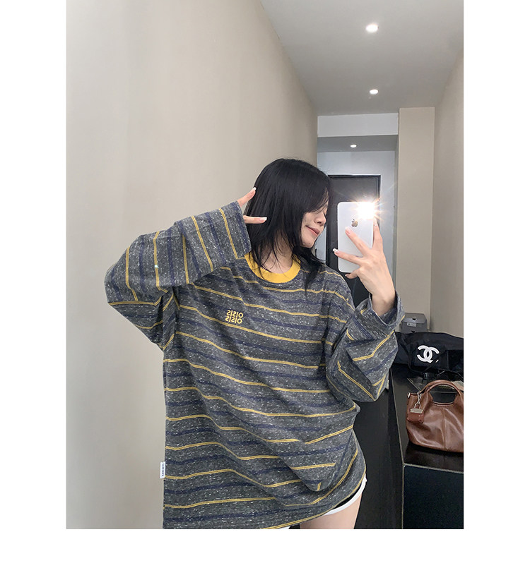 【トップス】レトロ ゆる感 薄手 ストライプ 長袖Tシャツ レディース 春新作【FCシリーズ】