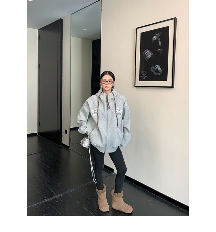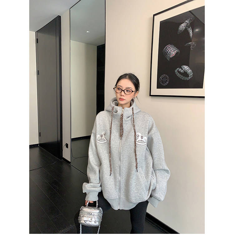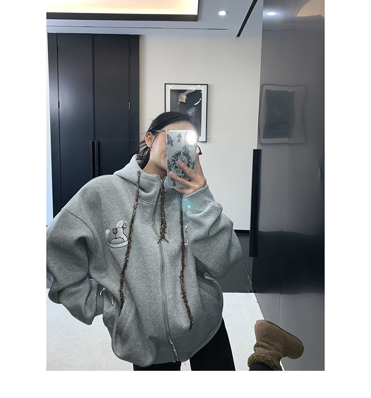 【トップス】ルーズ ラフ 小众デザイン 安全ピン Vネック フード付き スウェット レディース パーカー【FCシリーズ】