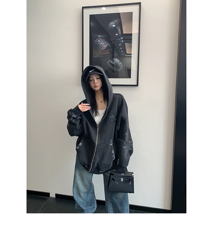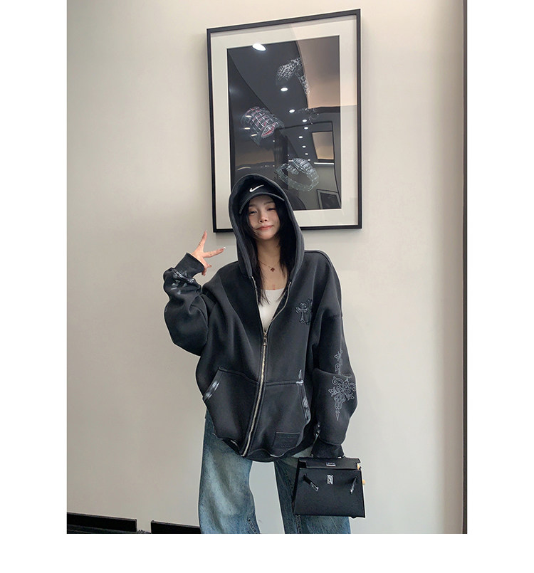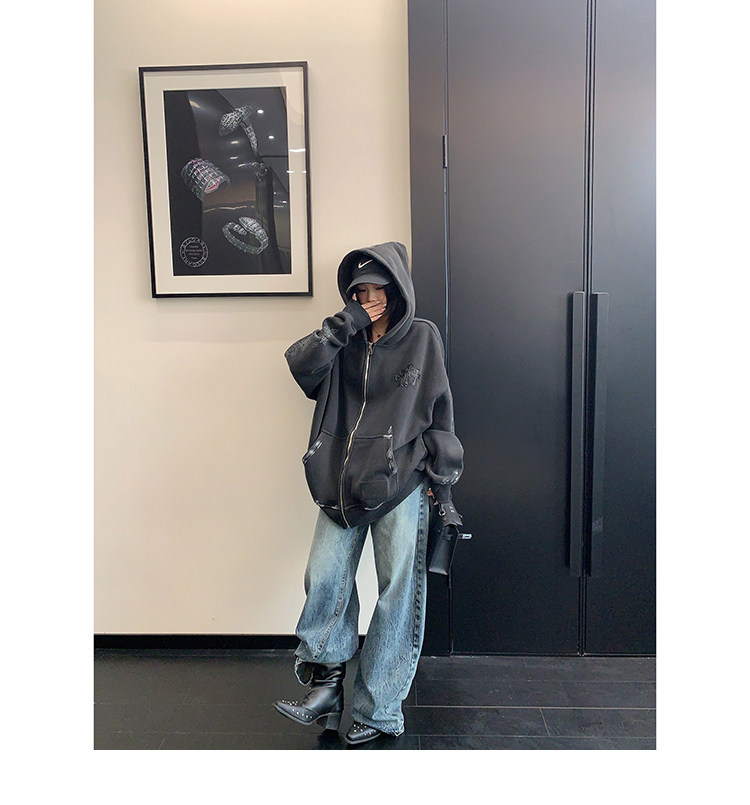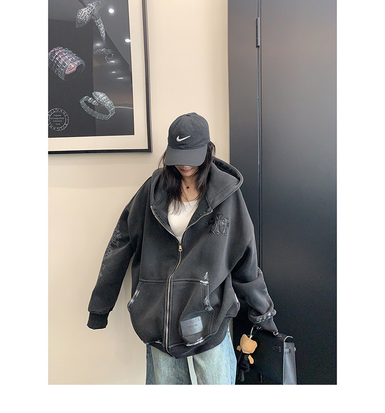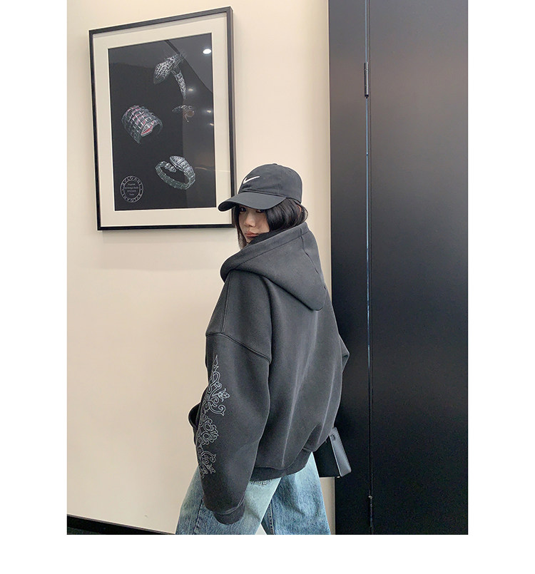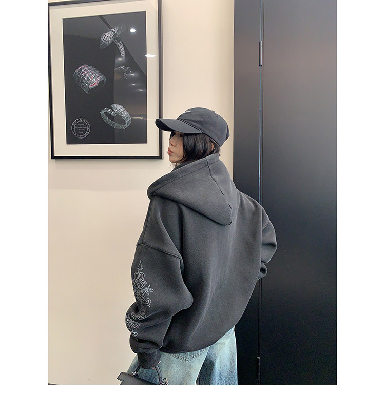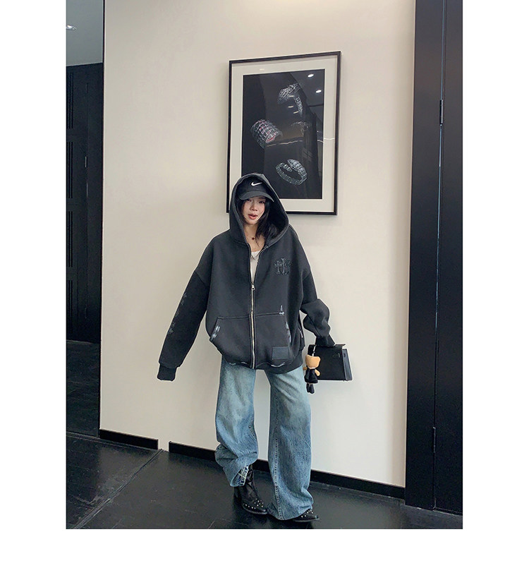 【トップス】ルーズ ラフ 小众デザイン 安全ピン Vネック フード付き スウェット レディース パーカー【FCシリーズ】