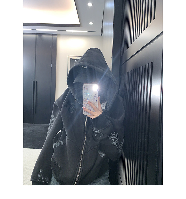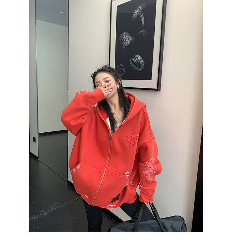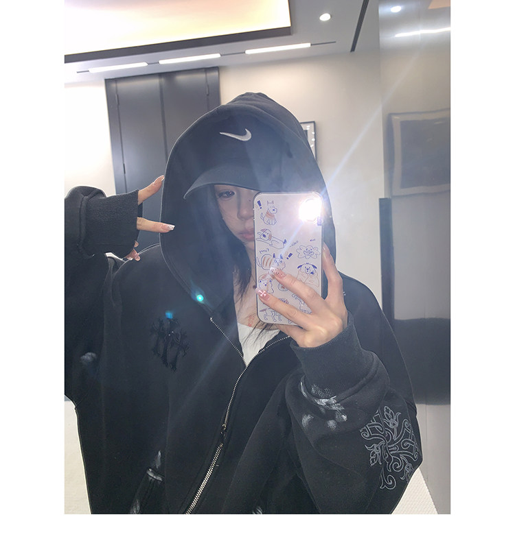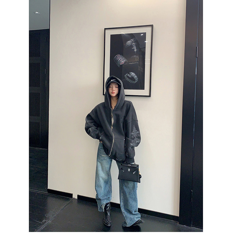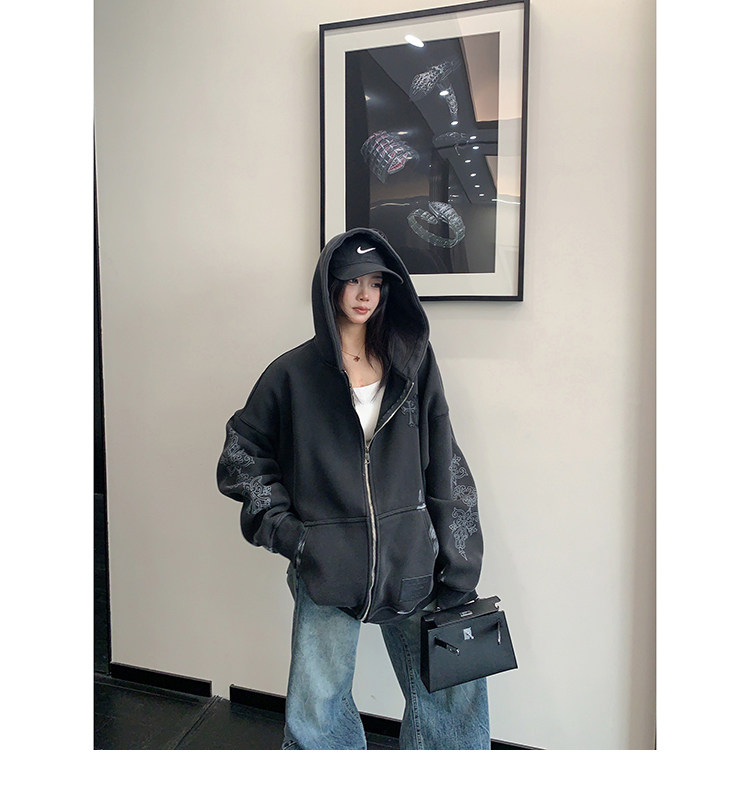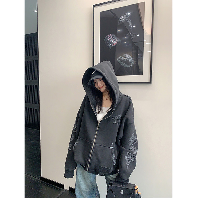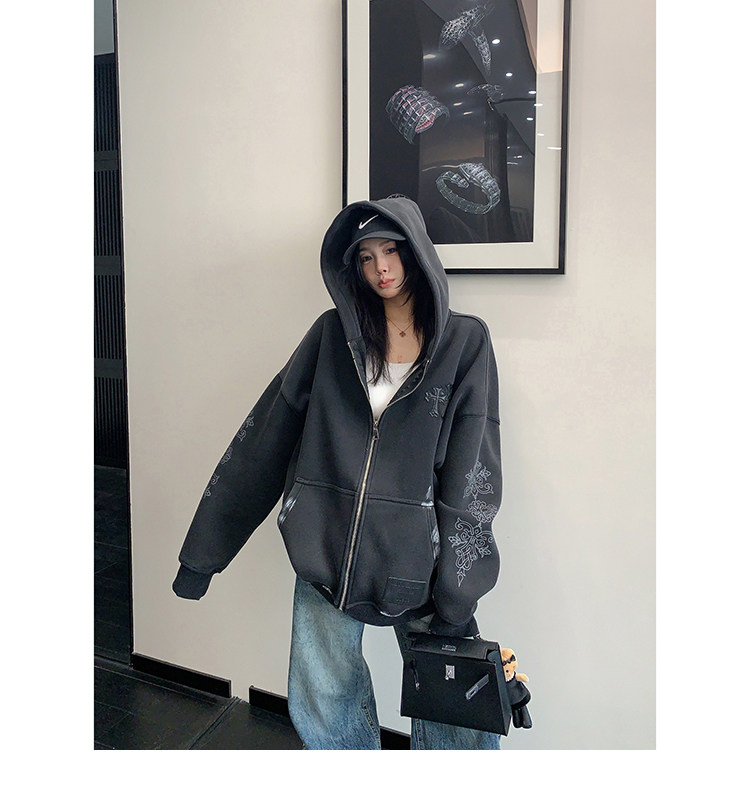 【トップス】ルーズ ラフ 小众デザイン 安全ピン Vネック フード付き スウェット レディース パーカー【FCシリーズ】