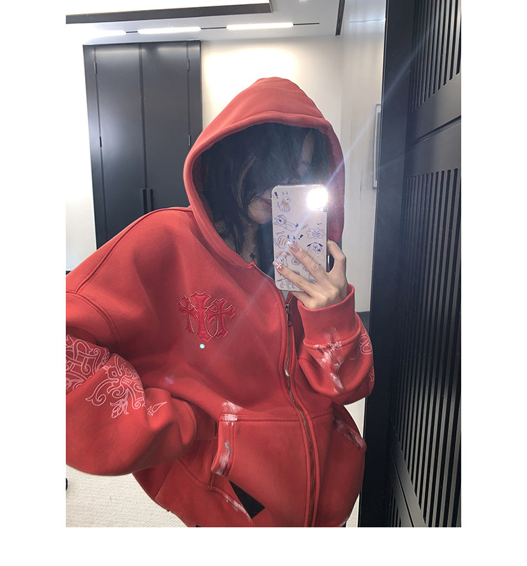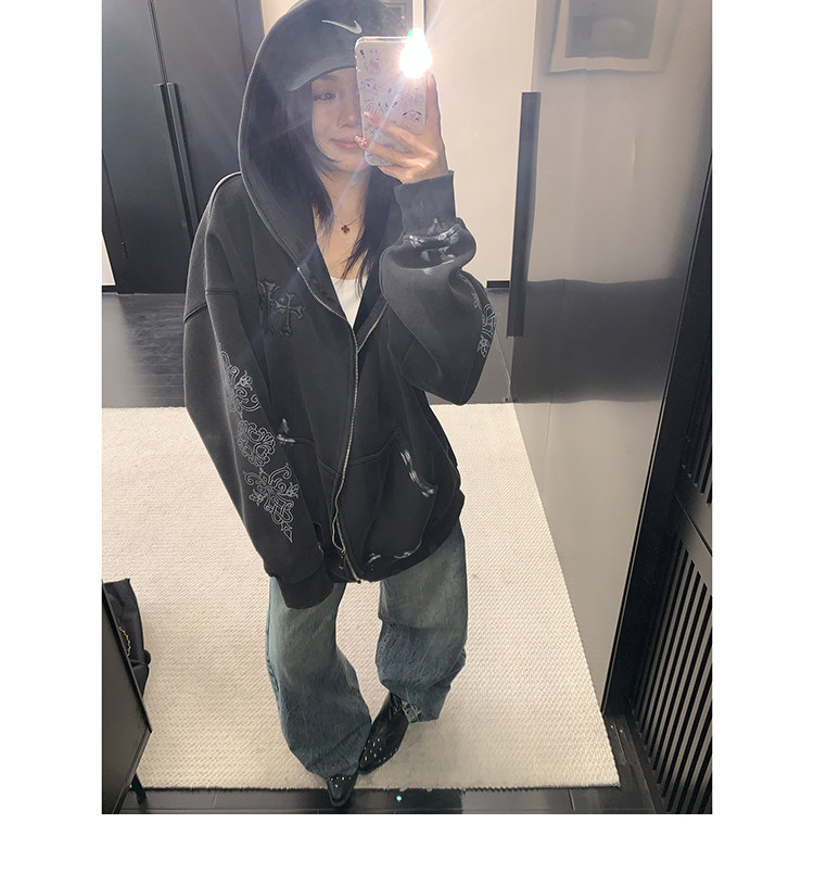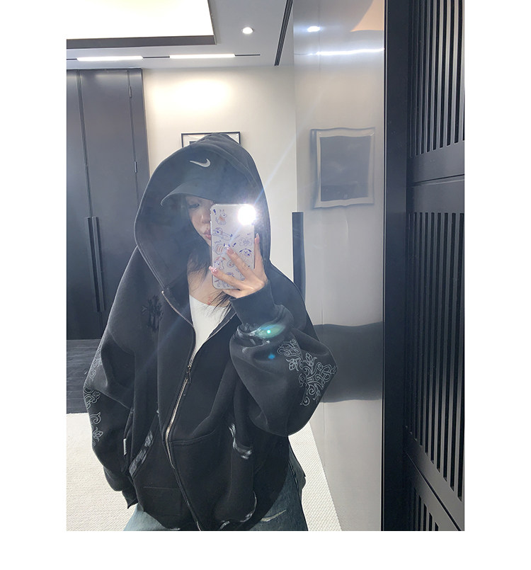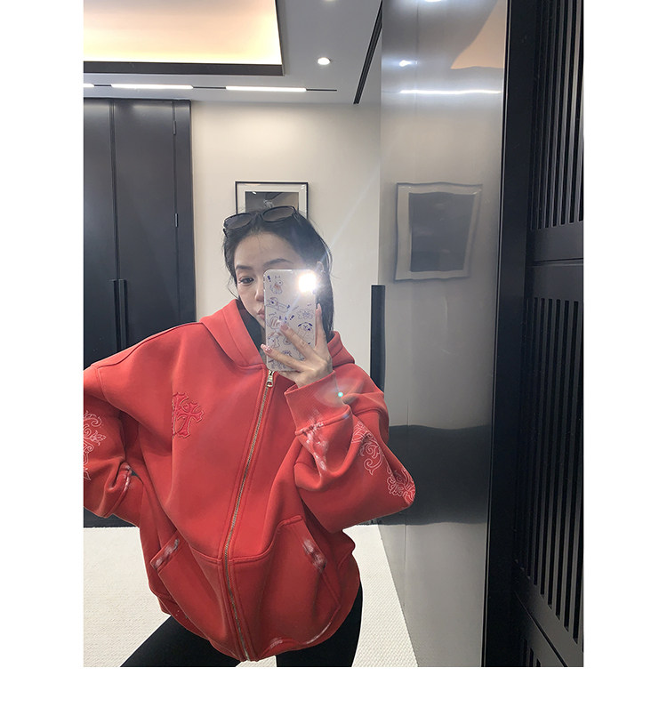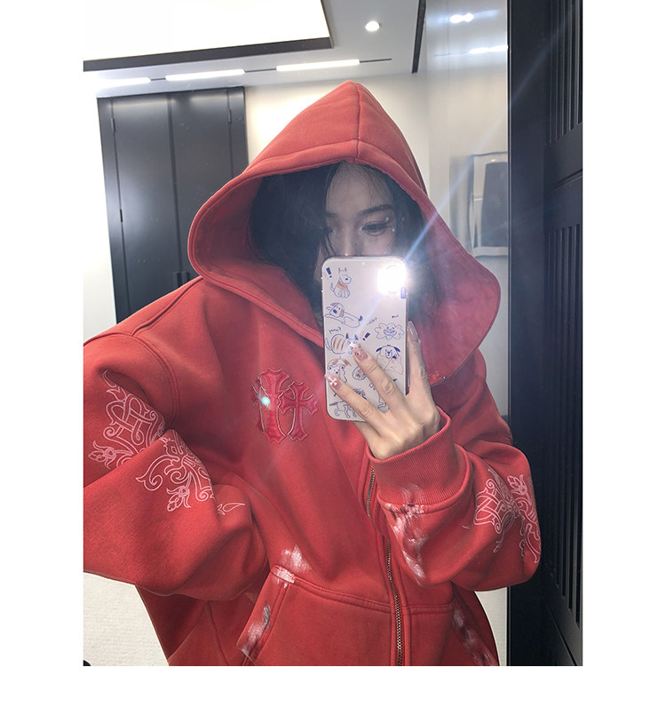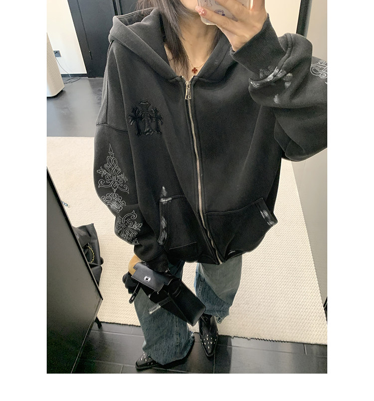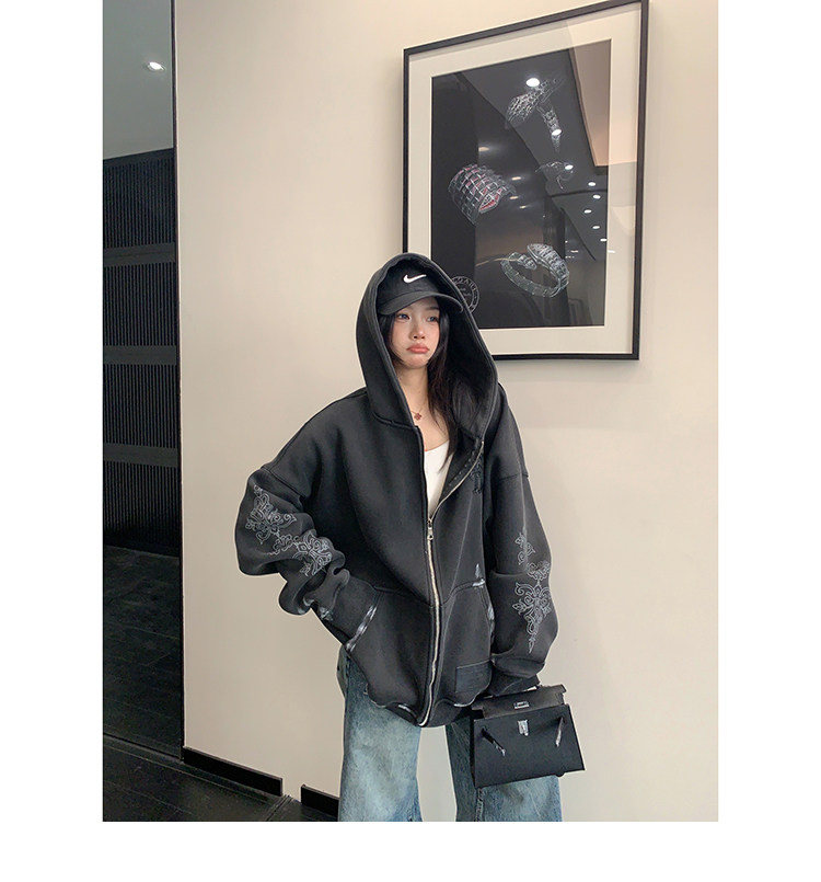【トップス】ルーズ ラフ 小众デザイン 安全ピン Vネック フード付き スウェット レディース パーカー【FCシリーズ】