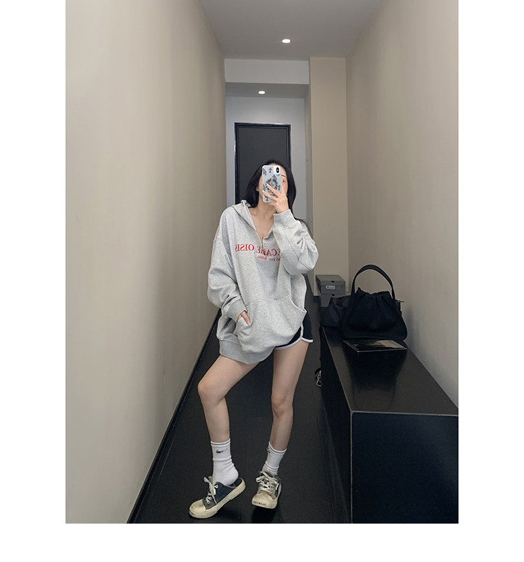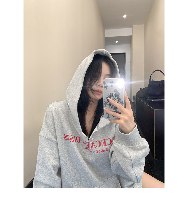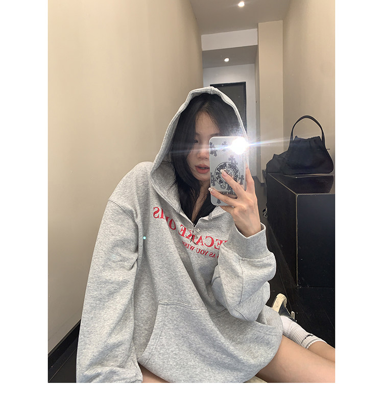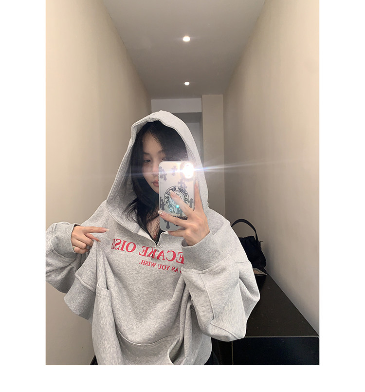 【トップス】ルーズ ラフ 小众デザイン 安全ピン Vネック フード付き スウェット レディース パーカー【FCシリーズ】
