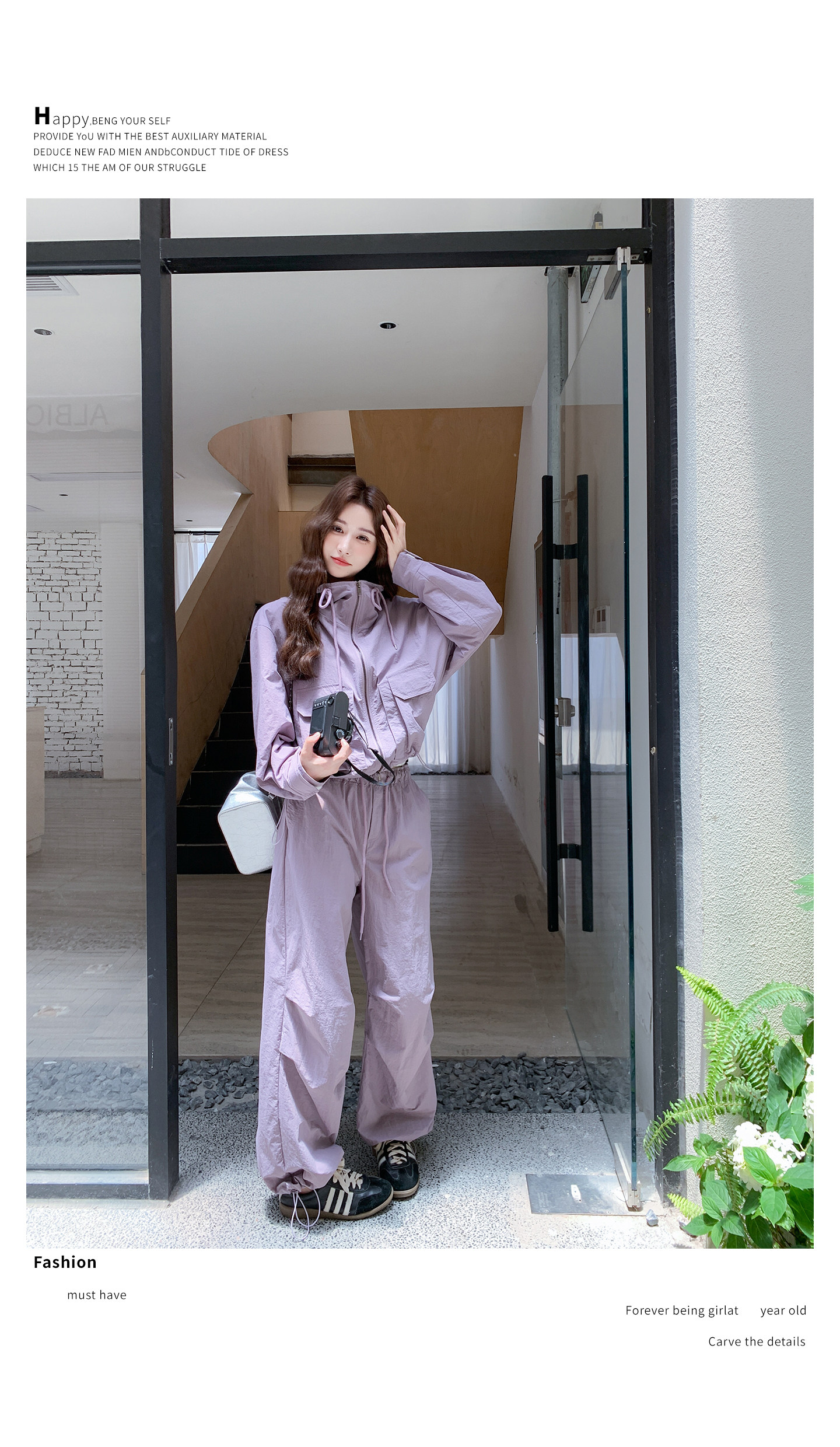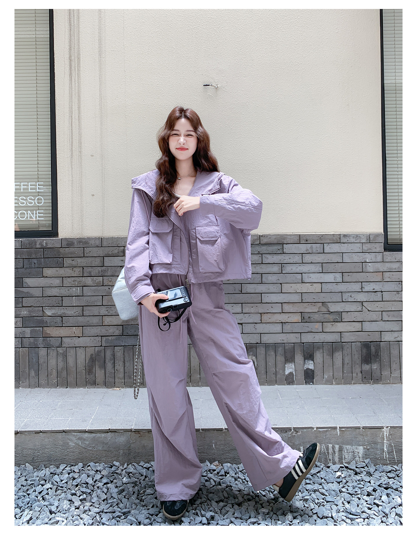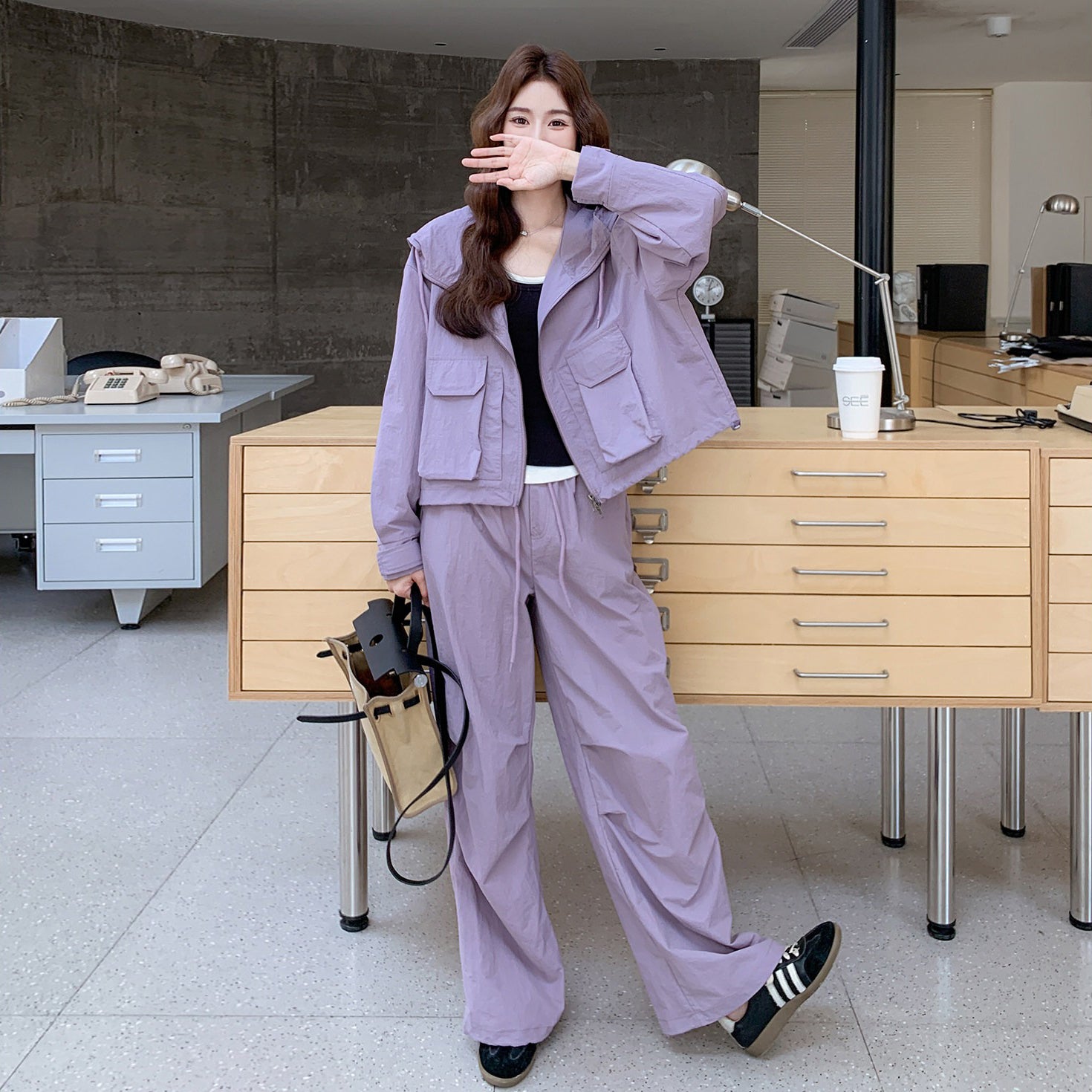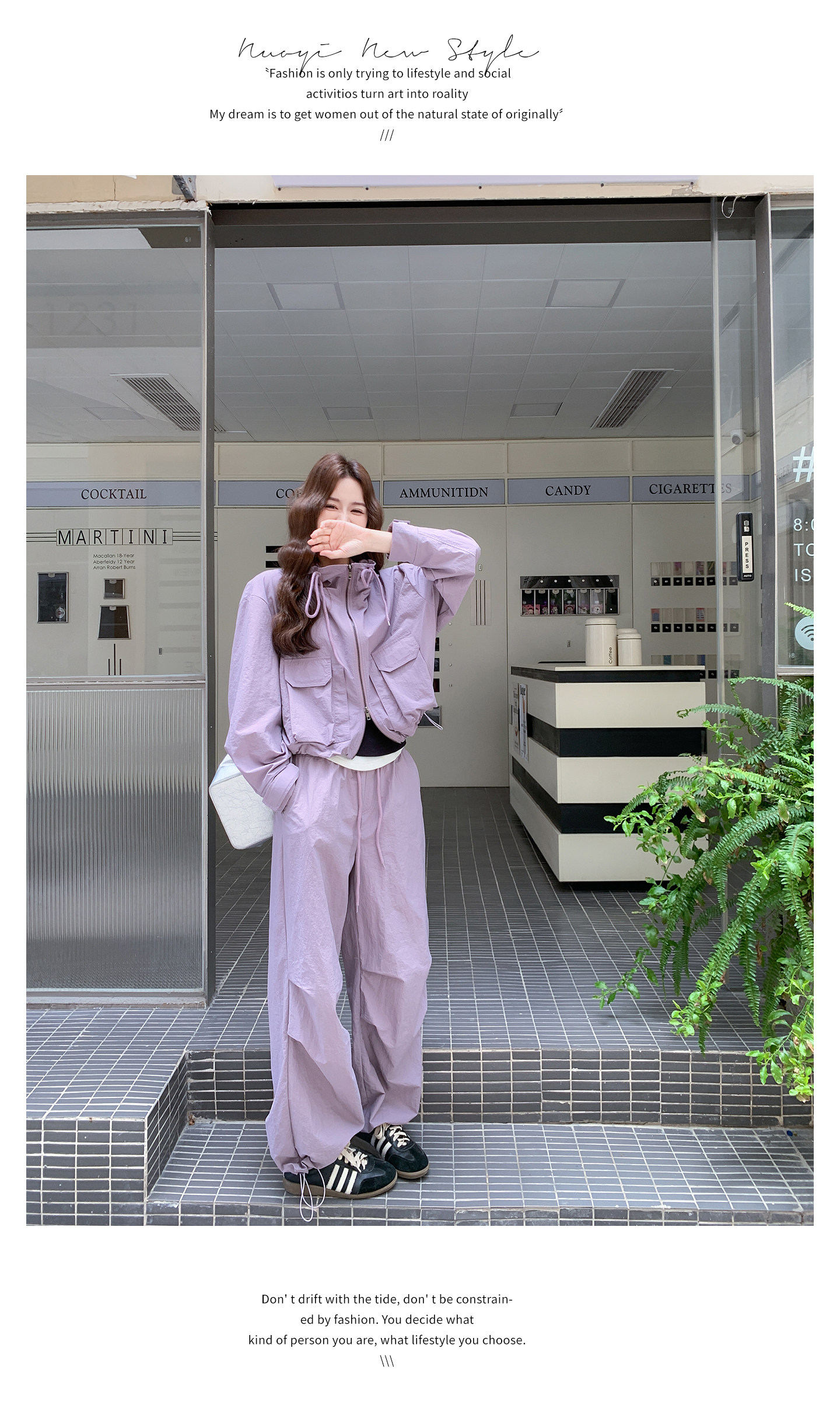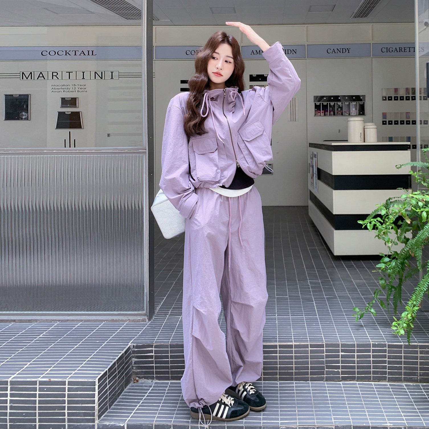 【商品名】2点セット【セットアップ】大人気 パープル カーゴスタイルジャケット + ワイドパンツ セットアップ 早春秋 【JZシリーズ】