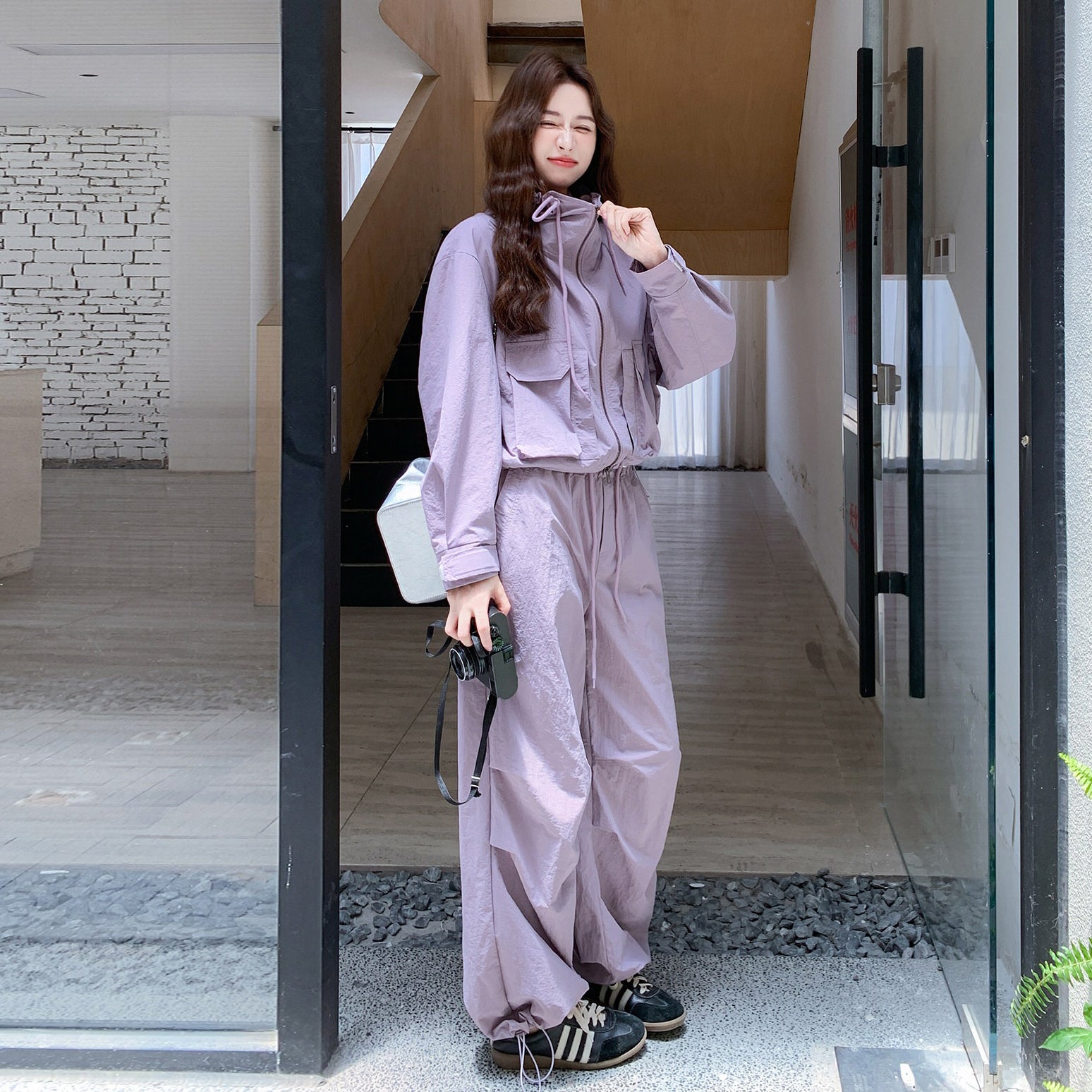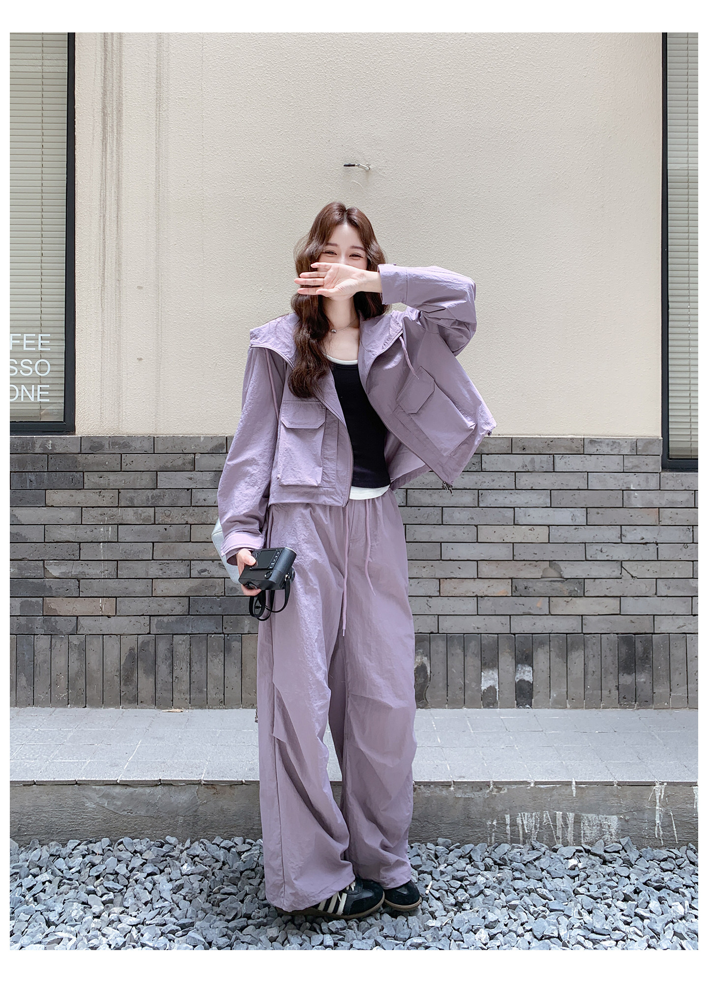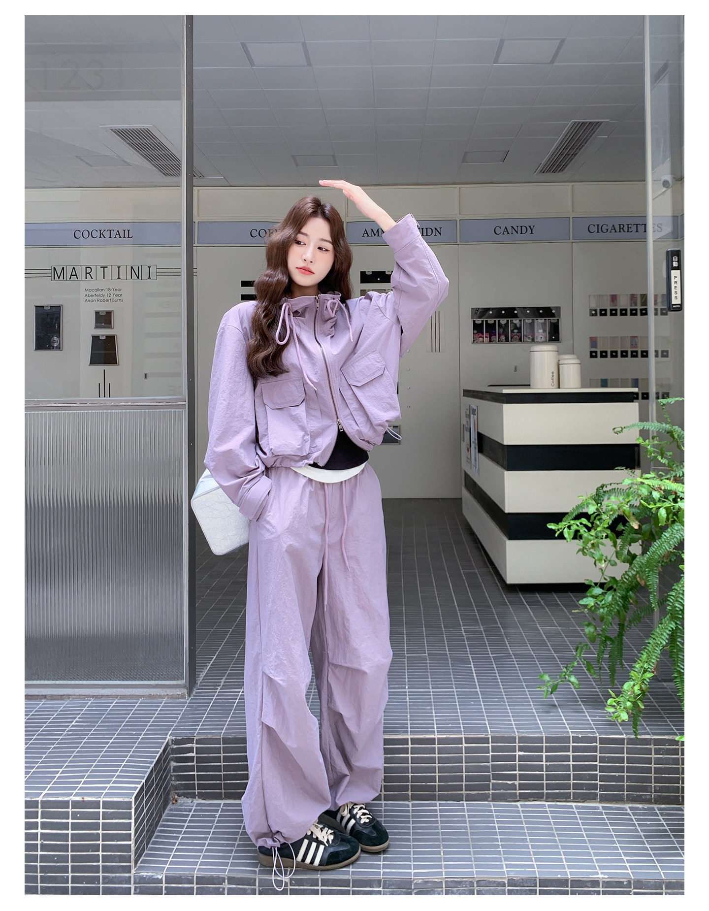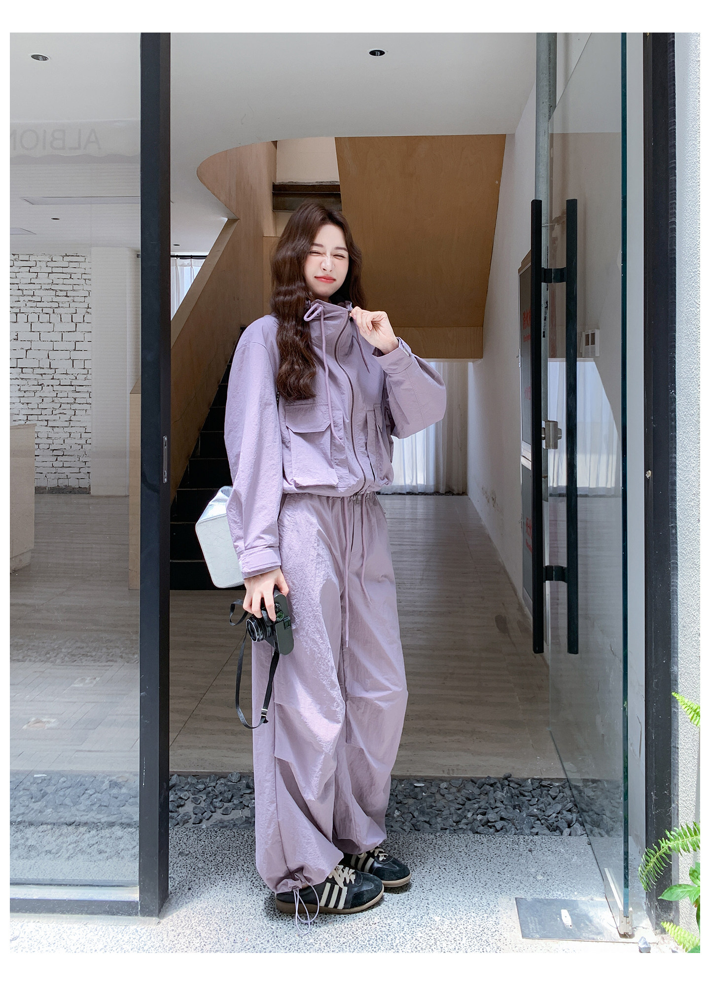 【商品名】2点セット【セットアップ】大人気 パープル カーゴスタイルジャケット + ワイドパンツ セットアップ 早春秋 【JZシリーズ】