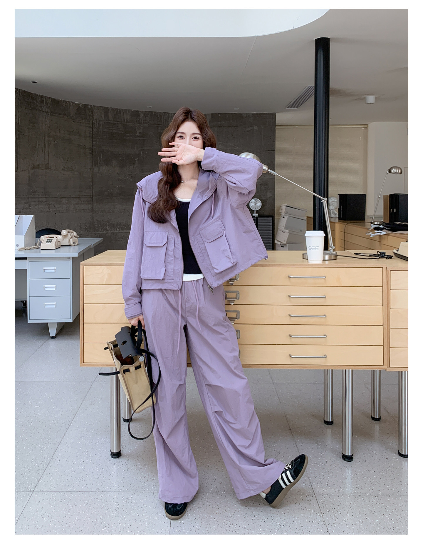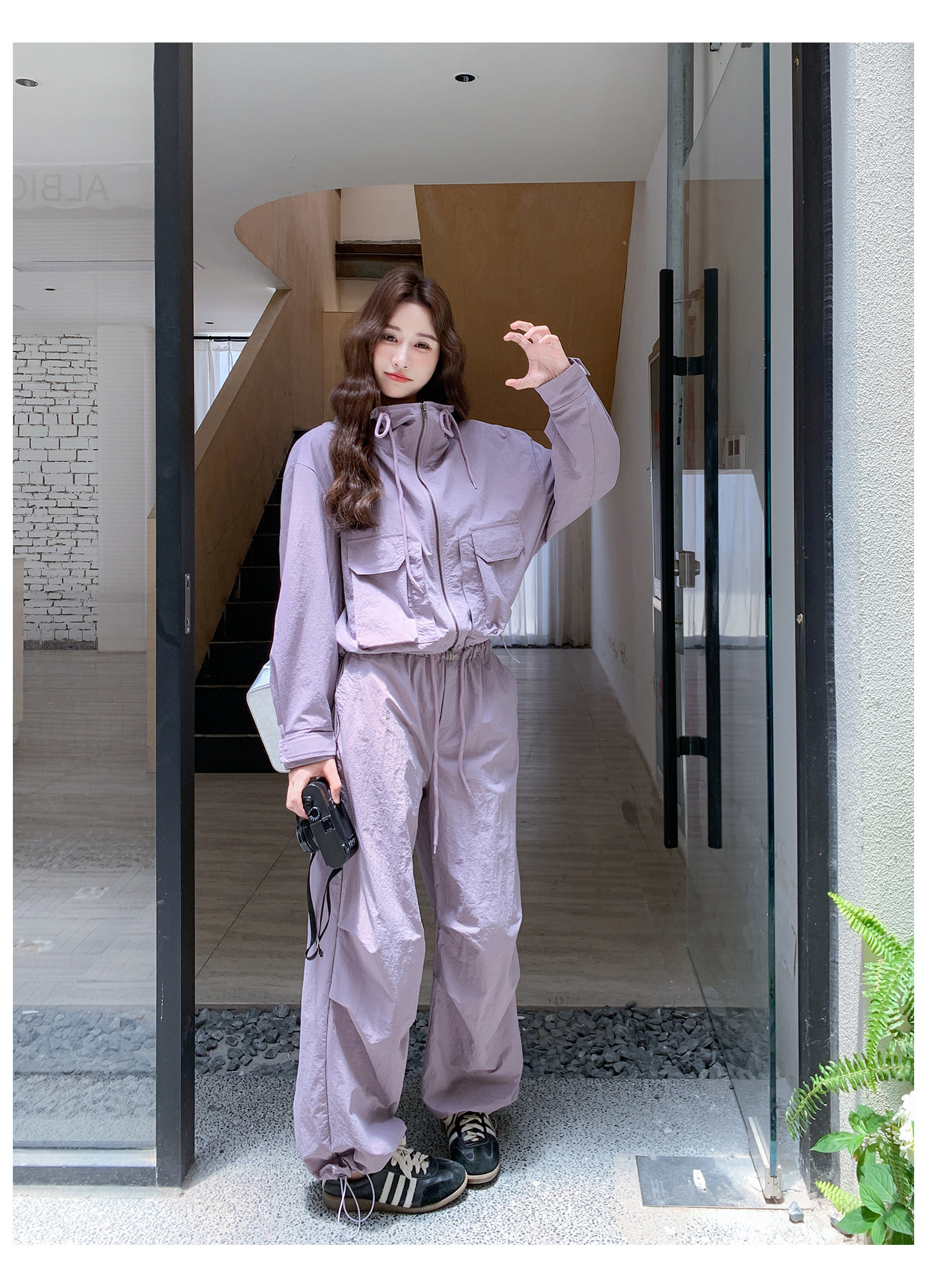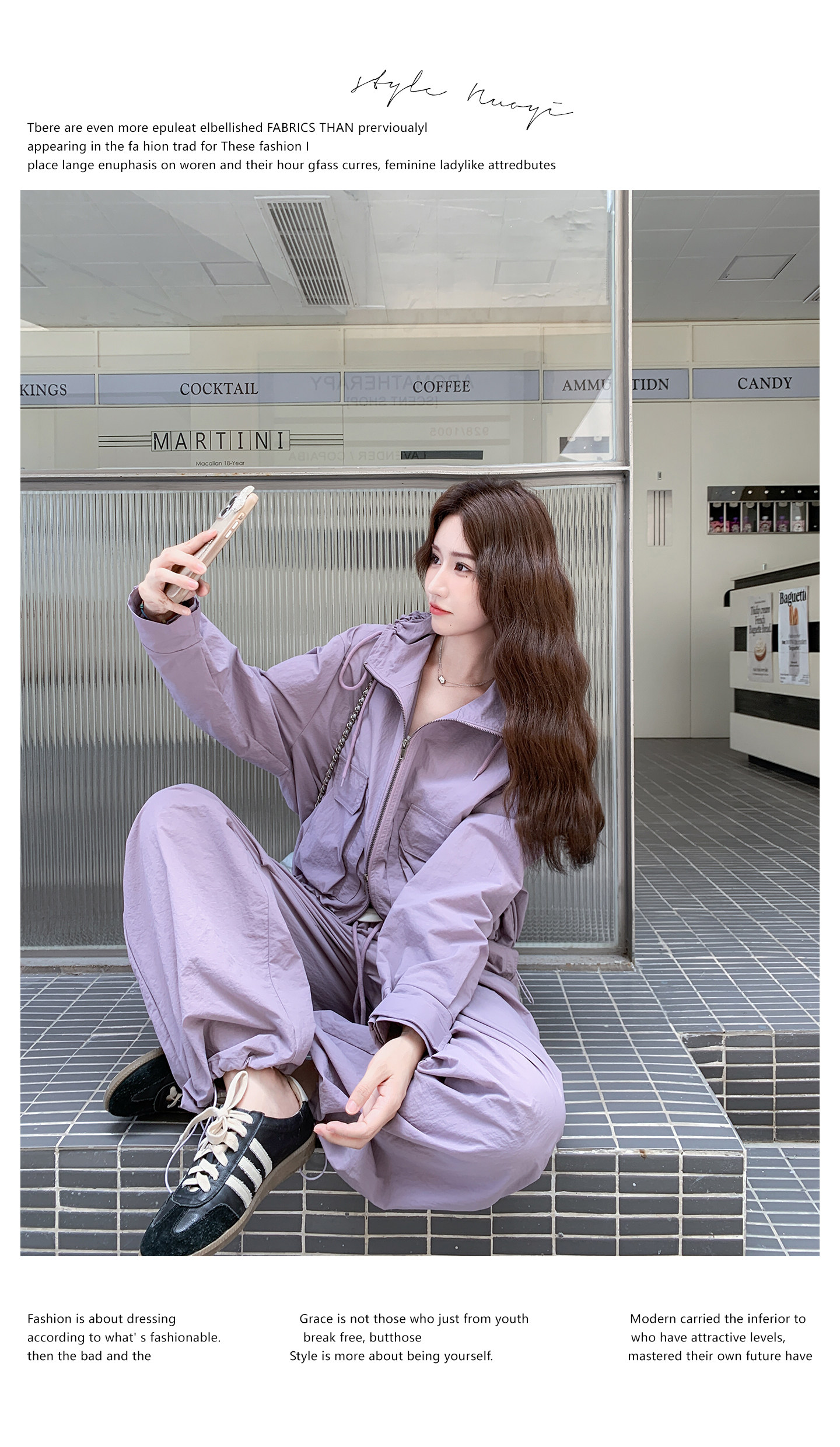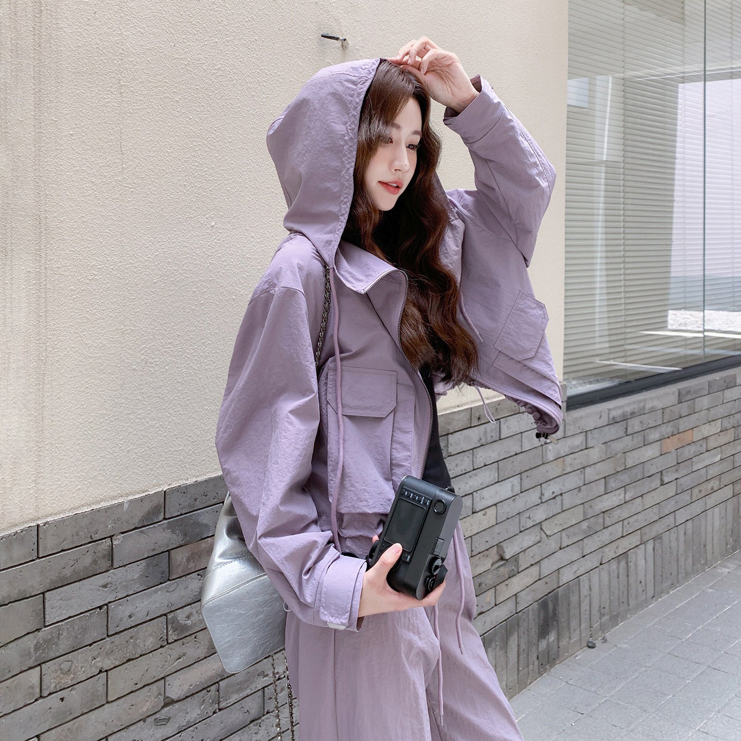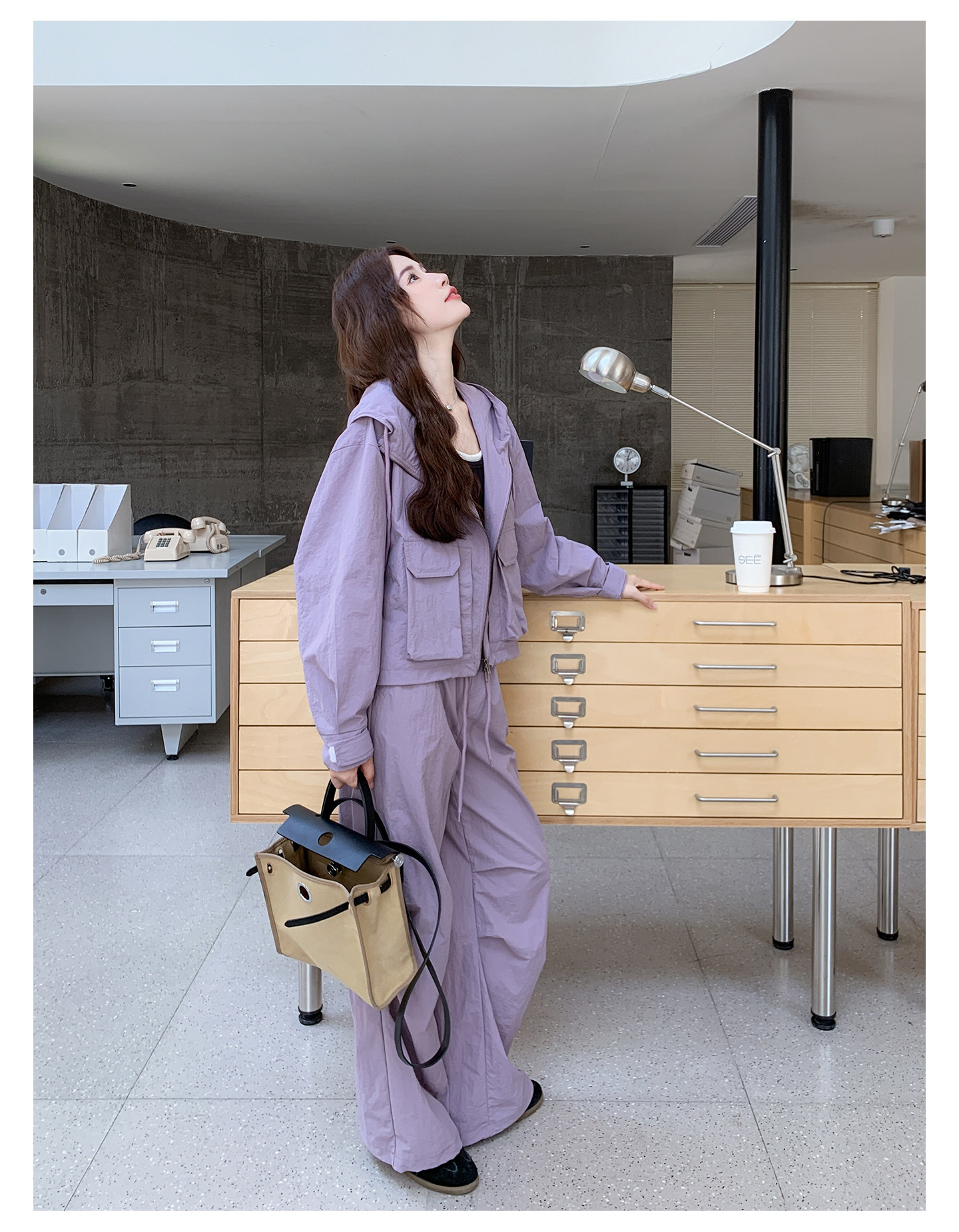 【商品名】2点セット【セットアップ】大人気 パープル カーゴスタイルジャケット + ワイドパンツ セットアップ 早春秋 【JZシリーズ】