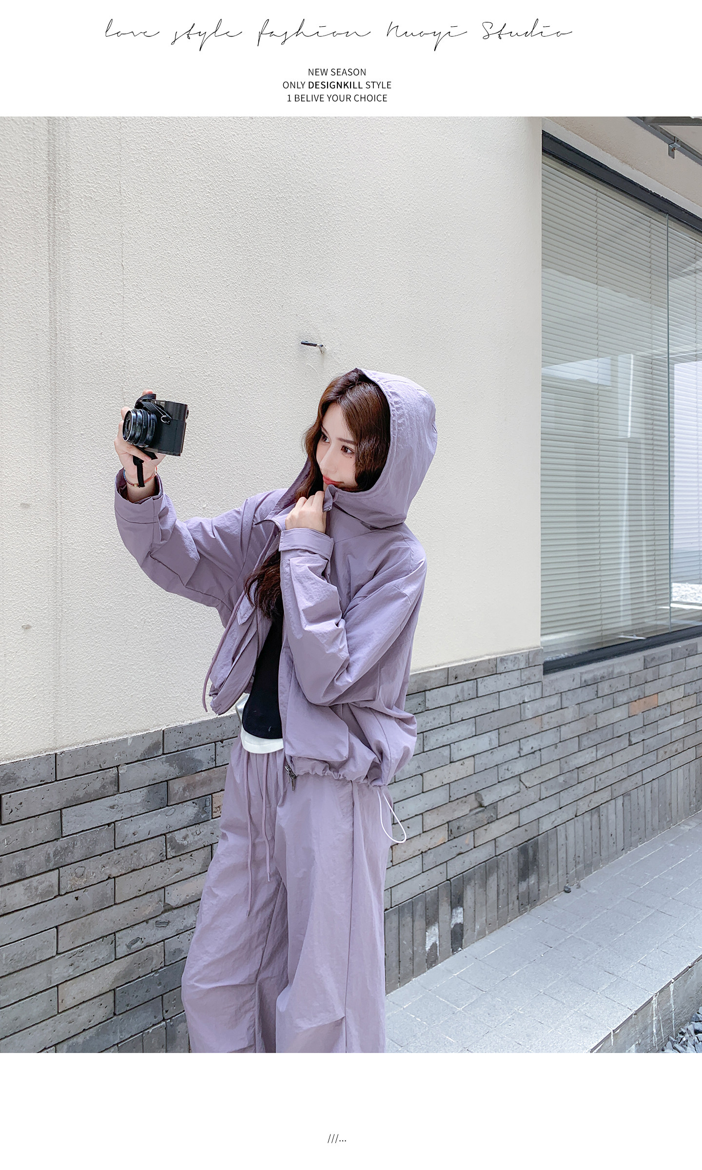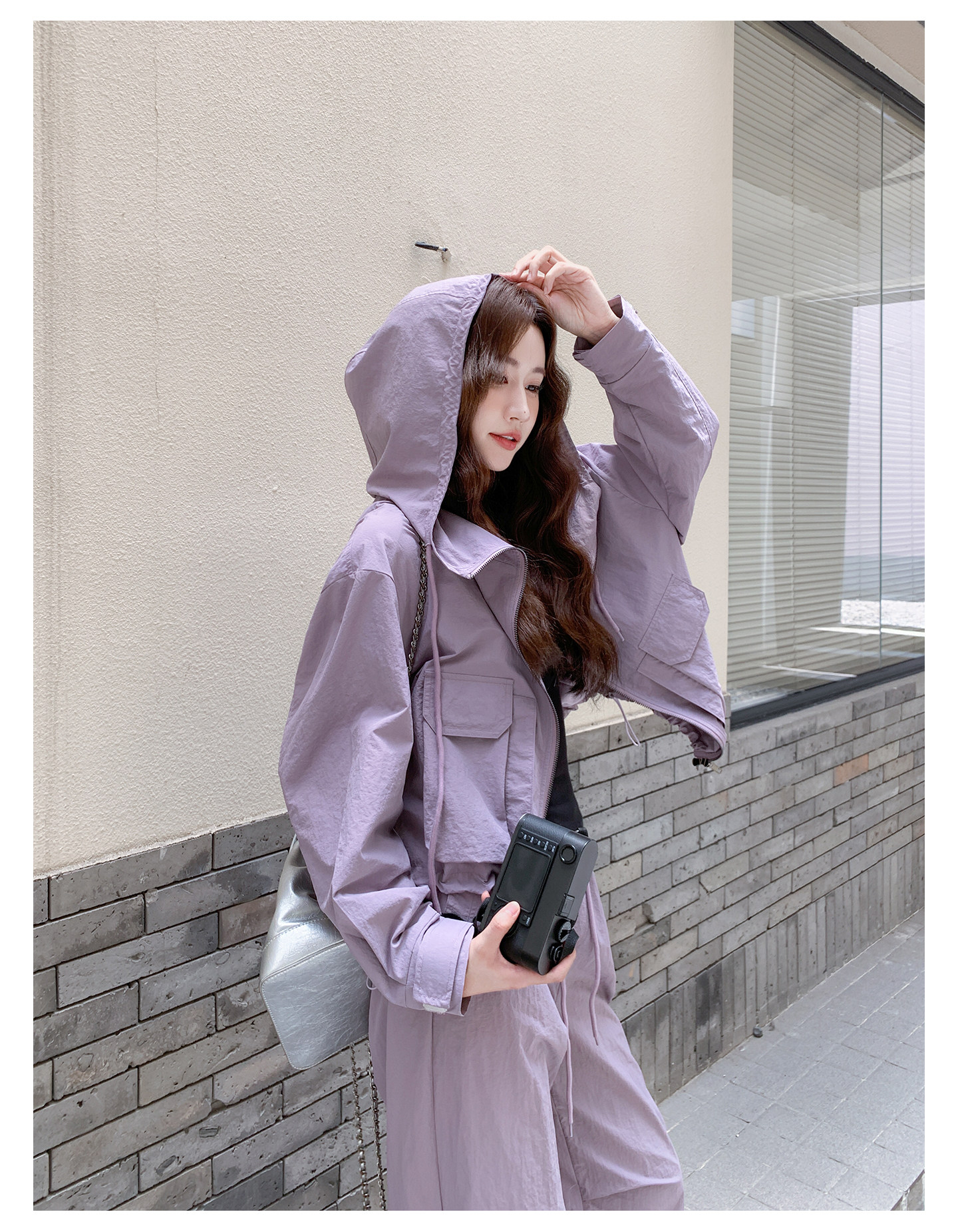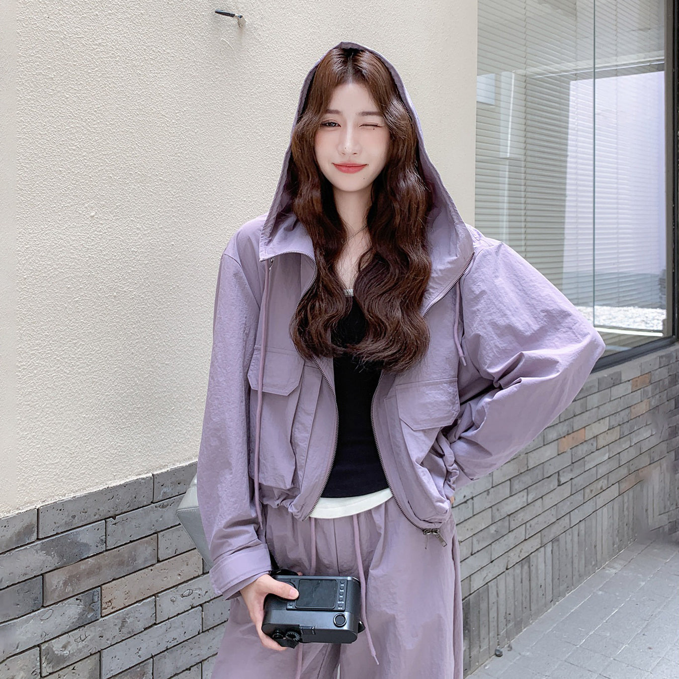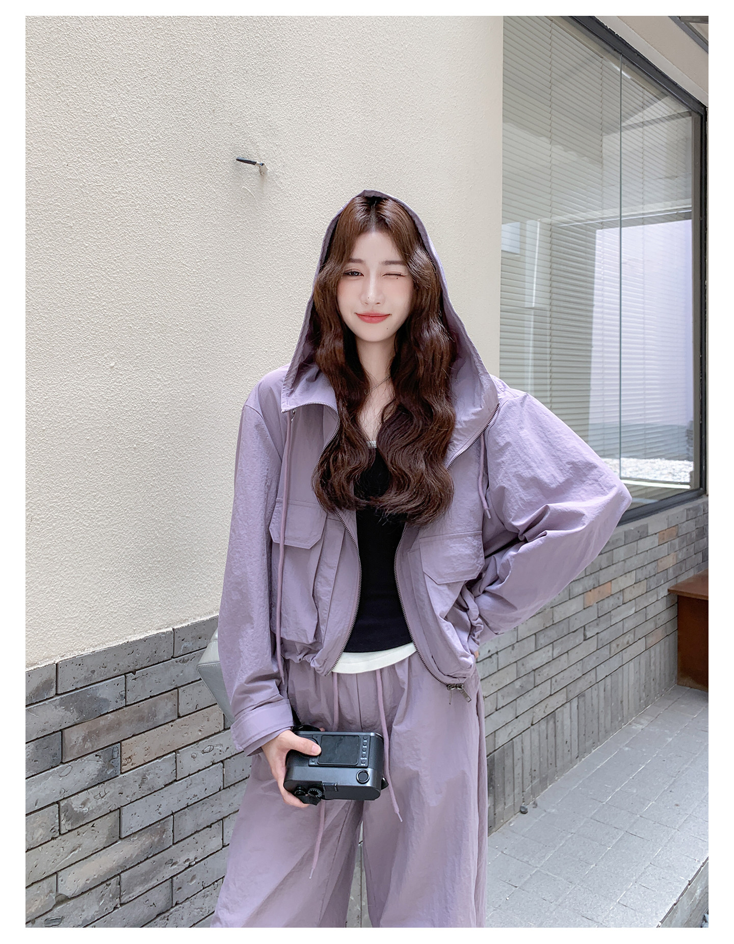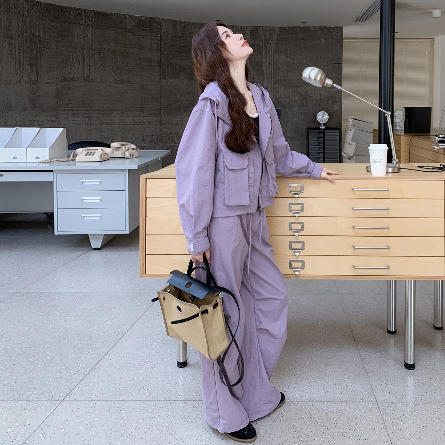 【商品名】2点セット【セットアップ】大人気 パープル カーゴスタイルジャケット + ワイドパンツ セットアップ 早春秋 【JZシリーズ】