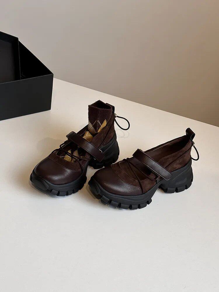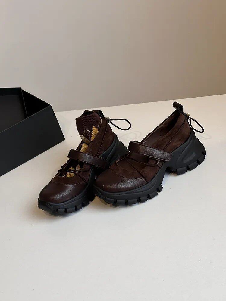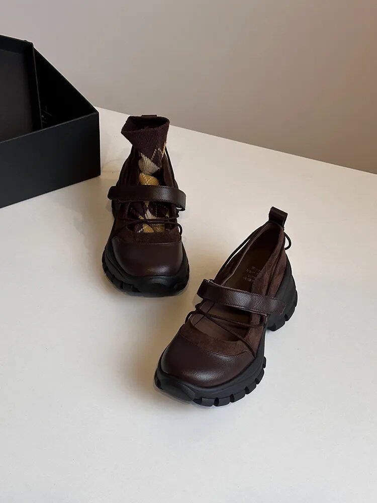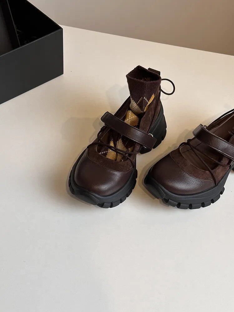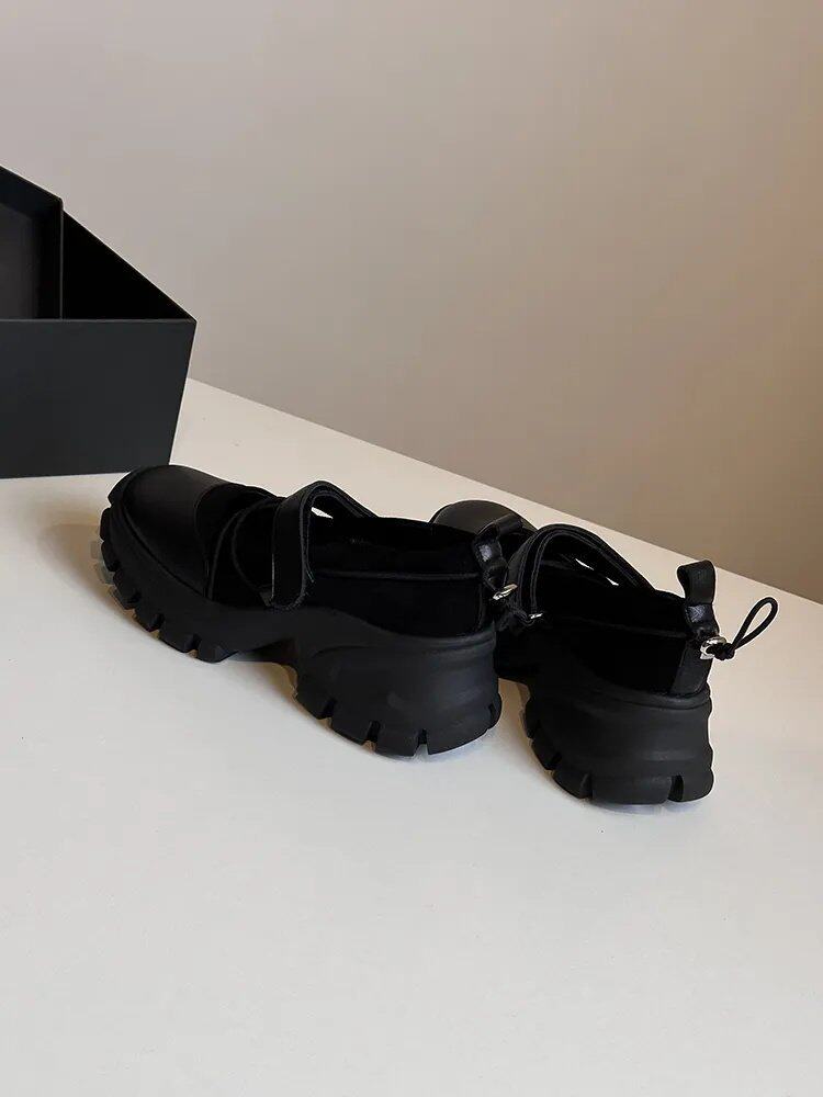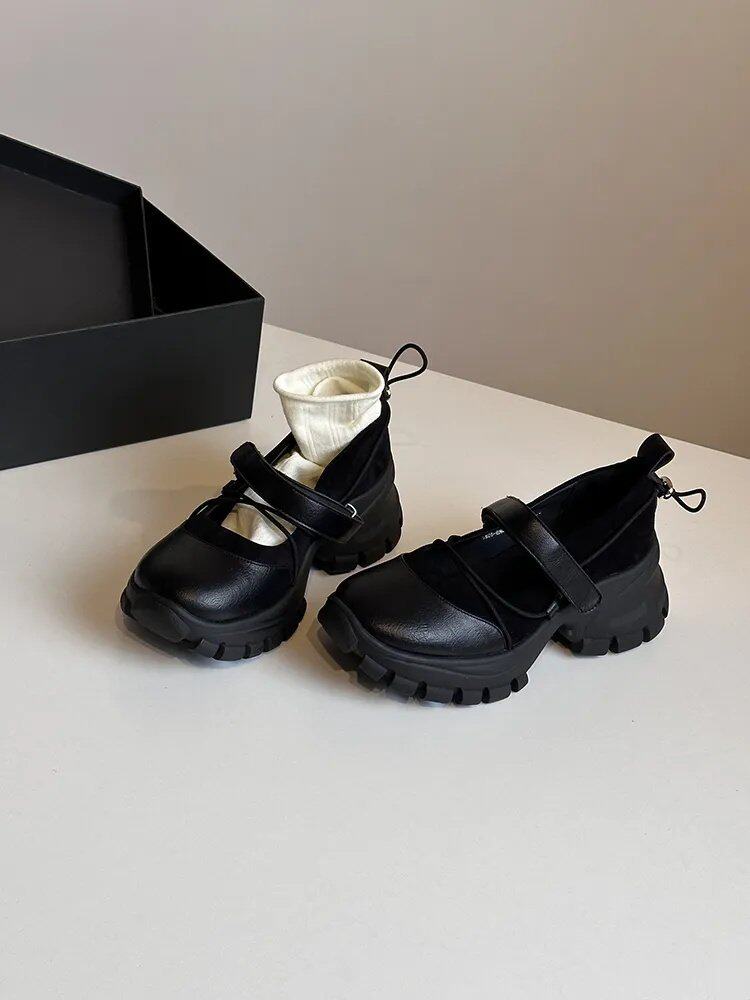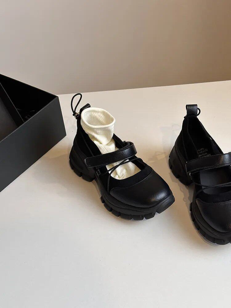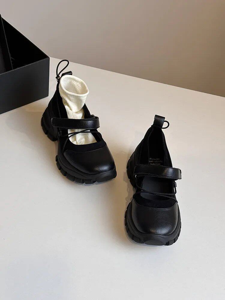 【シューズ】マジックテープ ヴィンテージ 厚底 バレエ風 シンプルシューズ 新作 インソールヒール スポーツ マリージェーンシューズ パンプス お靴