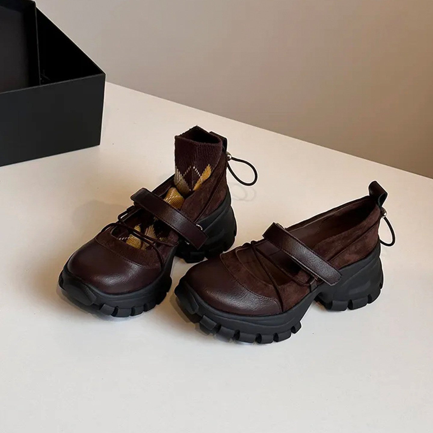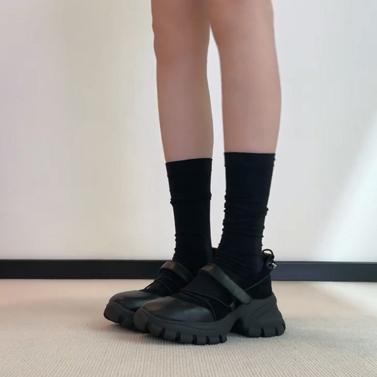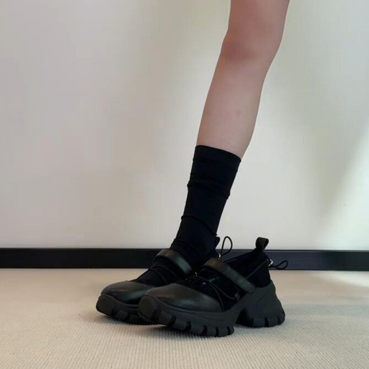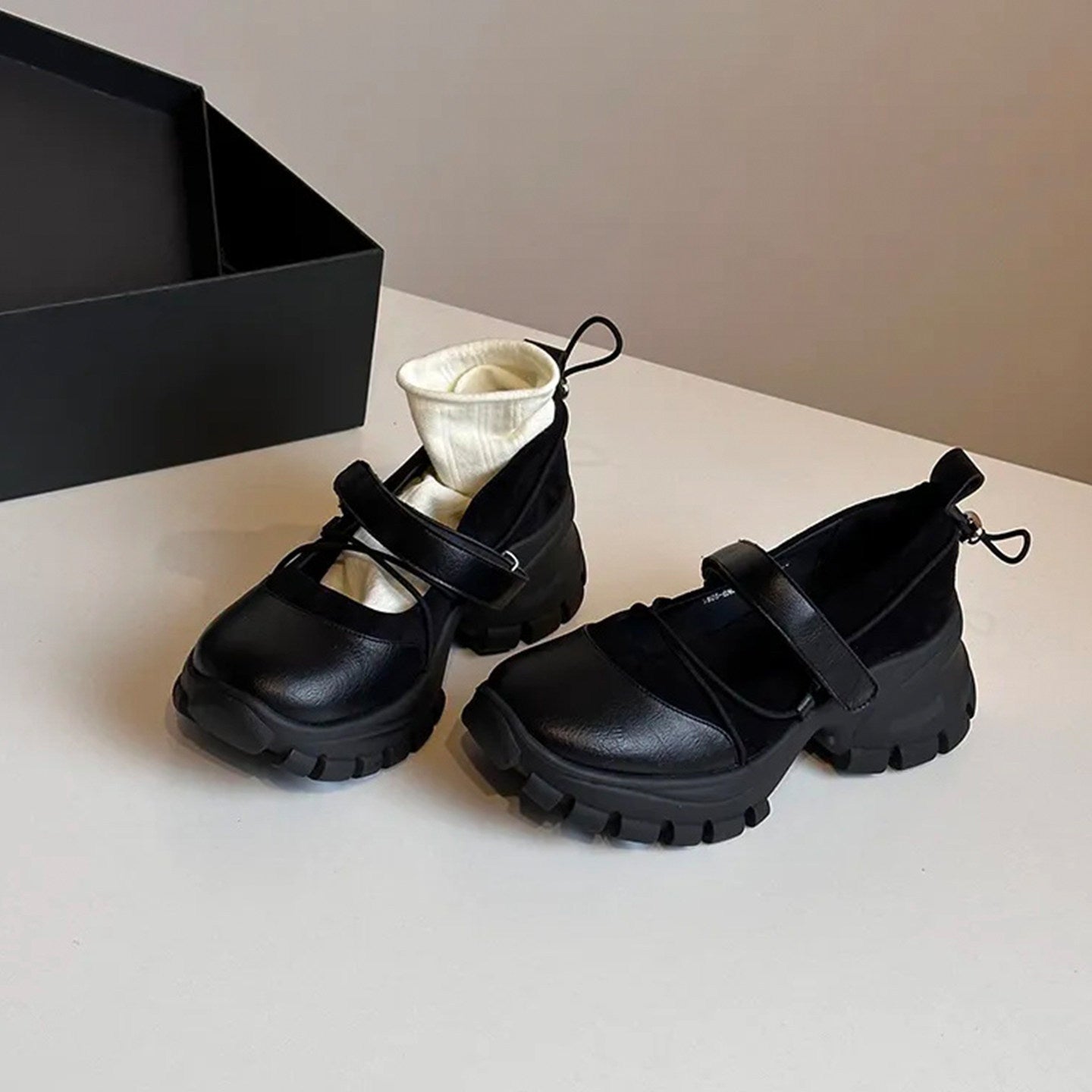 【商品名】【シューズ】マジックテープ ヴィンテージ 厚底 バレエ風 シンプルシューズ 新作 インソールヒール スポーツ マリージェーンシューズ パンプス お靴