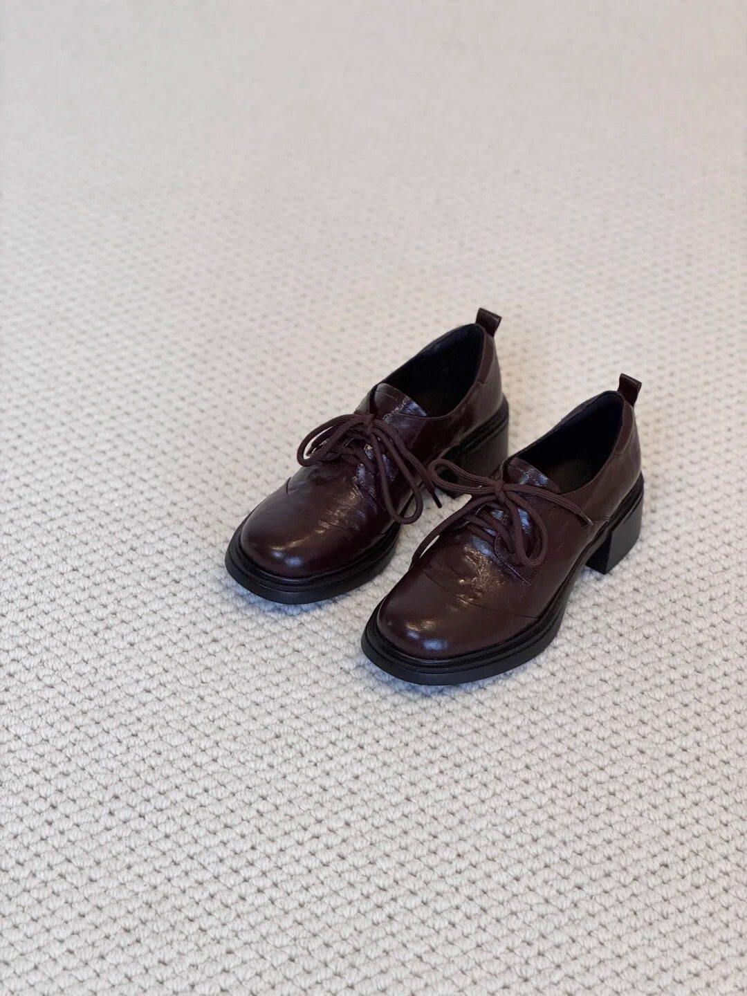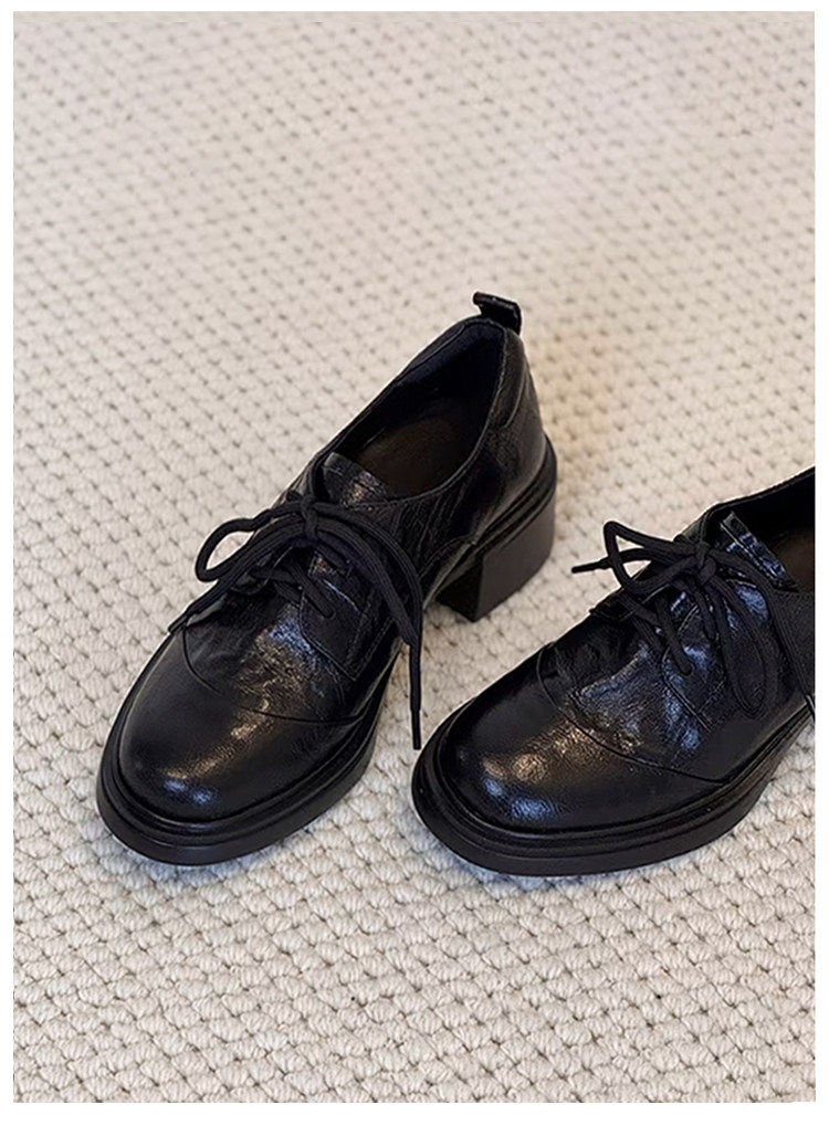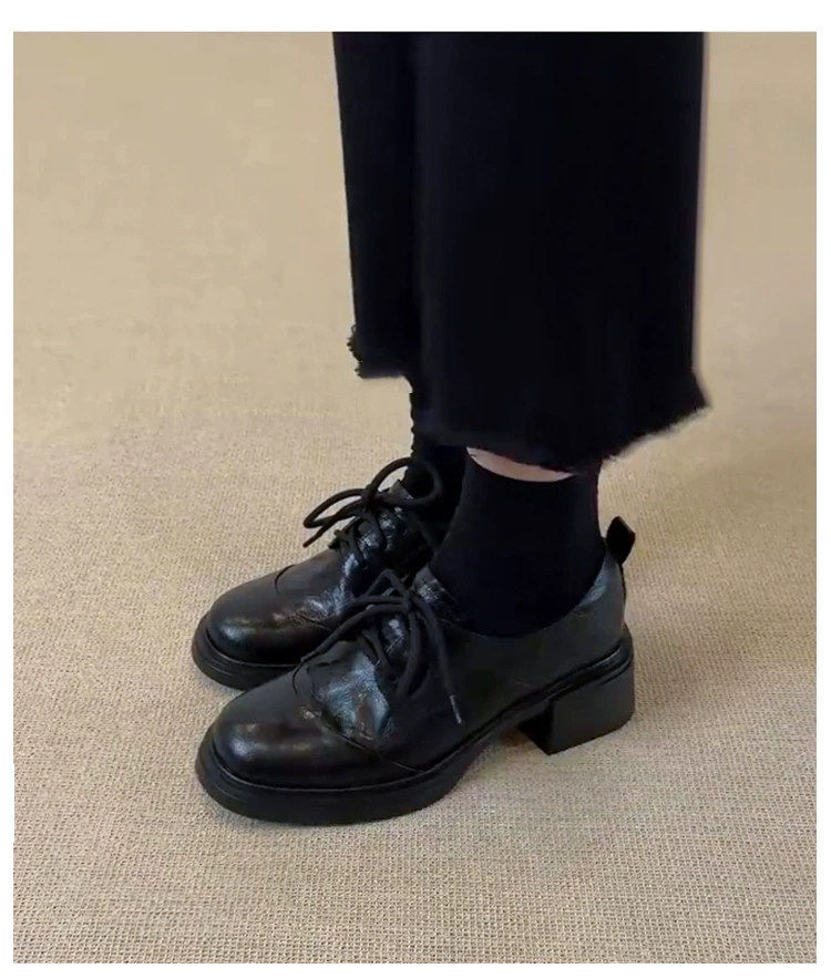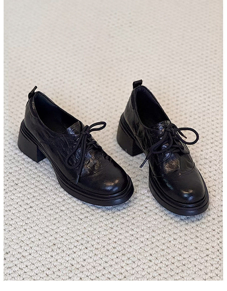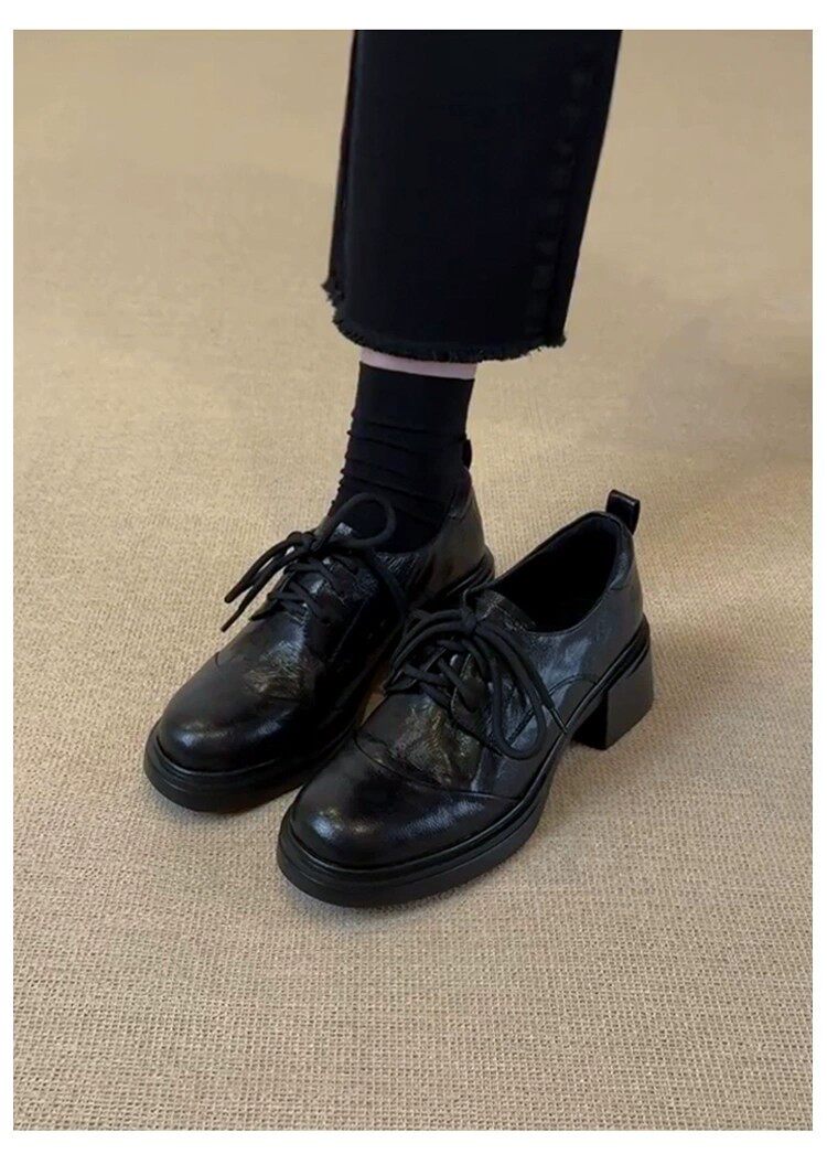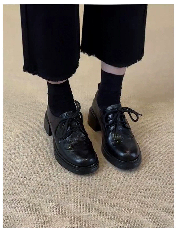 【シューズ】太ヒール 厚底 ヴィンテージ ローファー シューズ 春新作 ファッション ラウンドトゥ レースアップ イギリス風 パンプス