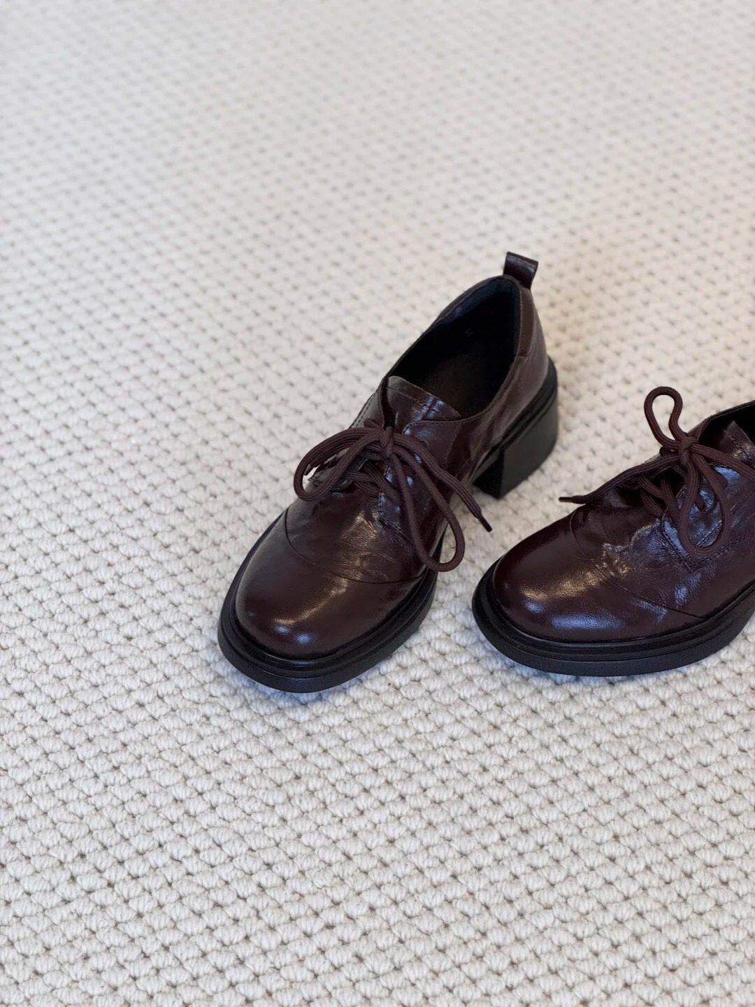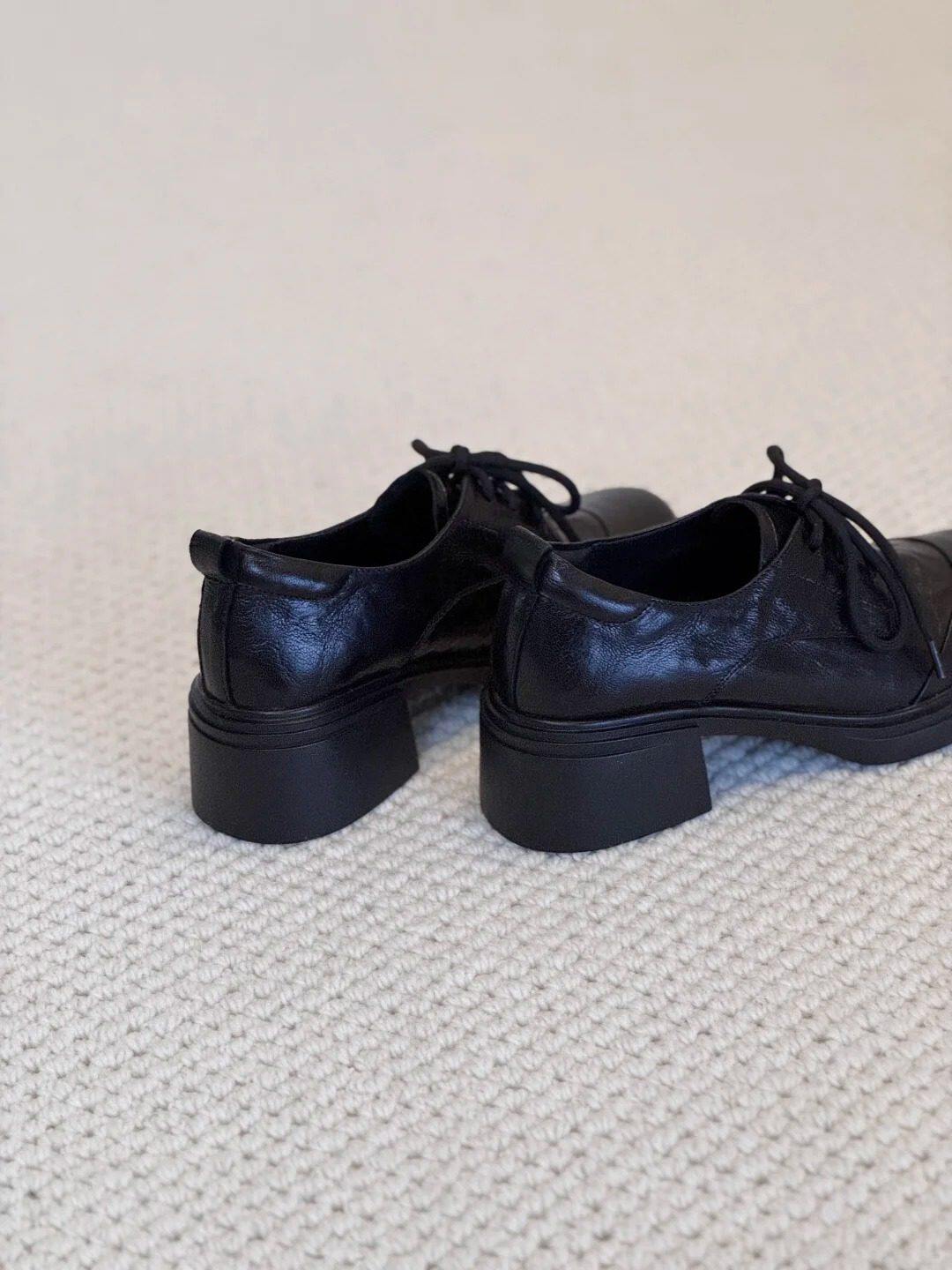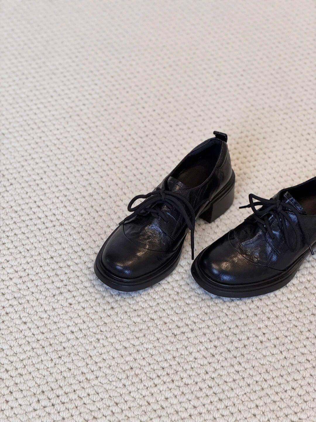 【シューズ】太ヒール 厚底 ヴィンテージ ローファー シューズ 春新作 ファッション ラウンドトゥ レースアップ イギリス風 パンプス